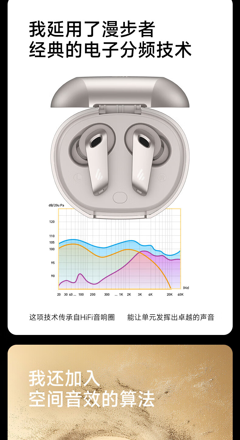 漫步者花再Zero Air Pro 无线蓝牙耳机 半入耳式耳机 蓝牙6.0 41h持久续航 慕斯粉