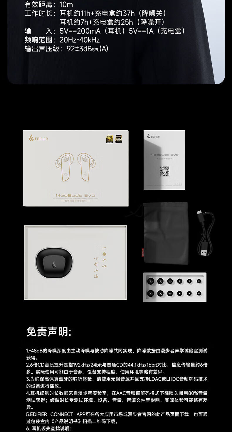 漫步者(EDIFIER)NeoBuds Evo 真无线圈铁入耳式降噪蓝牙耳机耳麦游戏Pro金标认证长续航节日礼物 蓝牙5.4 空间音效 【官方标配*月光白】+耳机保护套