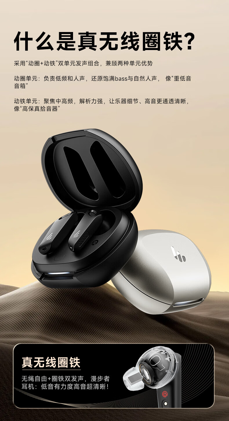 漫步者花再Zero Air Pro 无线蓝牙耳机 半入耳式耳机 蓝牙6.0 41h持久续航 椰奶白