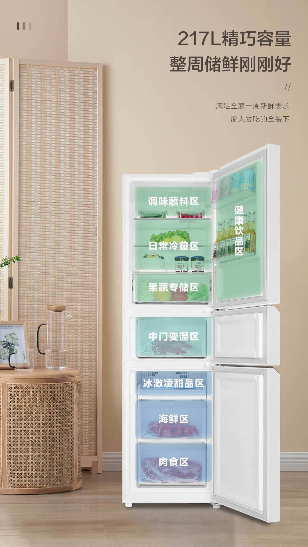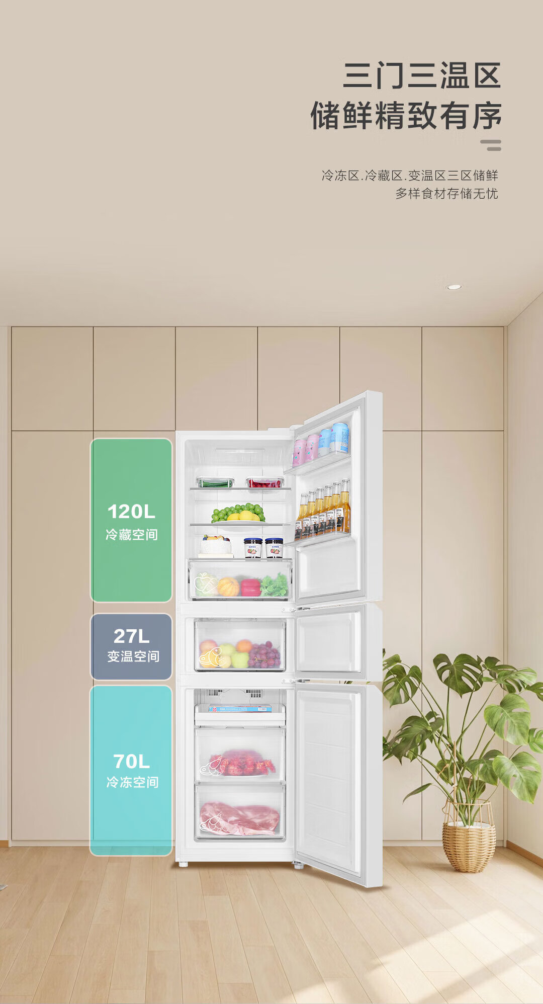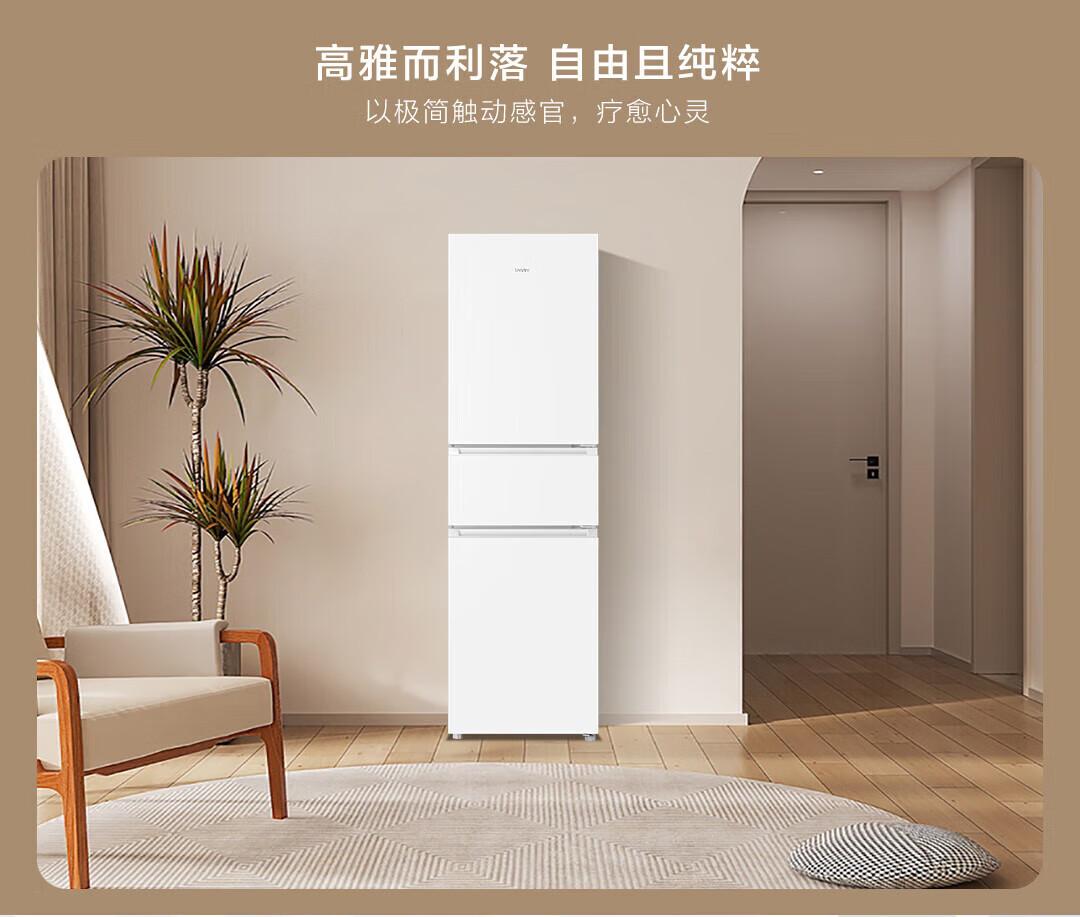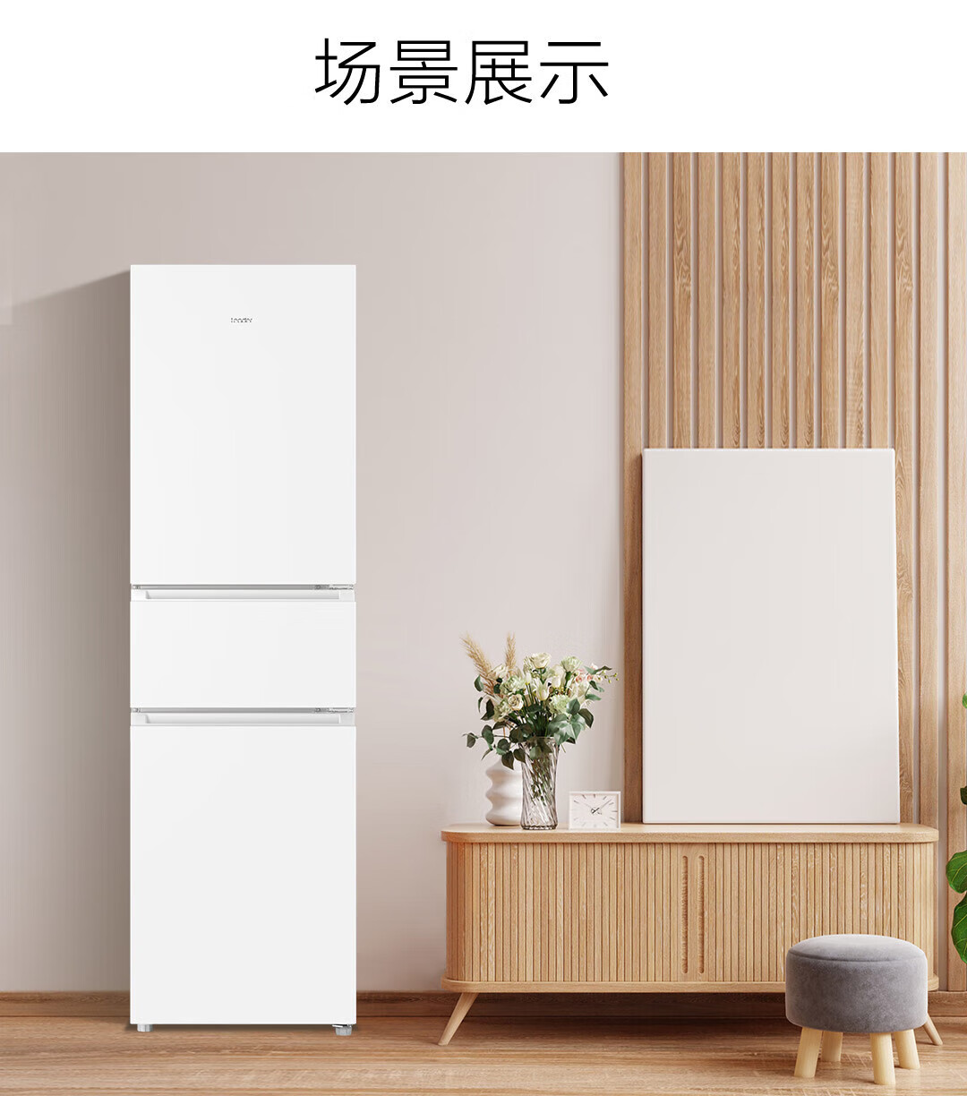 统帅(Leader)海尔冰箱出品217升三开门冰箱风冷无霜一级双变频黑金净化家用租房电冰箱BCD-217WGLC3DRW9 白色