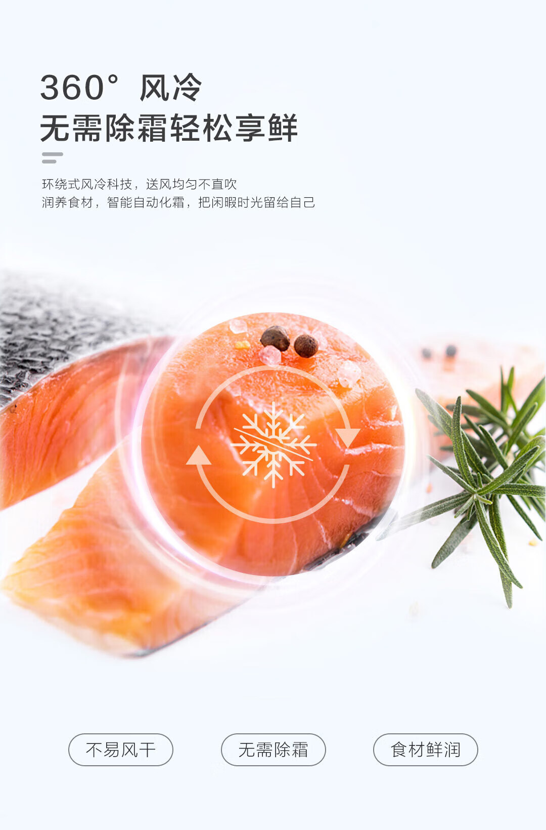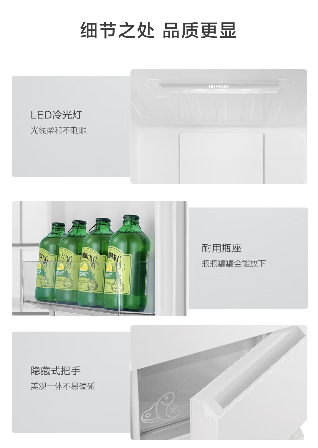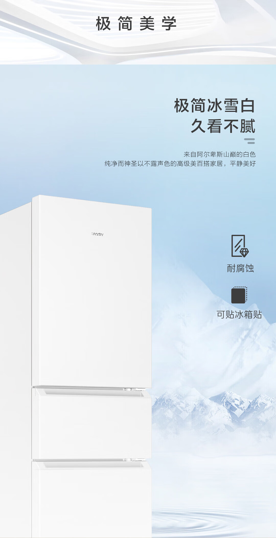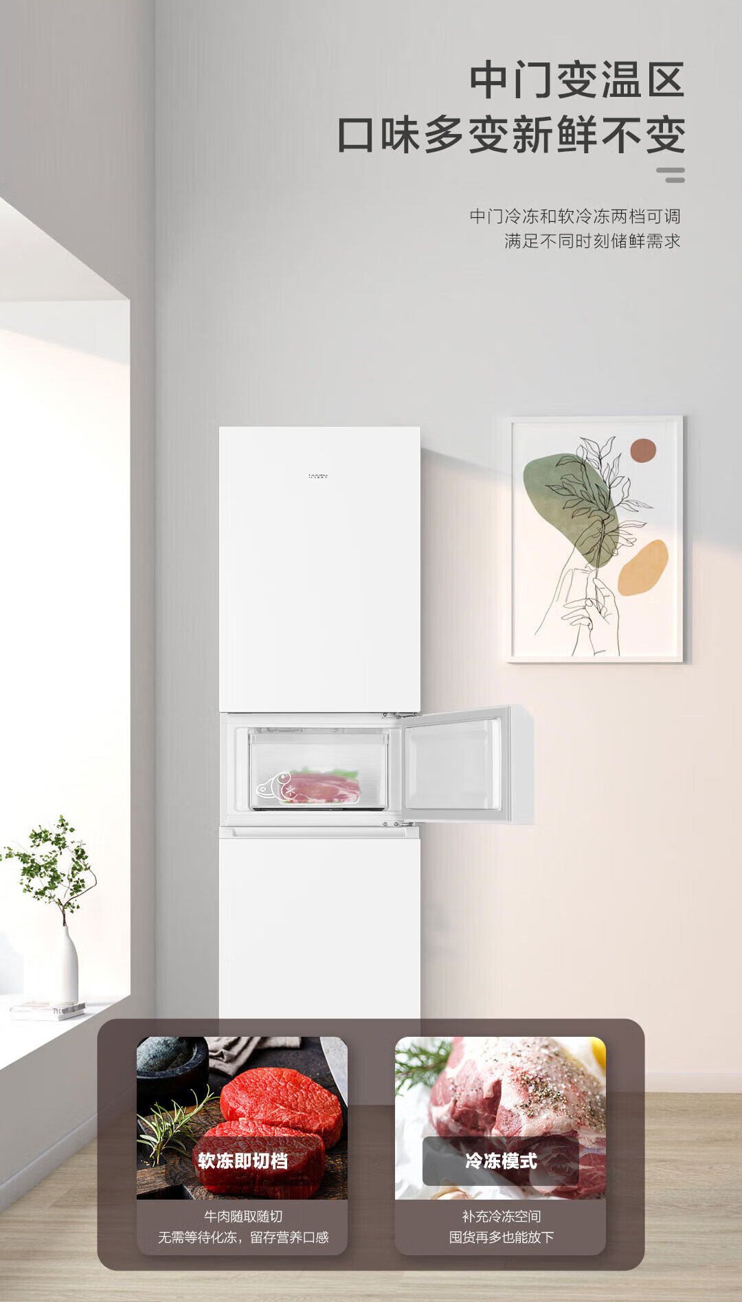 统帅(Leader)海尔冰箱出品217升三开门冰箱风冷无霜一级双变频黑金净化家用租房电冰箱BCD-217WGLC3DRW9 白色