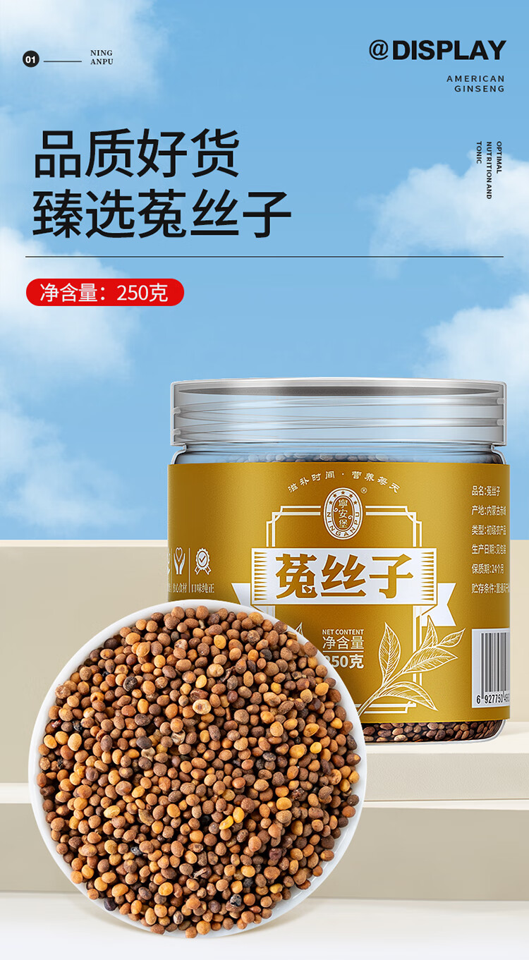 宁安堡橘红切片 咽喉泡水桔红止清花果茶菟丝子搭沙苑子送长辈 菟丝子 250g*2罐