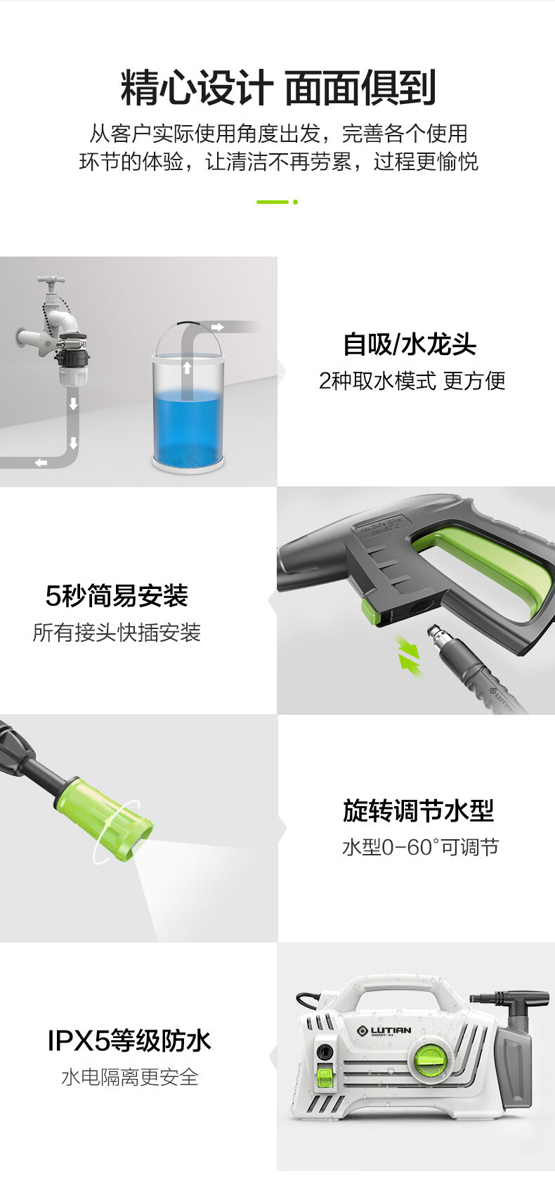 绿田(LUTIAN)高压洗车机家用1400W清洗机便携水泵水枪神器庭院接新能源精灵S4