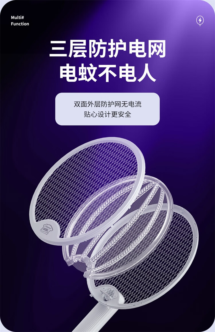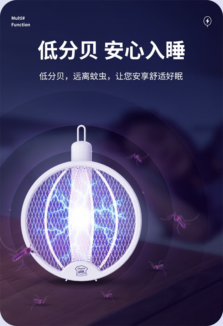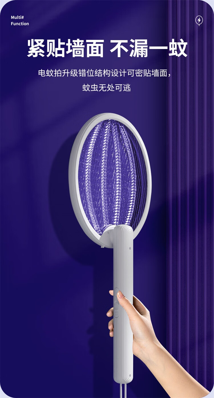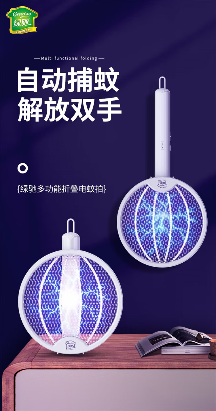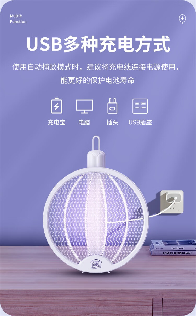 绿驰 电蚊拍家用充电式灭蚊拍LED灯多功能大网面电蚊子拍苍蝇拍灭蚊器
