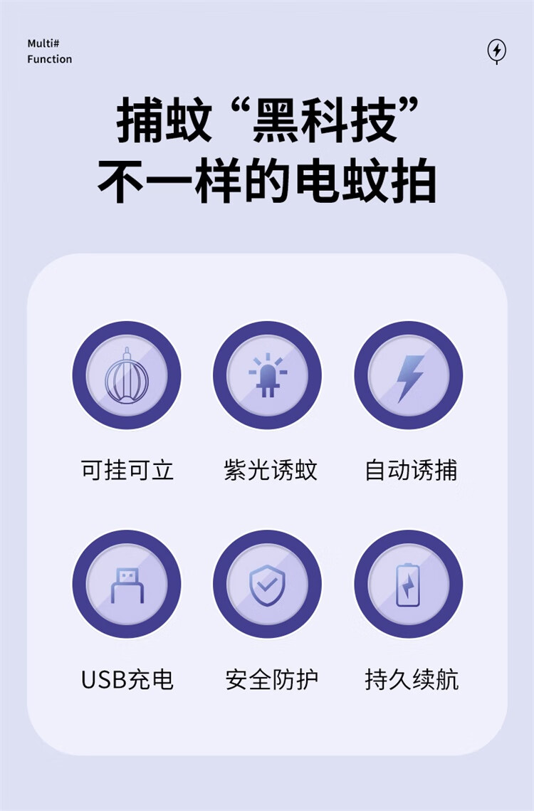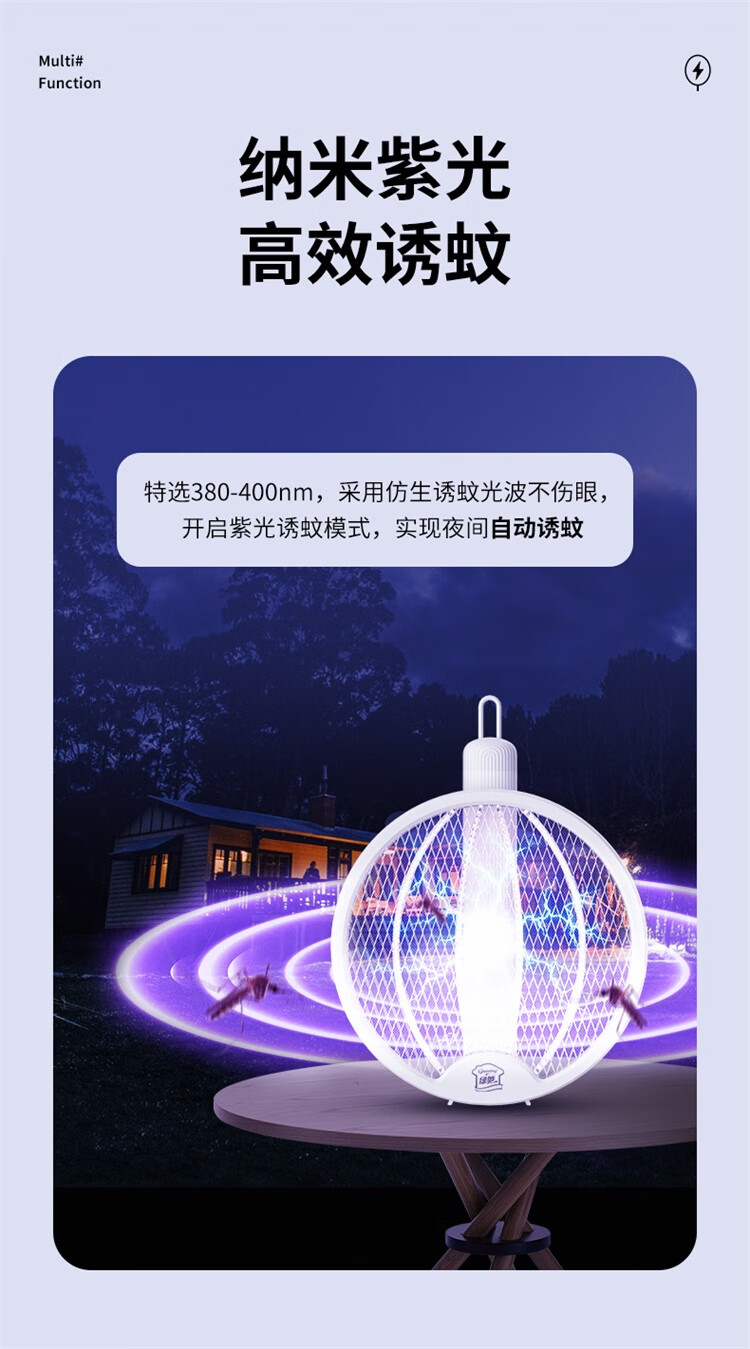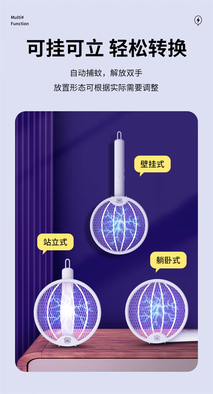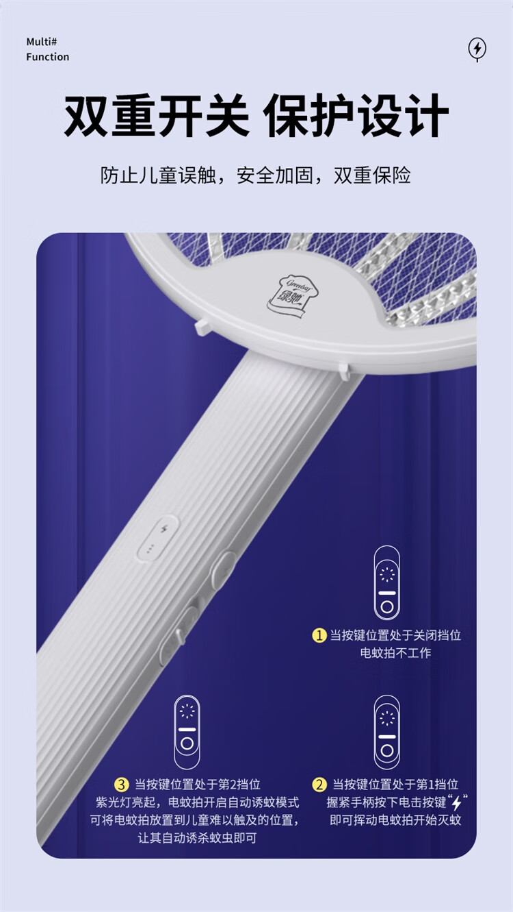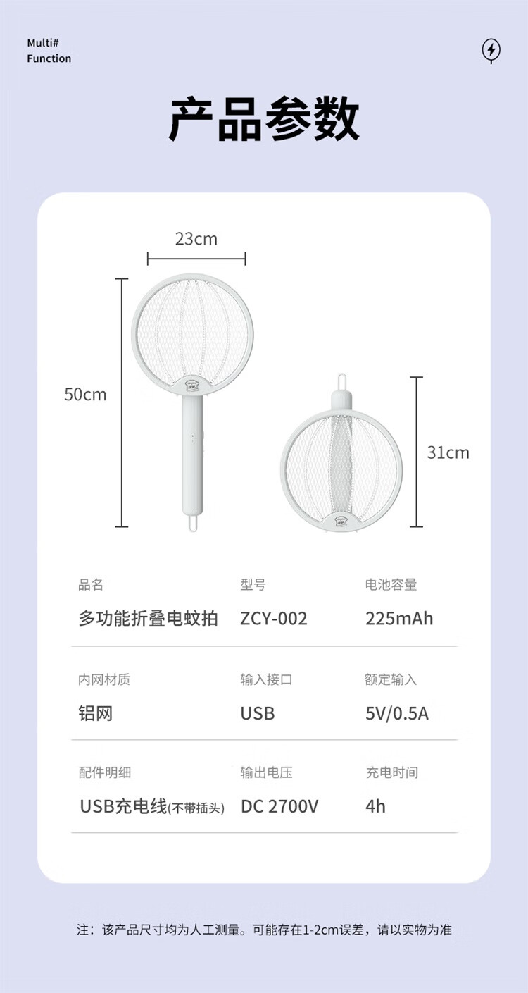绿驰 电蚊拍家用充电式灭蚊拍LED灯多功能大网面电蚊子拍苍蝇拍灭蚊器