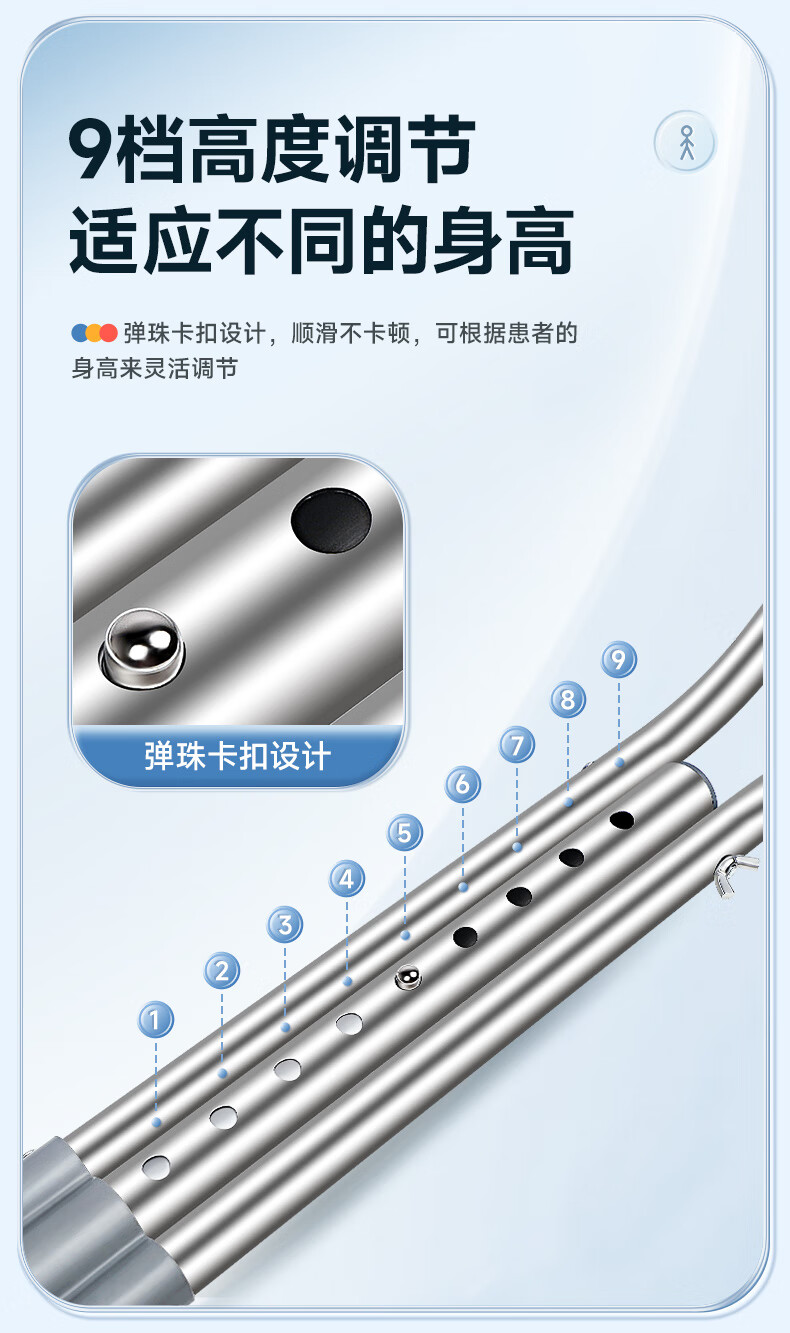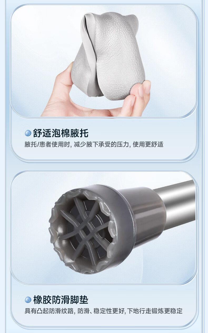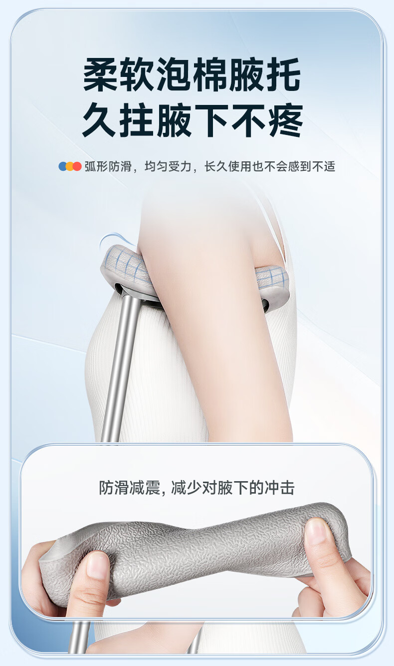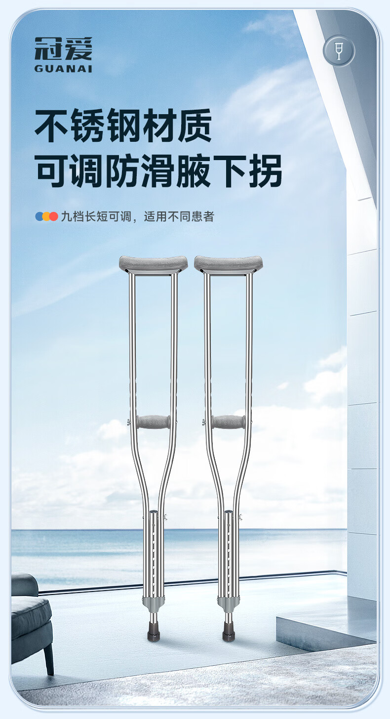 冠爱(GUANAI)医用腋拐骨折拐杖腋下拐康复手杖辅助加厚防滑可调一对86343BDM