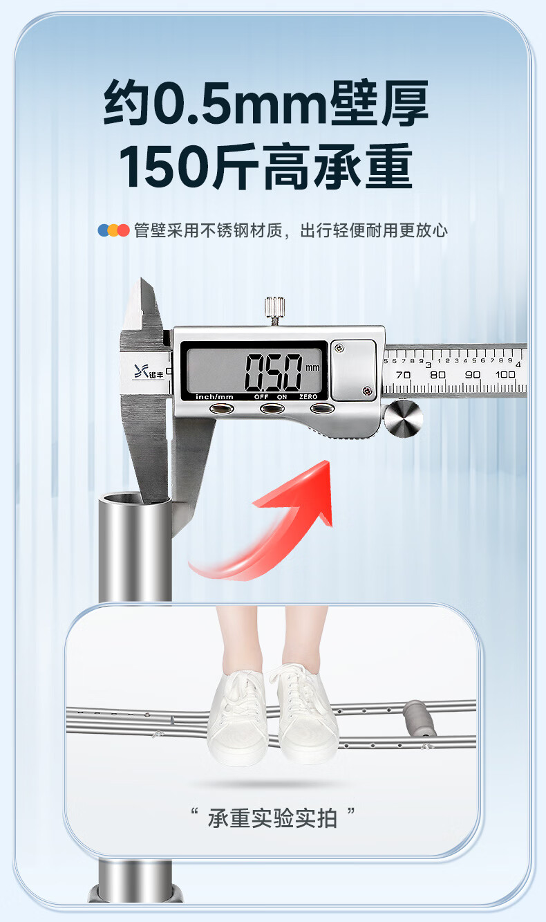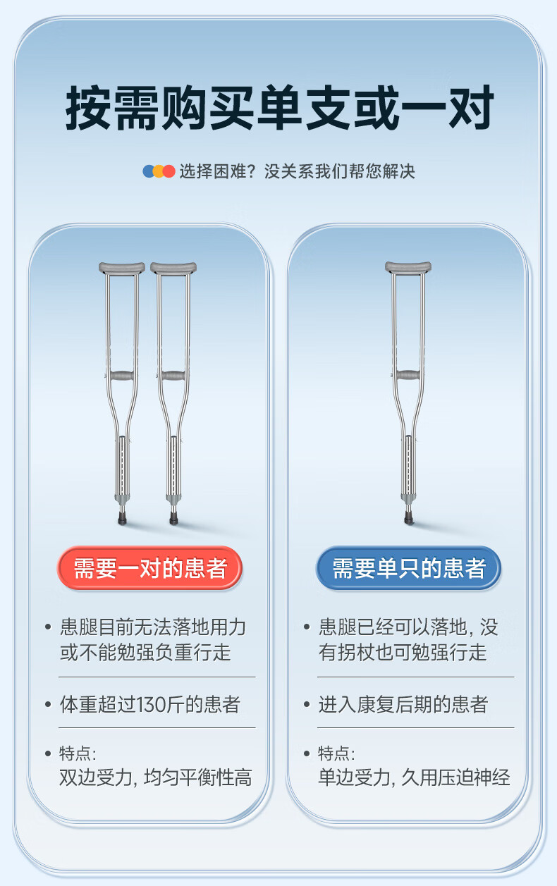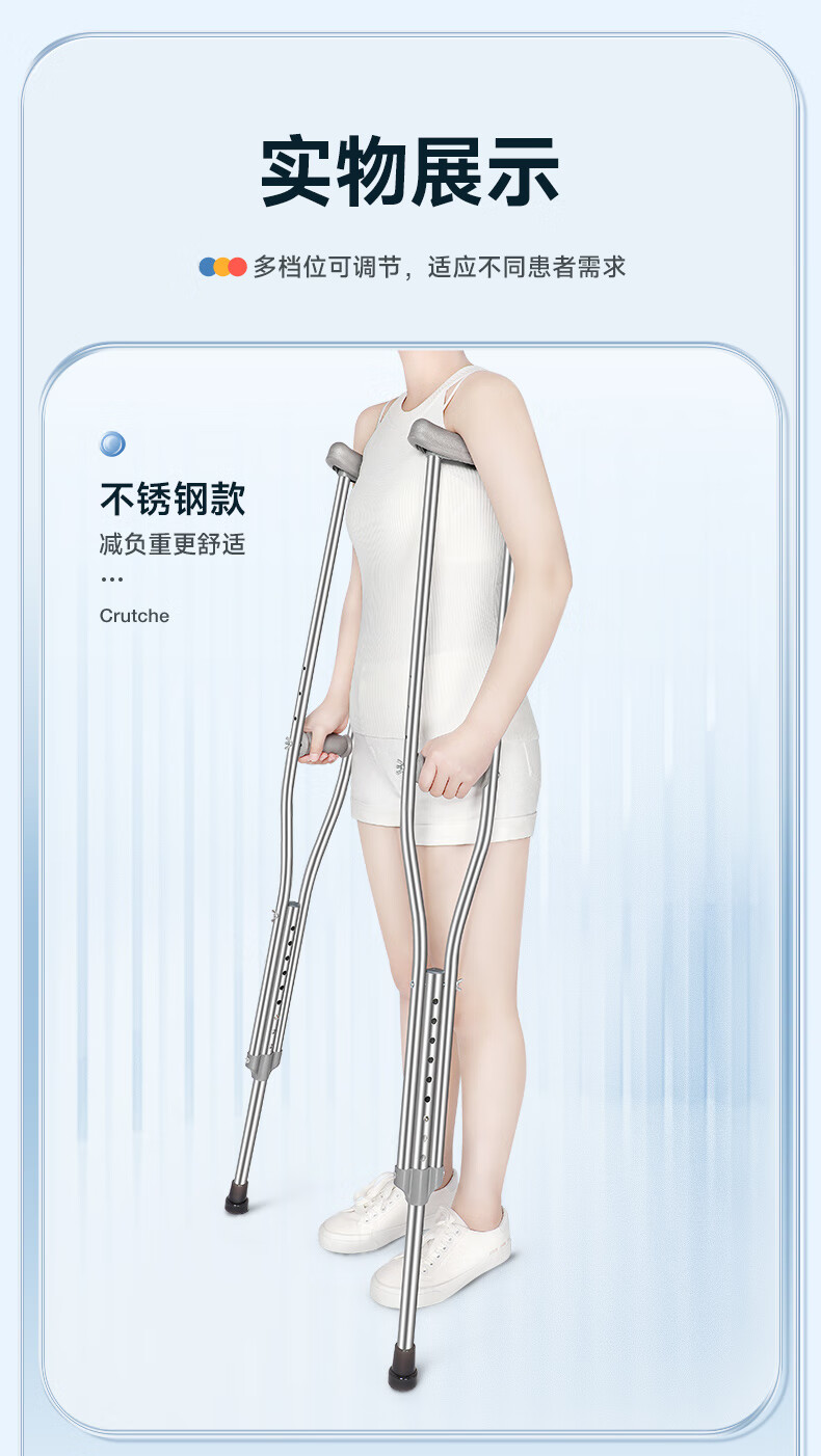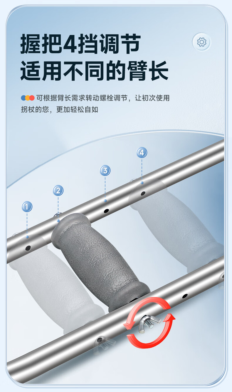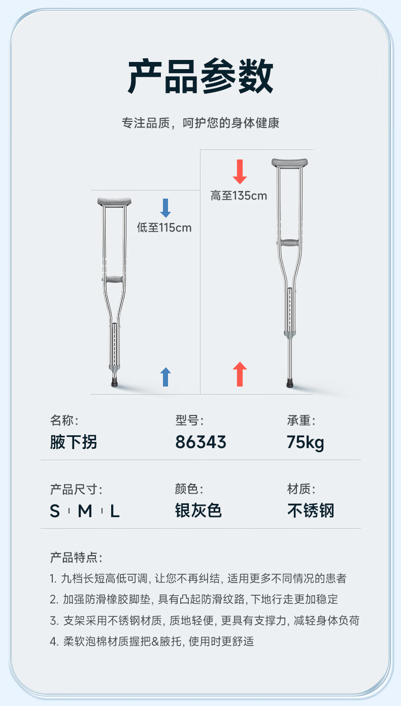 冠爱(GUANAI)医用腋拐骨折拐杖腋下拐康复手杖辅助加厚防滑可调一对86343BDM