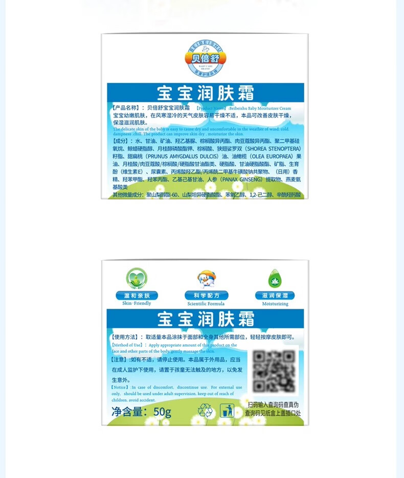 贝倍舒宝宝润肤霜 儿童面霜冬季婴幼儿宝宝润肤霜补水保湿滋润霜擦脸霜 贝倍舒宝宝润肤霜50g 1瓶装【赠水润护手霜】