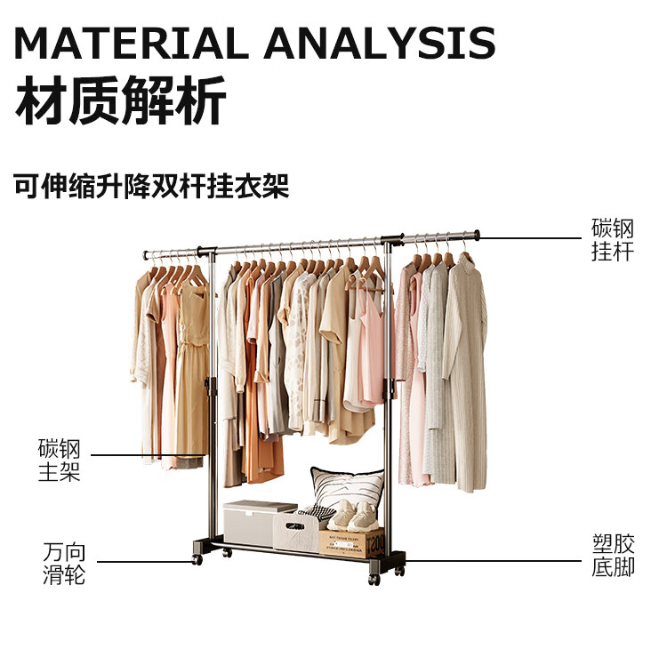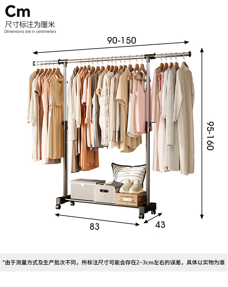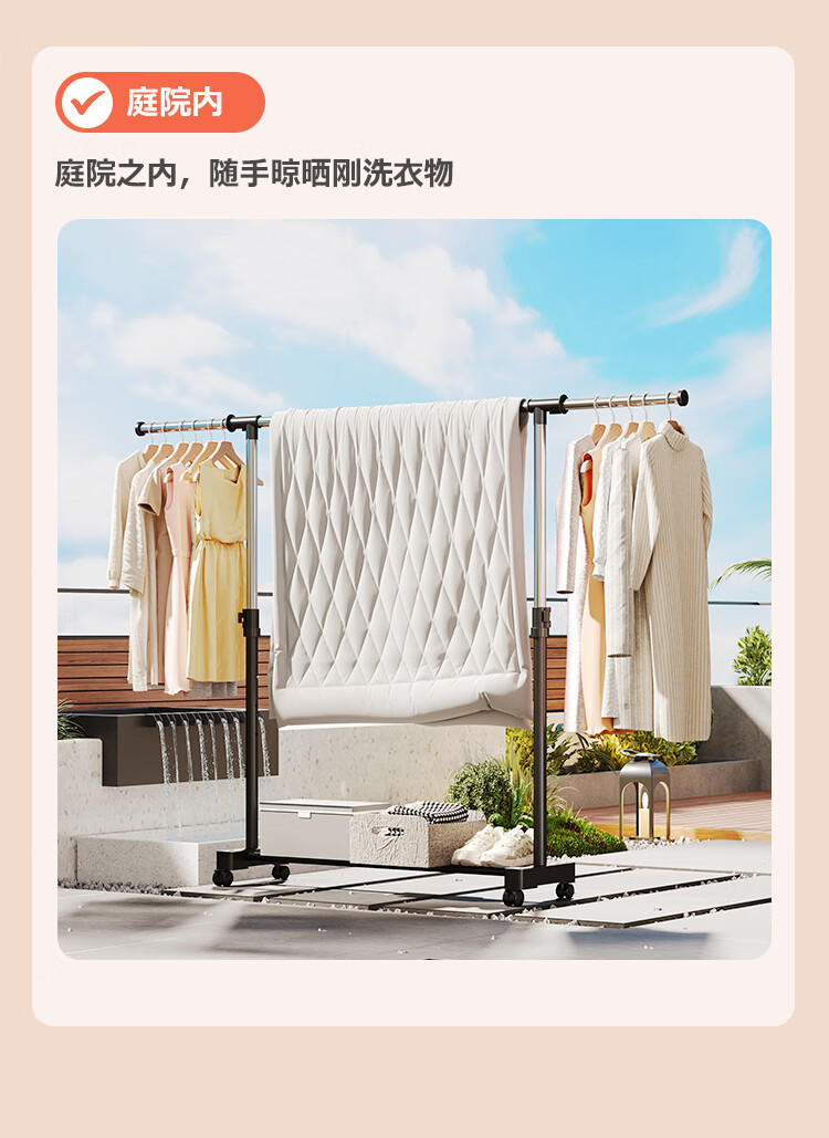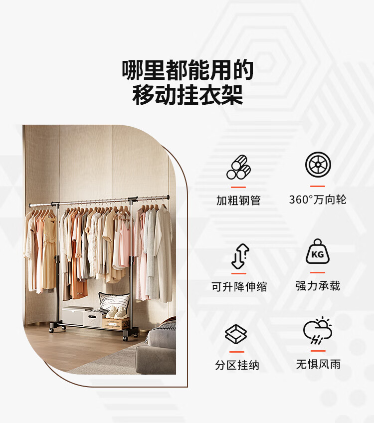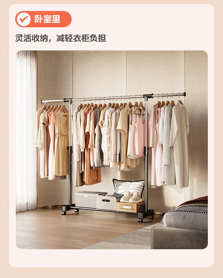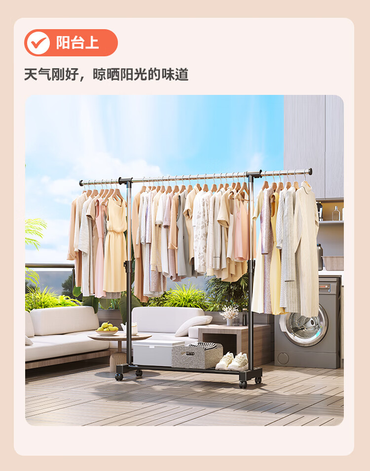 溢彩年华晾衣架落地置物简易衣架挂衣服卧室挂衣架阳台晾衣杆凉晒衣架2501