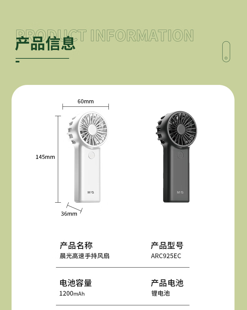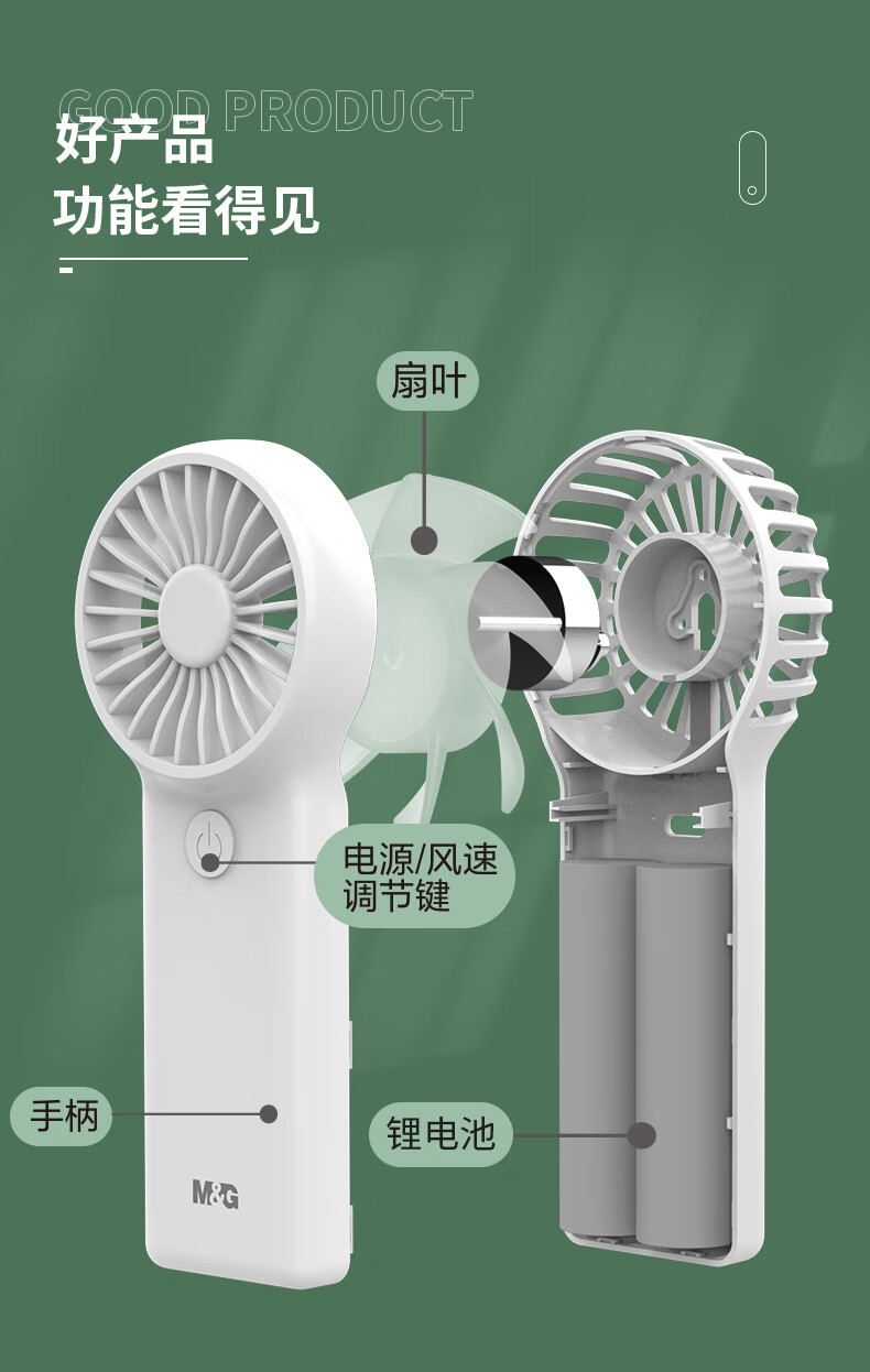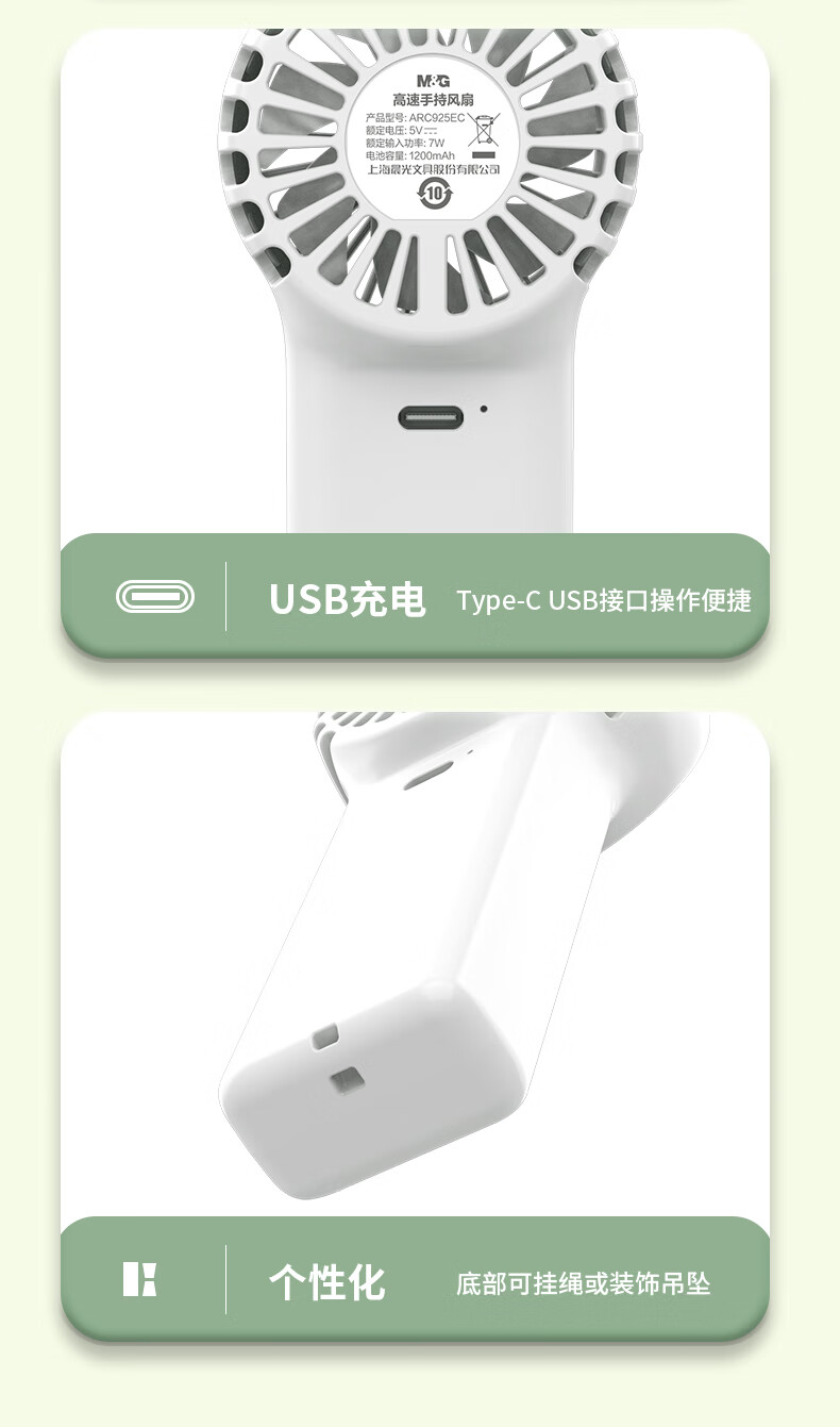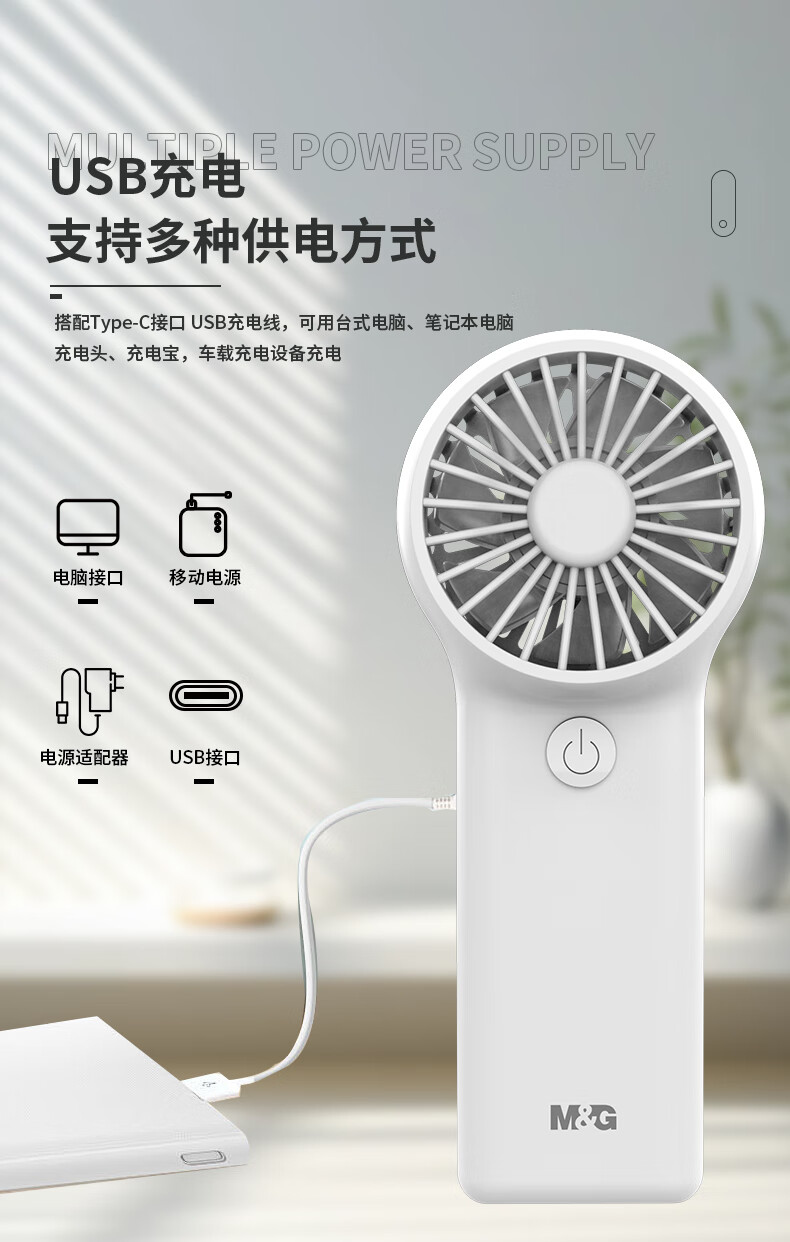 晨光(M&G)手持风扇 风扇小型迷你便携式手持小风扇 夏季便携式户外露营usb风扇 黑色ARC925ECA