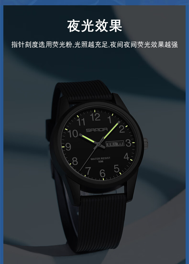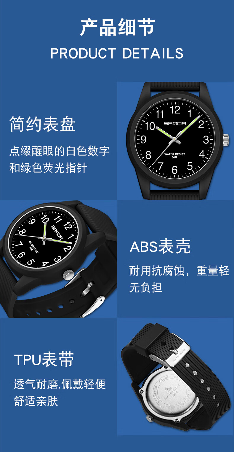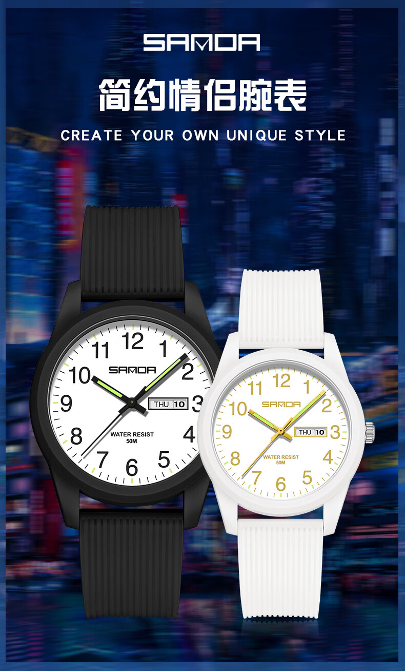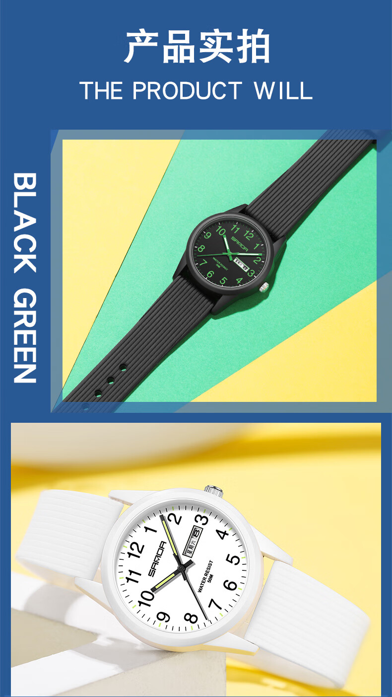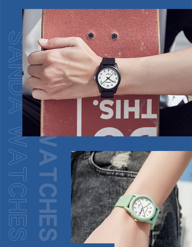 SANDA手表男学生简约初中高中公务员考试专用石英防水双日历男女腕表