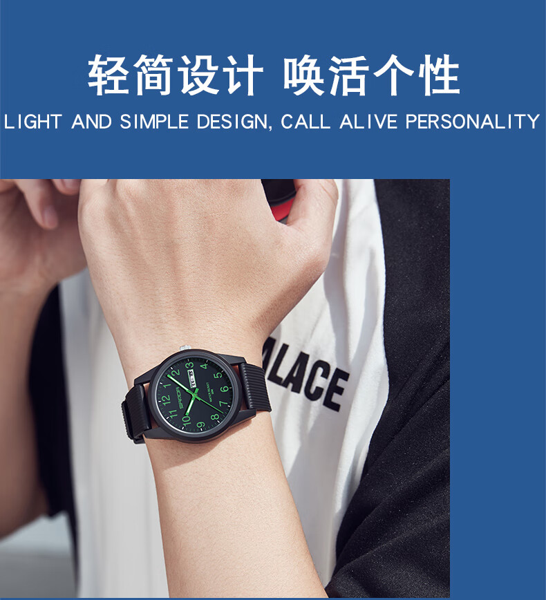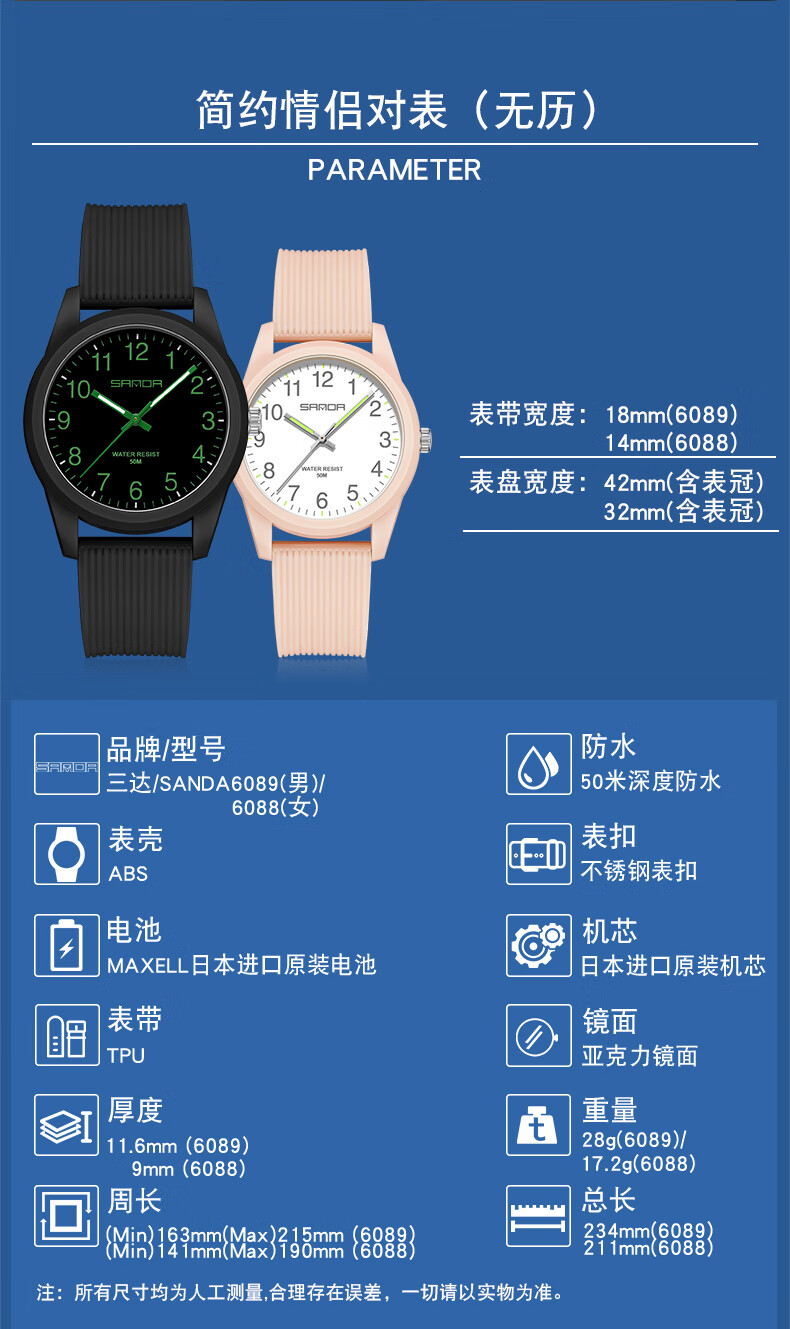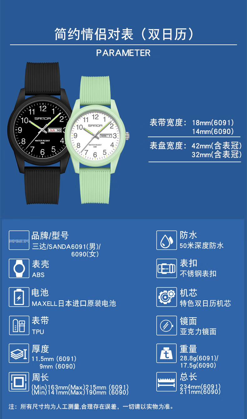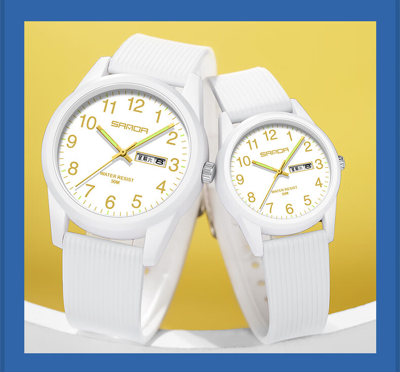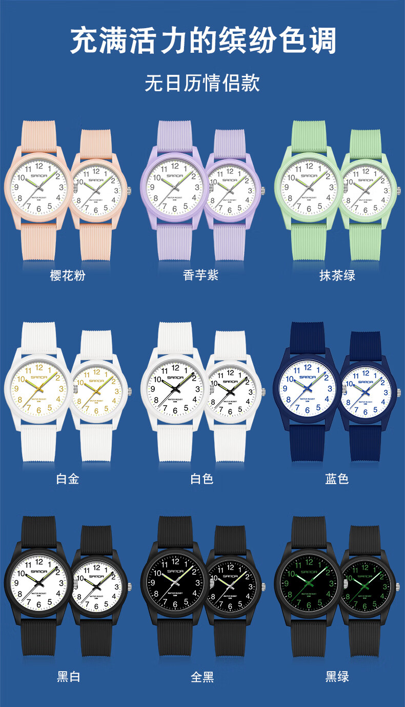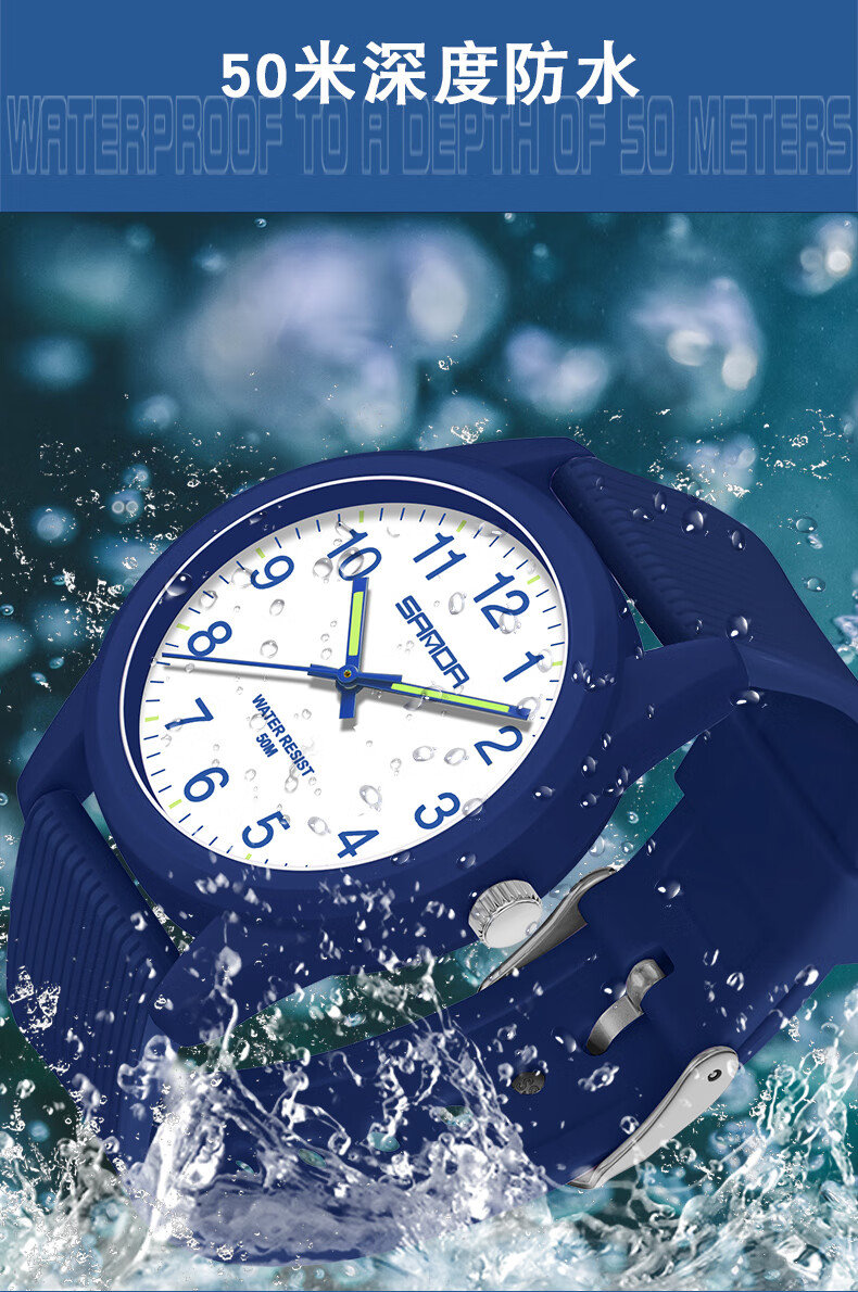 SANDA手表男学生简约初中高中公务员考试专用石英防水双日历男女腕表