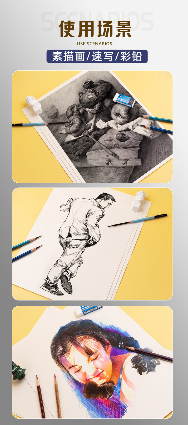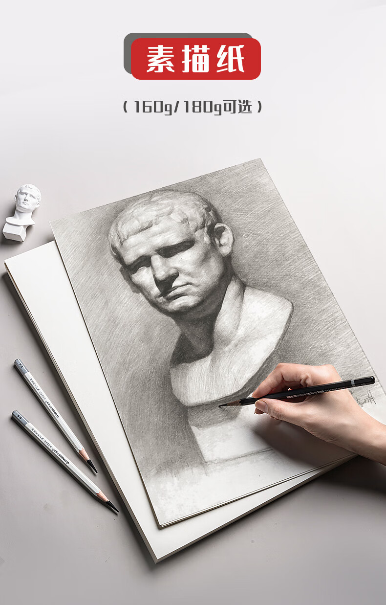 空色8K160g素描纸20张/袋绘画纸加厚素描本铅画美术写生绘画临摹学生用初学者速写铅8开画纸美术写生