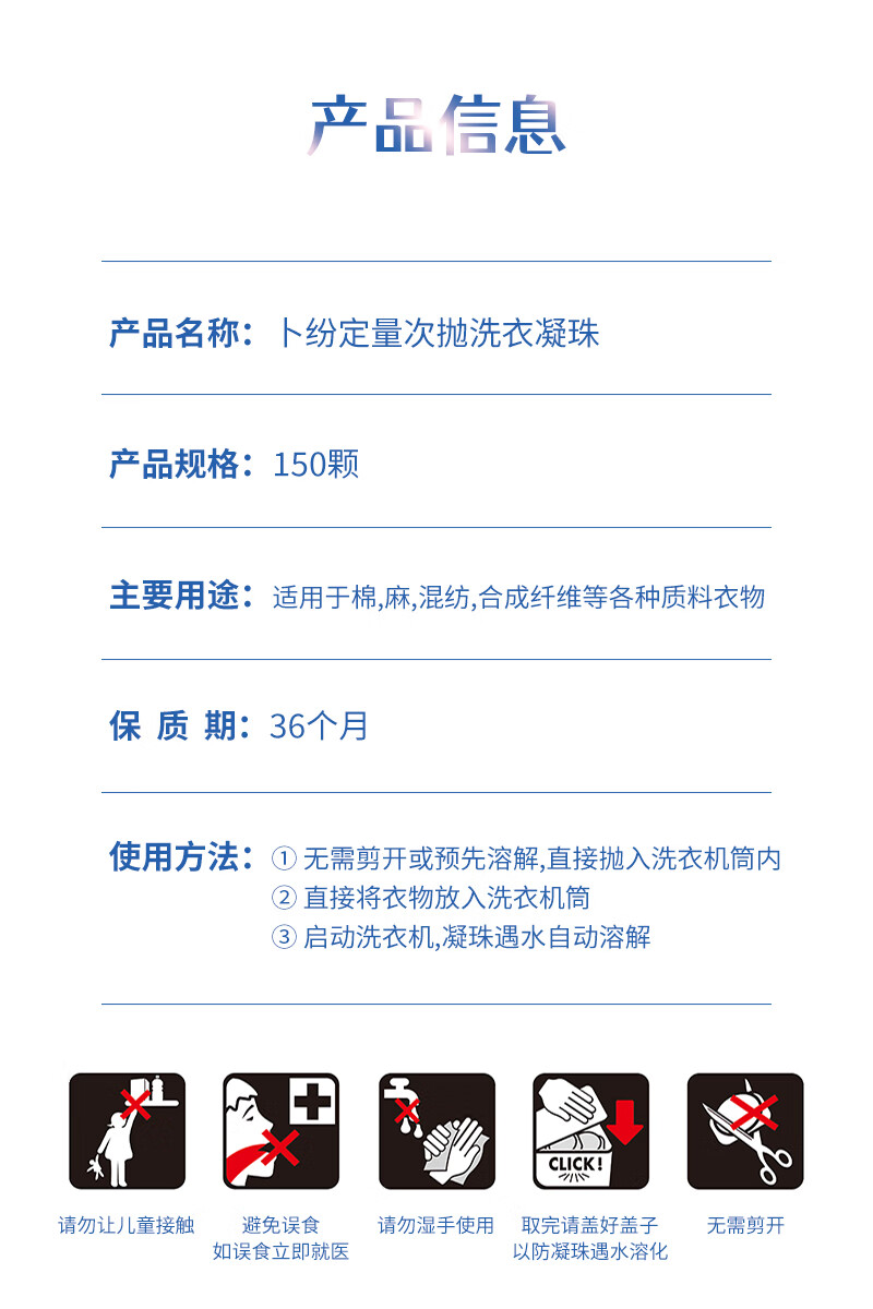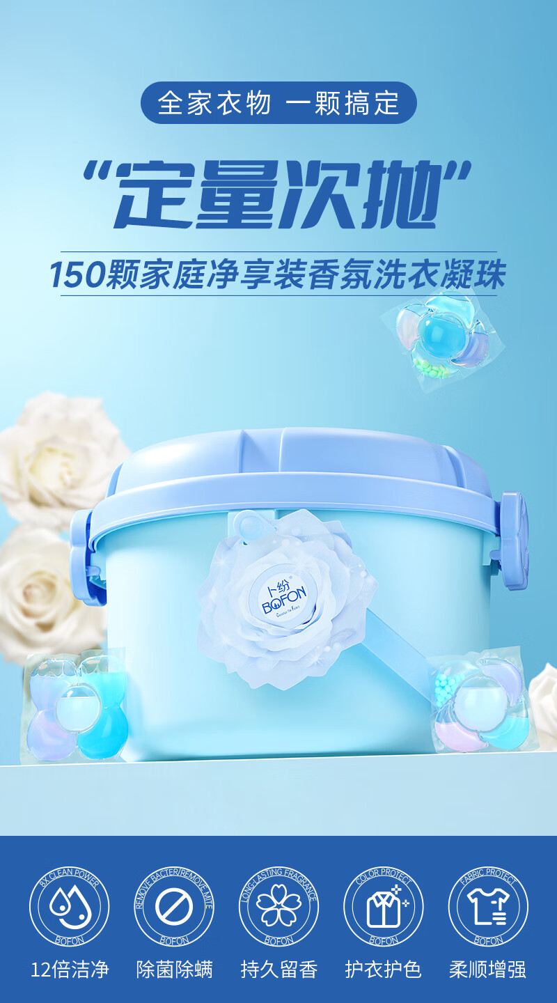 卜纷新品洗衣凝珠多场景定量次抛多效合一家庭囤货装150颗