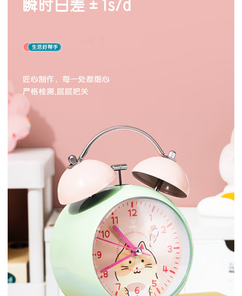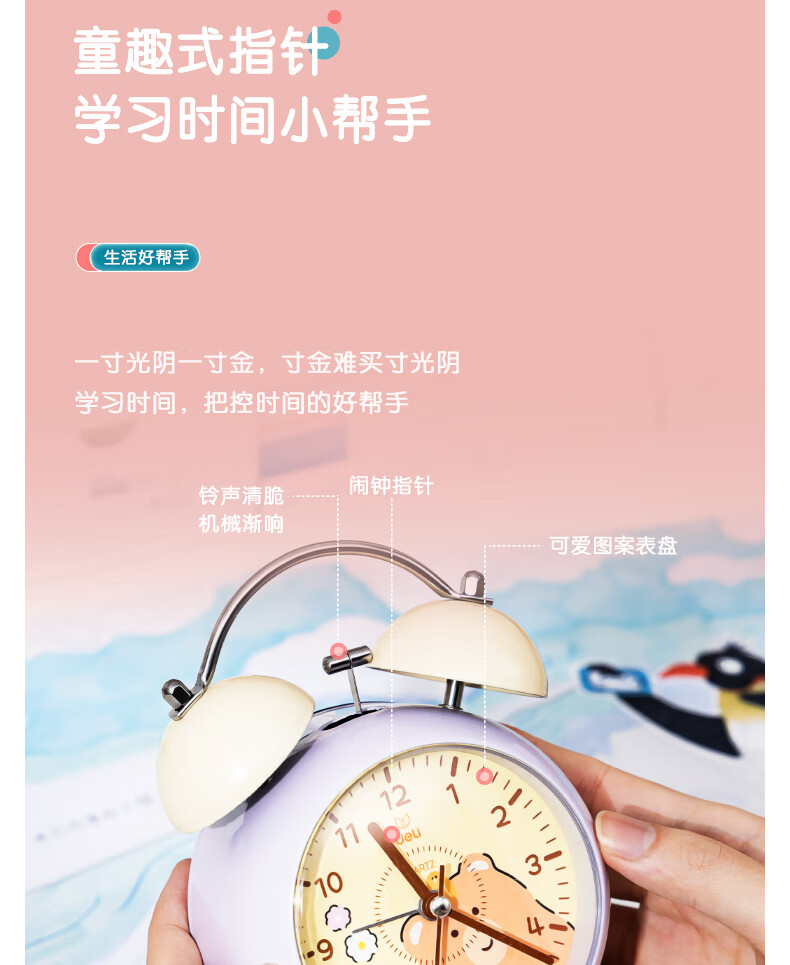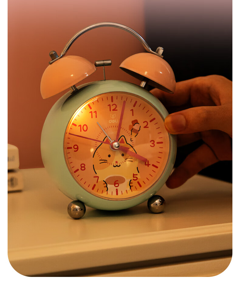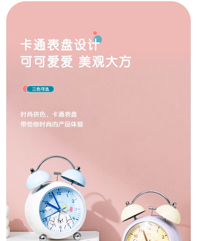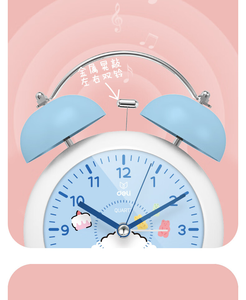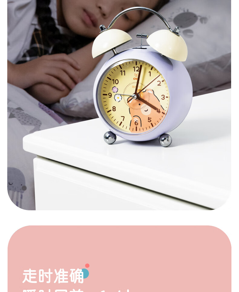 得力(deli)迷你小夜灯闹钟家庭卧室床头钟儿童学生专用起床神器开学必备白色LE333开学礼物开学季