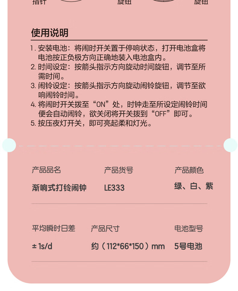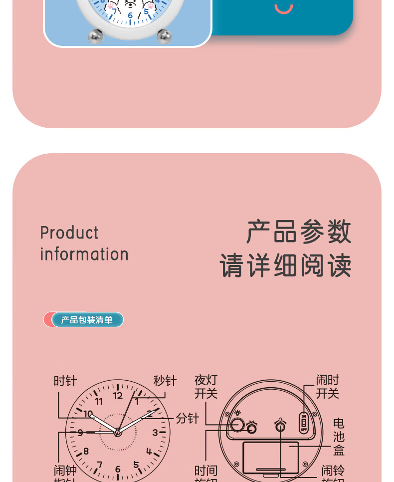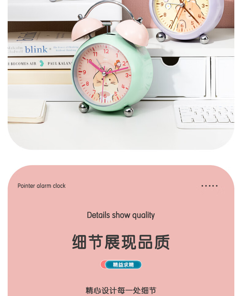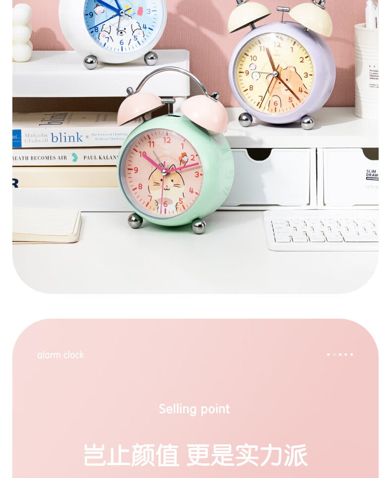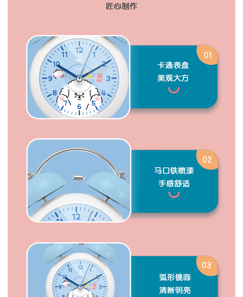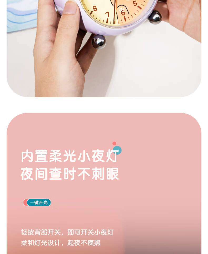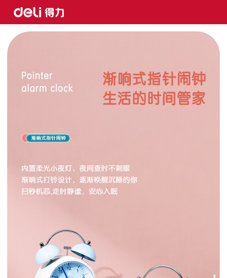 得力(deli)迷你小夜灯闹钟家庭卧室床头钟儿童学生专用起床神器开学必备白色LE333开学礼物开学季