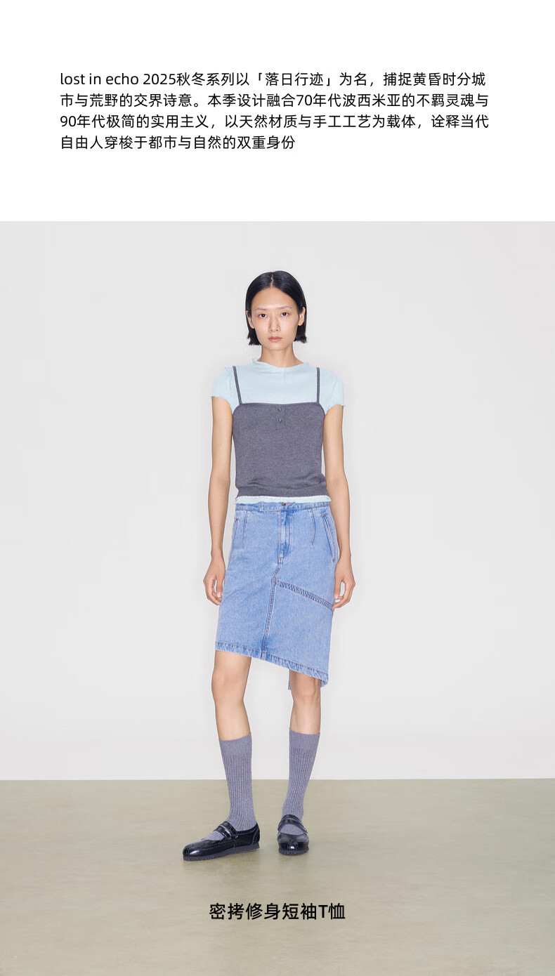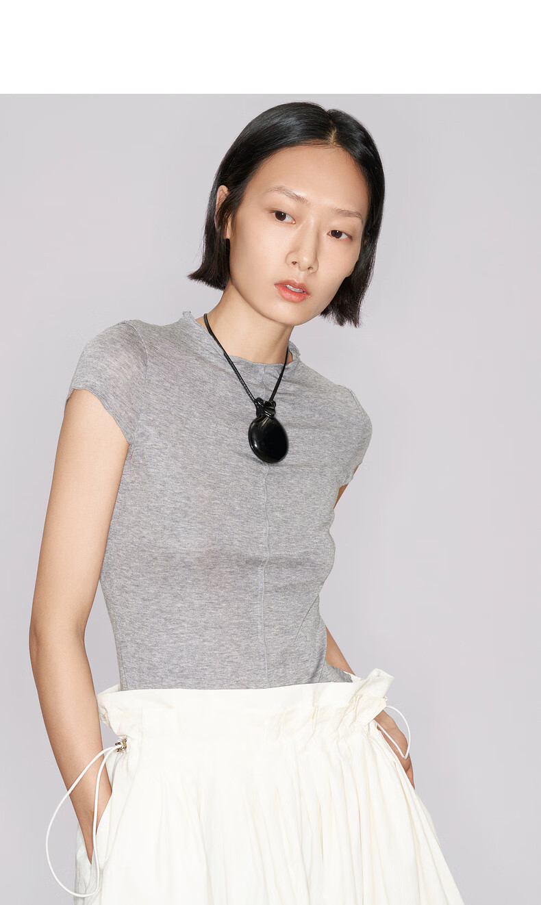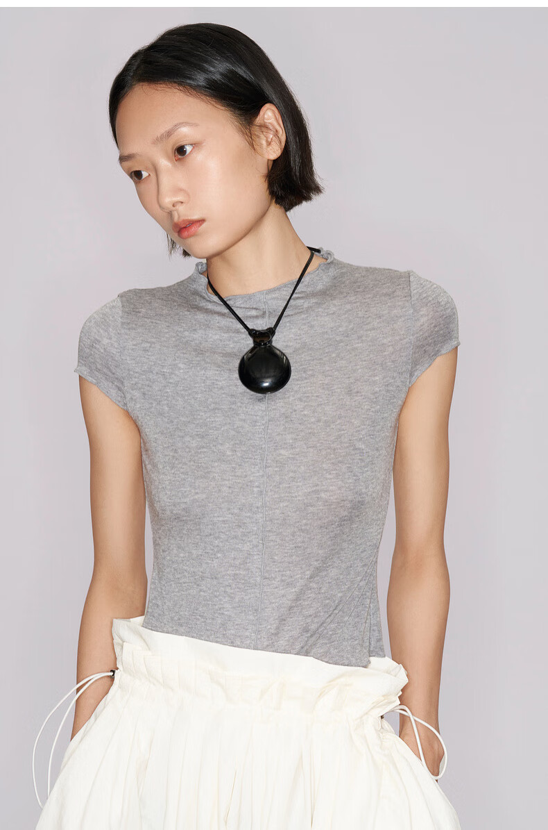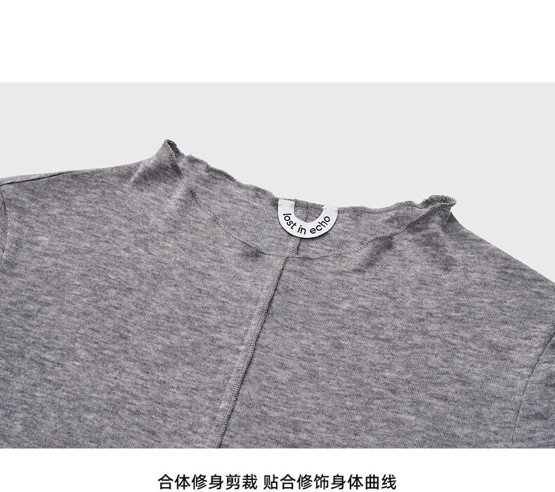 lost in echo2025秋冬新款精致修身显瘦空气感羊毛针织短袖T恤女 灰色 S