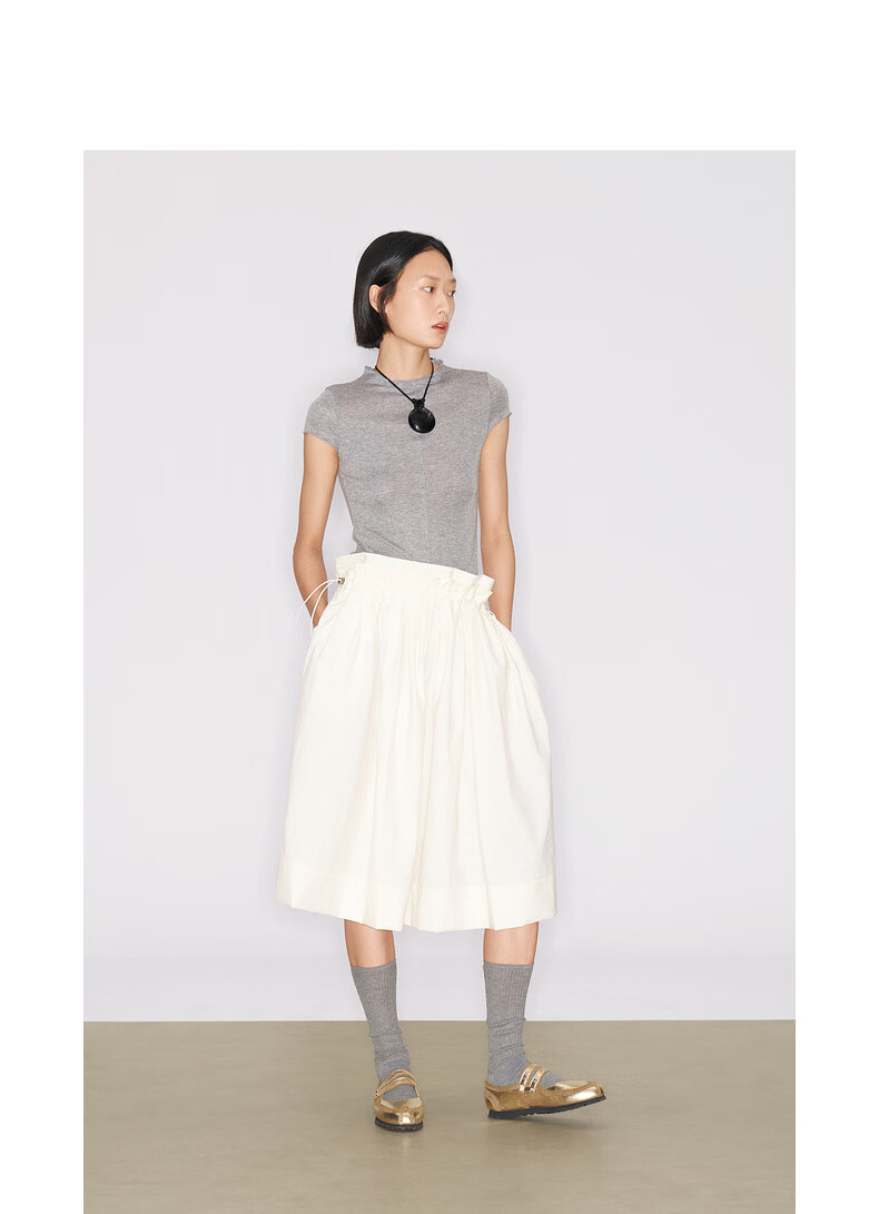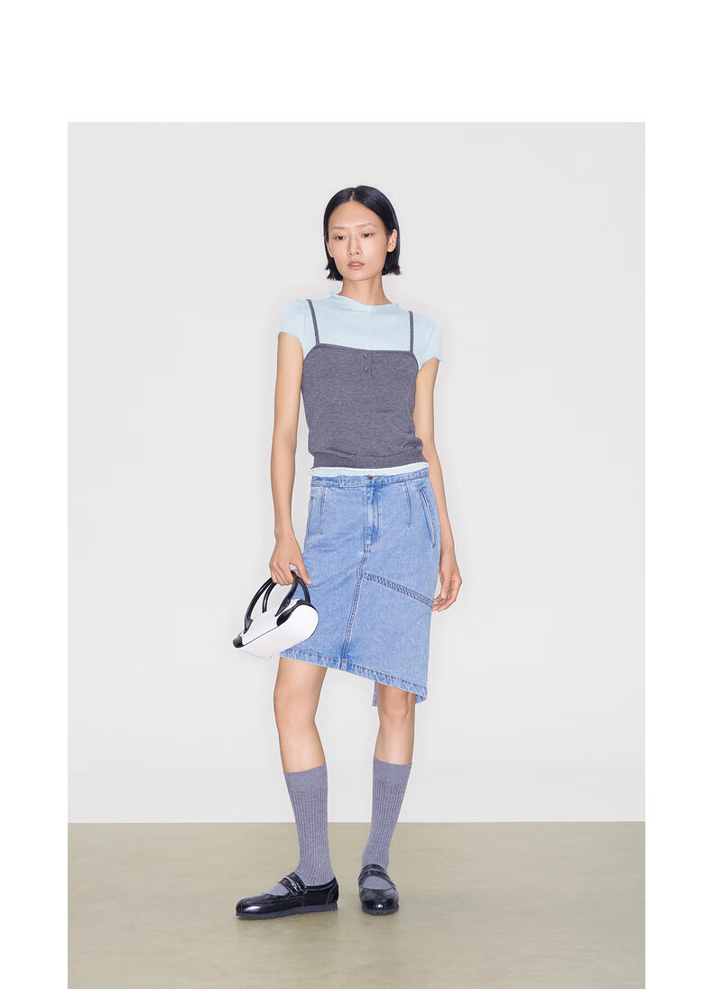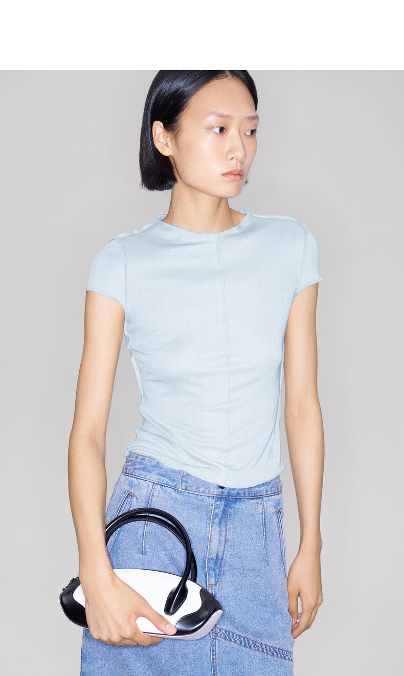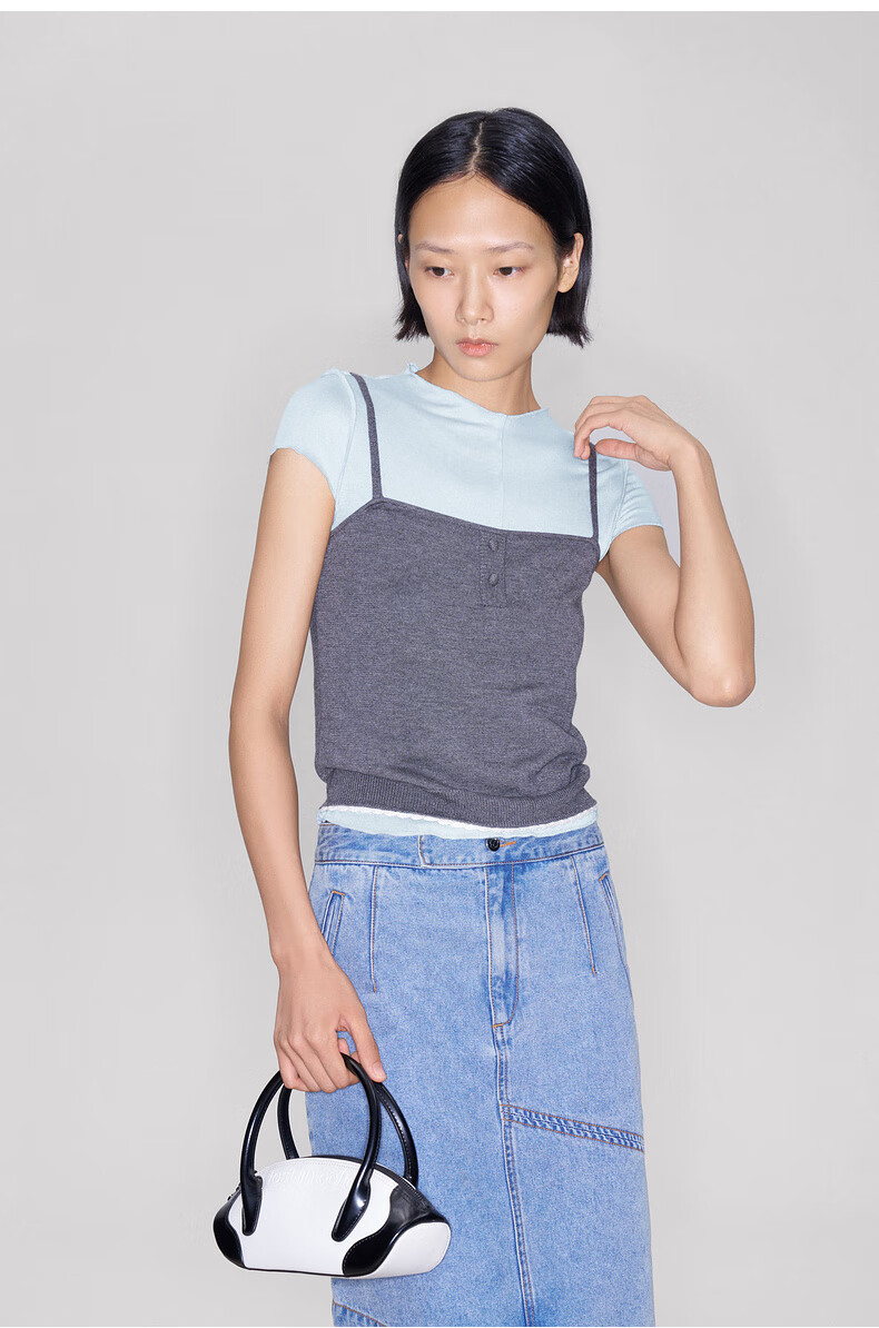 lost in echo2025秋冬新款精致修身显瘦空气感羊毛针织短袖T恤女 灰色 S