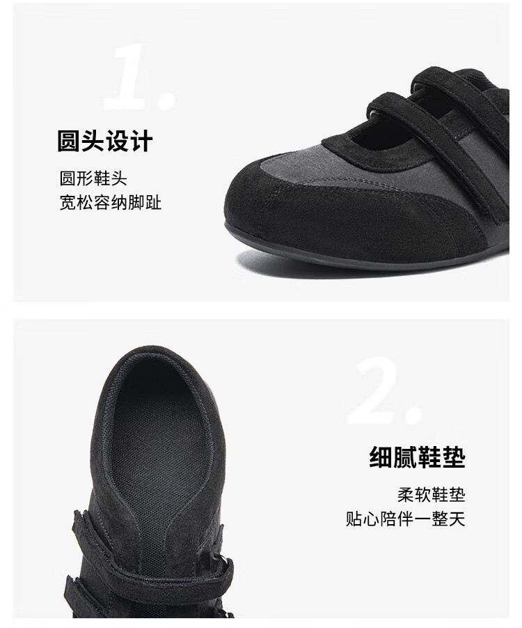足力健老人鞋中老年女鞋休闲舒适软底乐福鞋百搭送礼 黑色 38