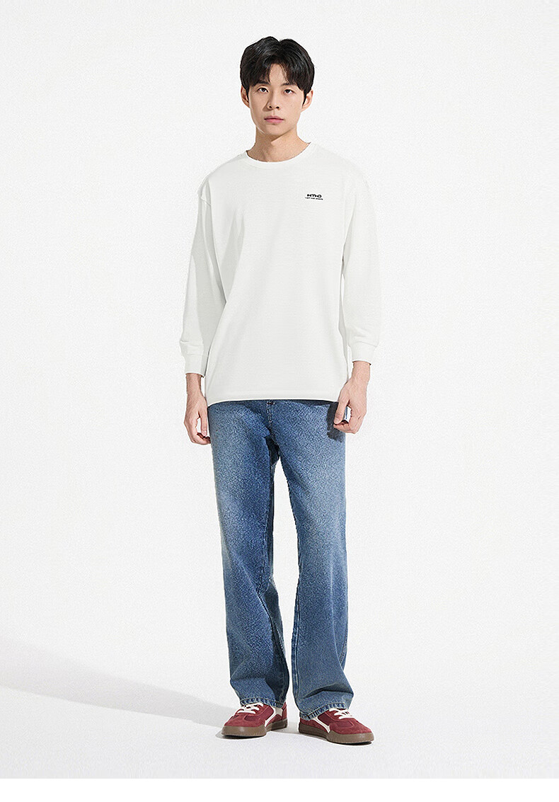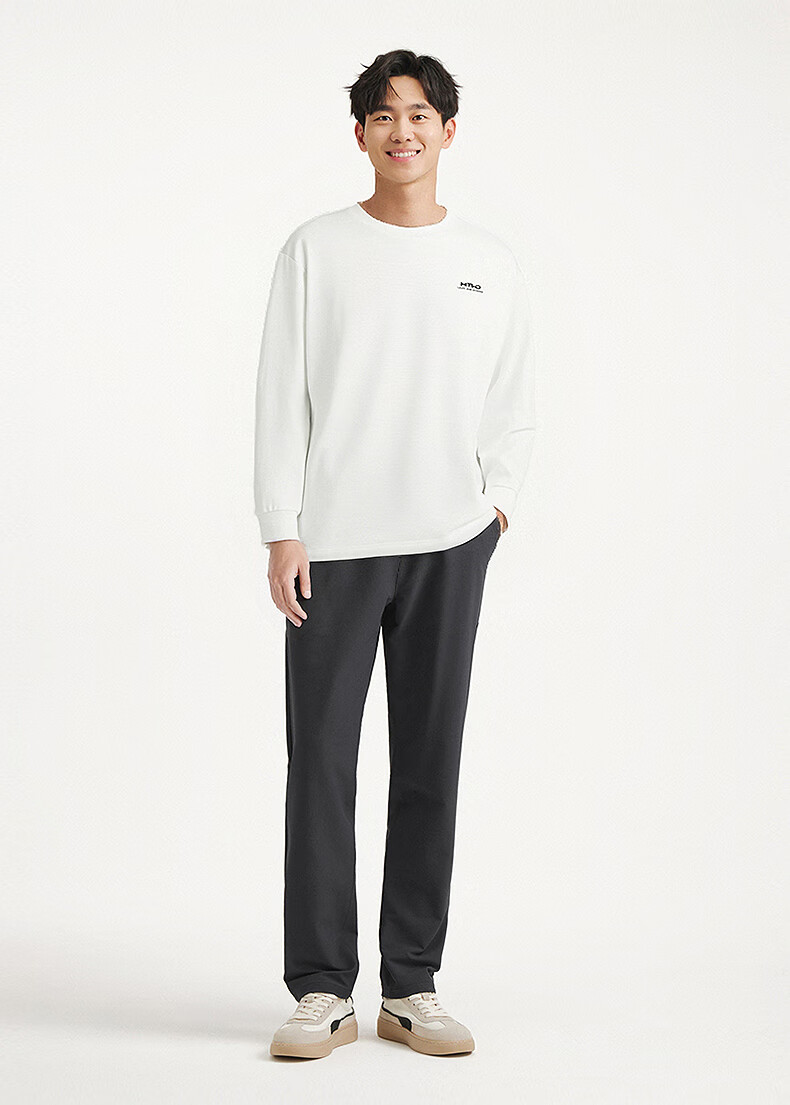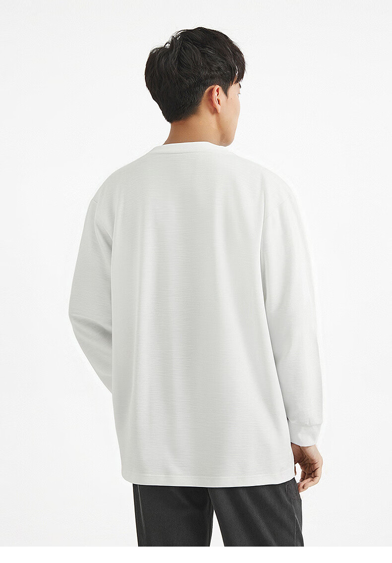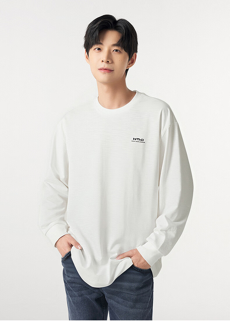 热风【商场同款】男长袖T恤上衣25年秋新款字母印花基础百搭宽松T恤 04白色 M
