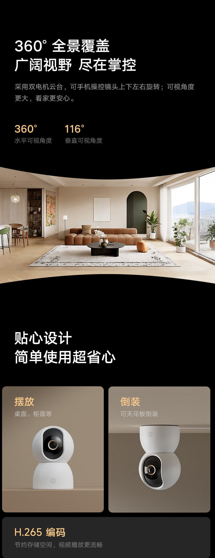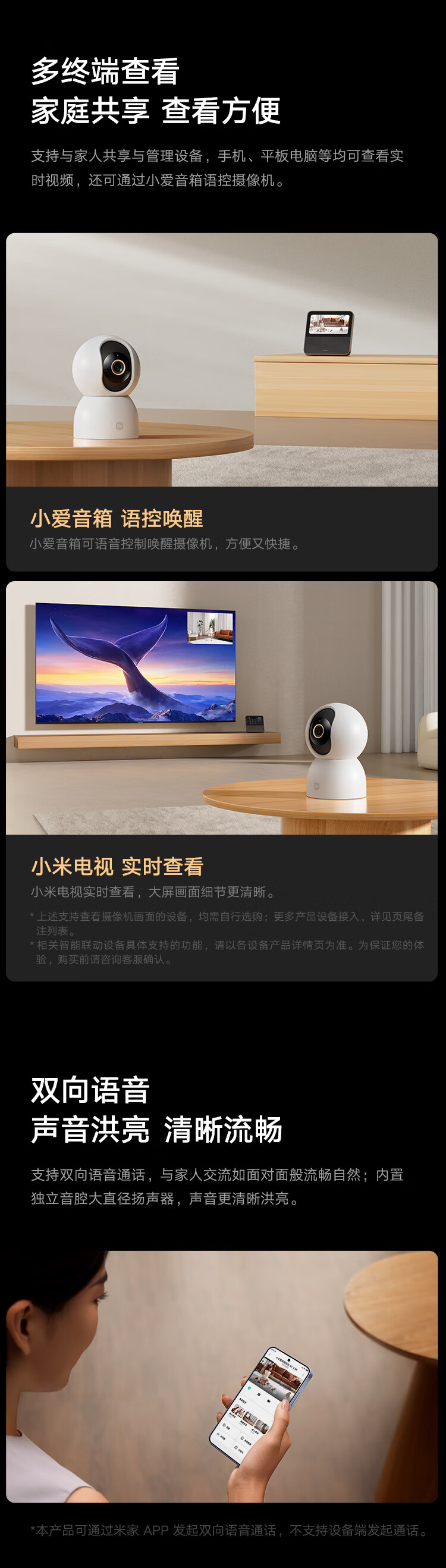 小米小米智能摄像机 4 双摄版 双500万摄像头3K超清画质家用米家监控红外夜视摄像机室内双摄家庭宠物 小米智能摄像机 4 双摄版