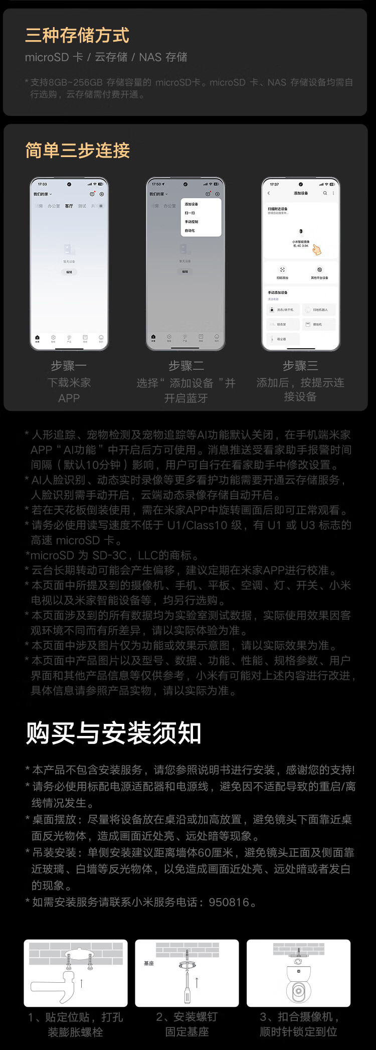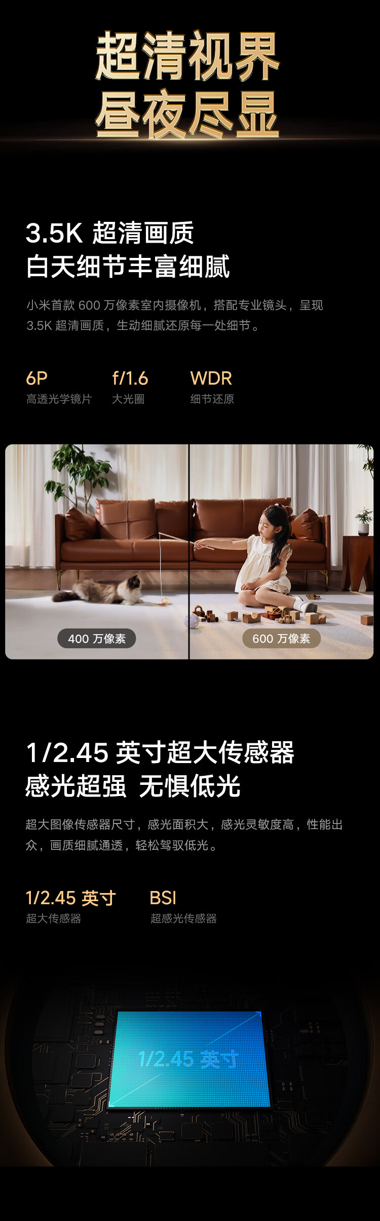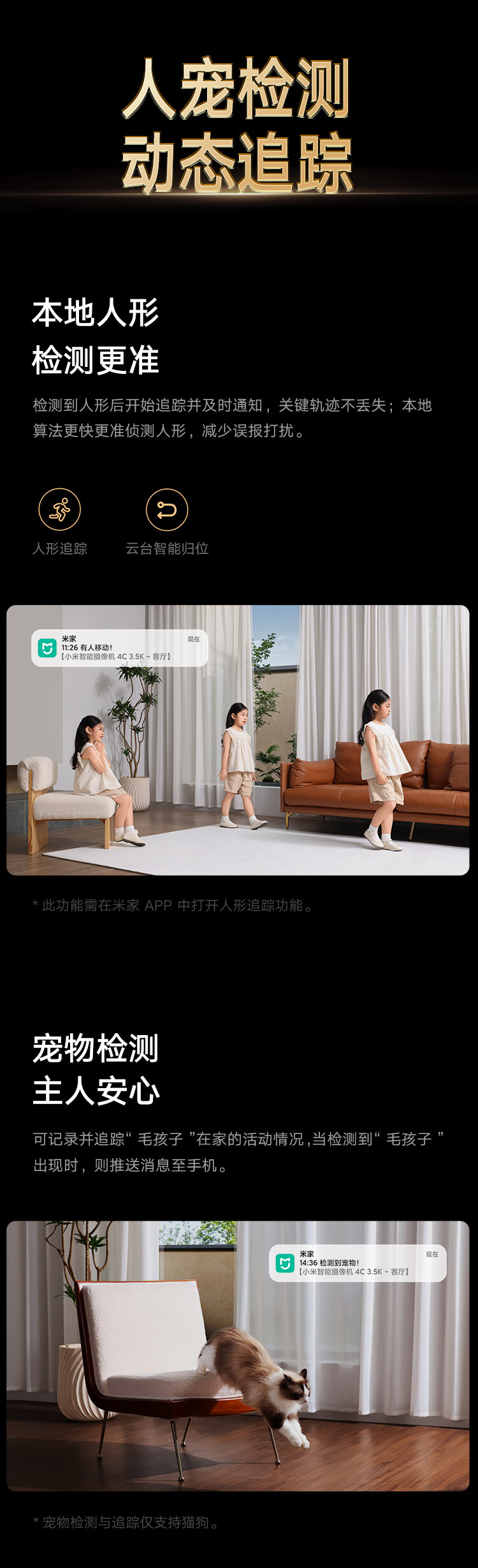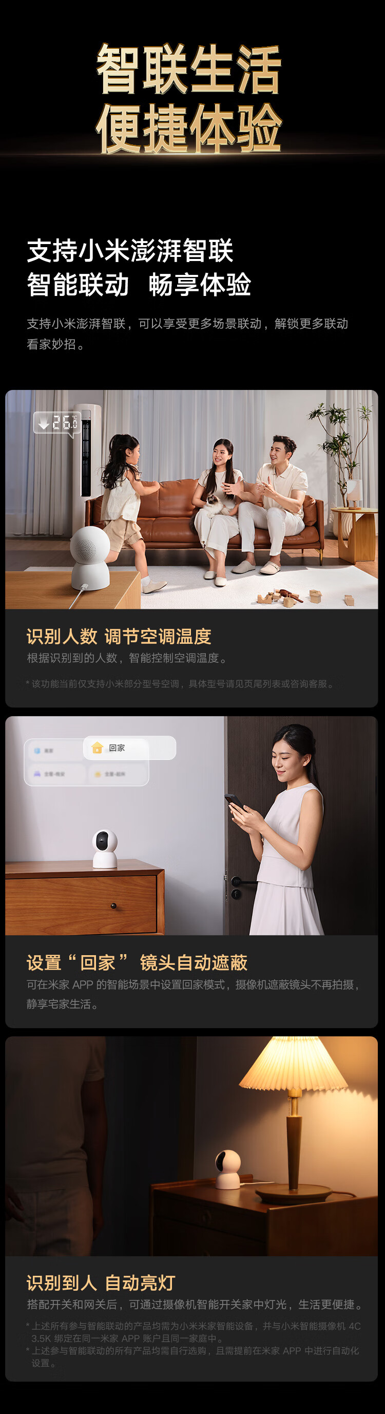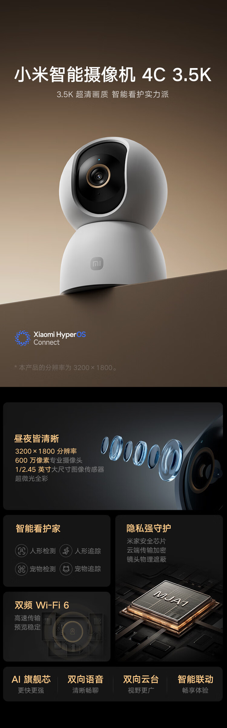 小米智能摄像机4C 3.5K 600万像素超微光全彩AI人形侦测手机远程查看双频家用摄像头婴儿看护器监控 【3.5K旗舰新品】小米智能摄像机 4C