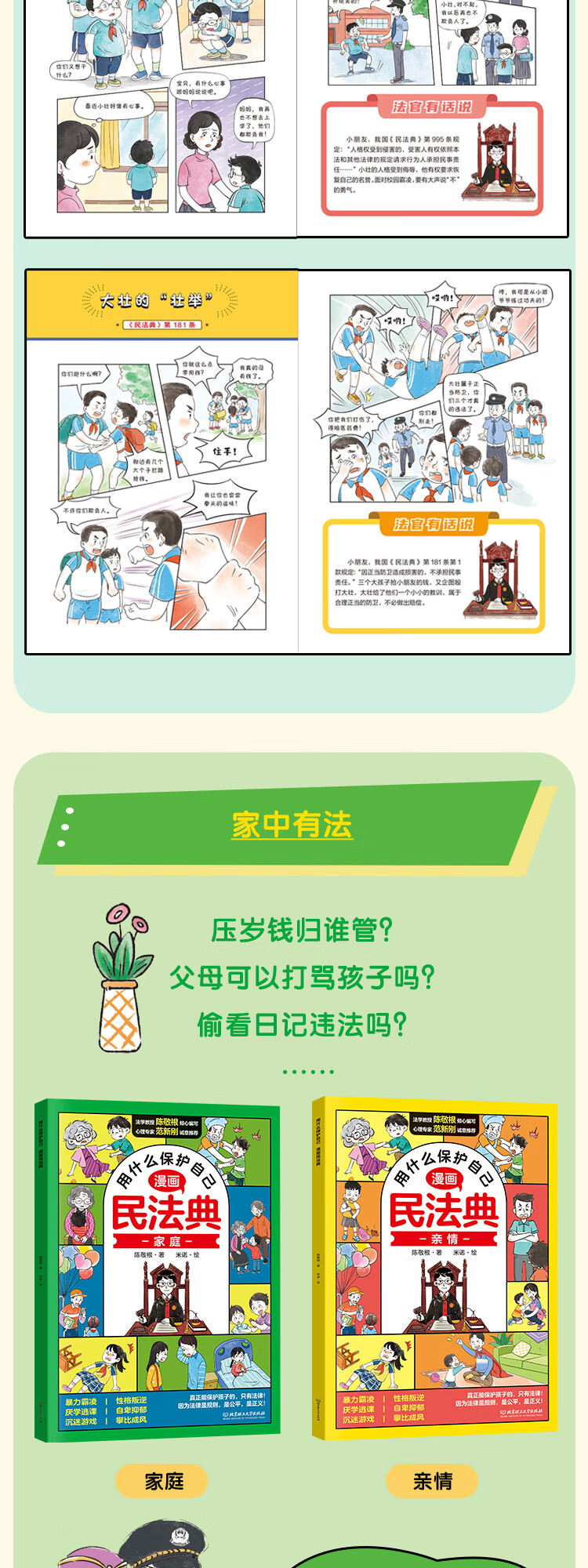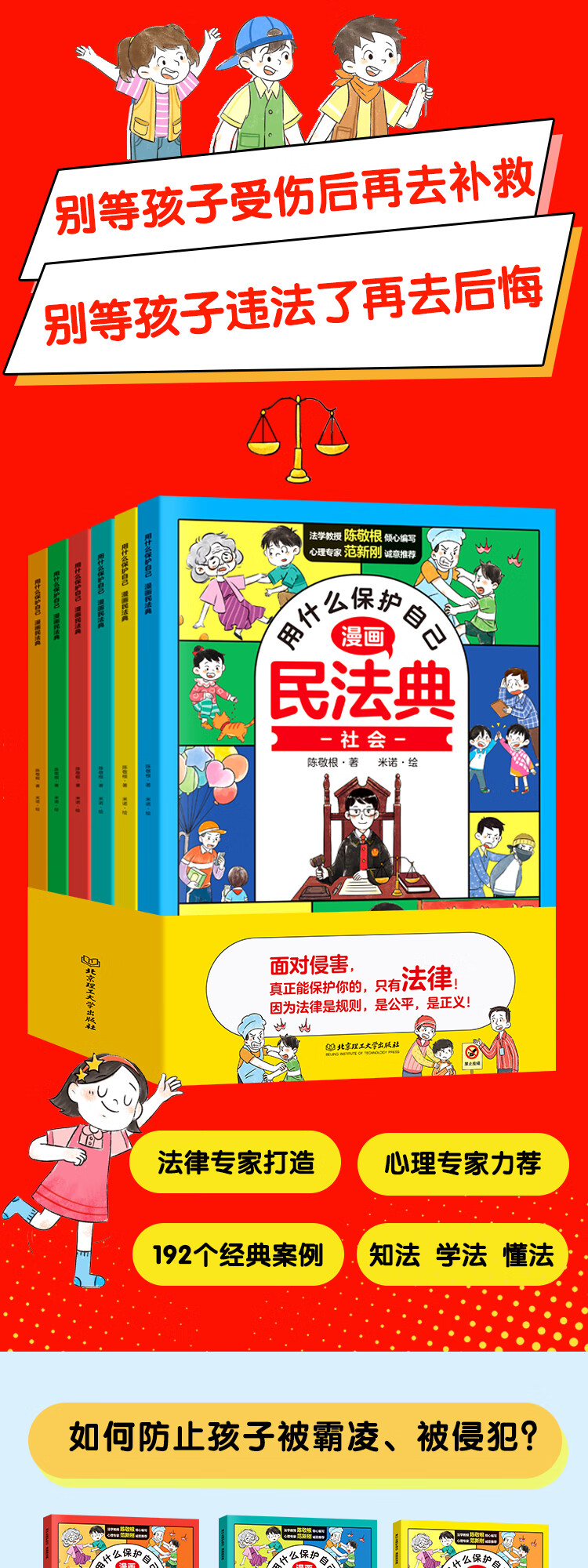 【当当 包邮】漫画民法典用 什么保护自己 全6册 让孩子学法懂法学会自我保护儿童法律启蒙书案例校园家庭暴力安全教育