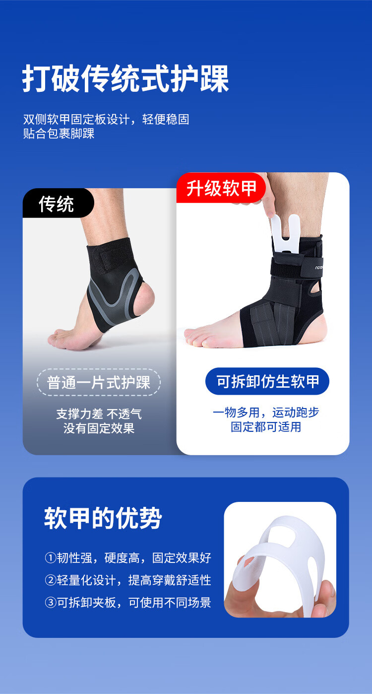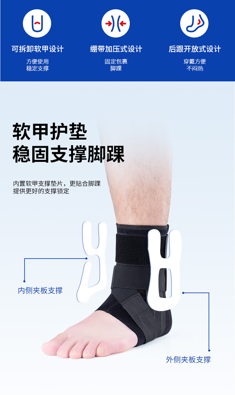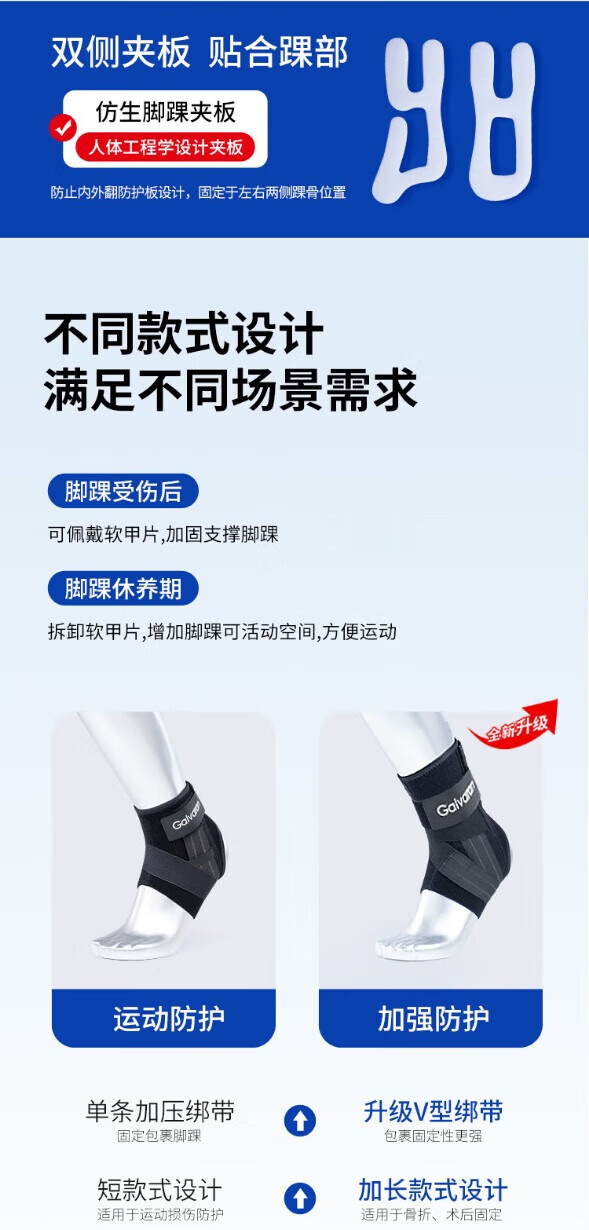 GALVARAN护踝防崴脚扭伤固定支具韧带损伤恢复运动跑步脚腕套篮球护具 加长固定支具【右脚】黑色 M【适合鞋码35-39码】