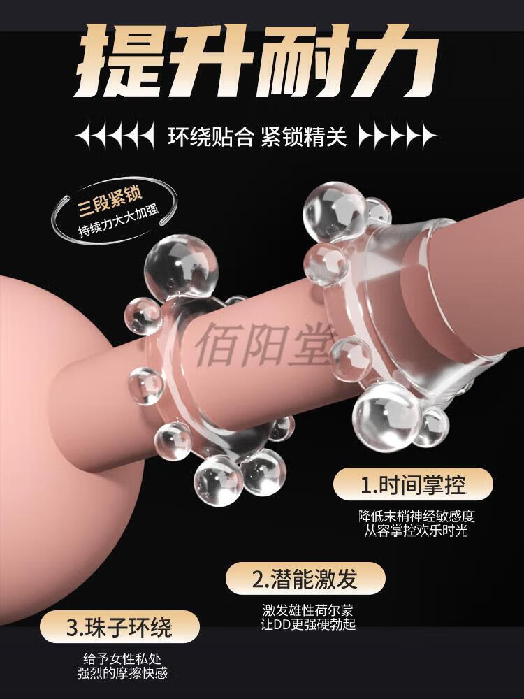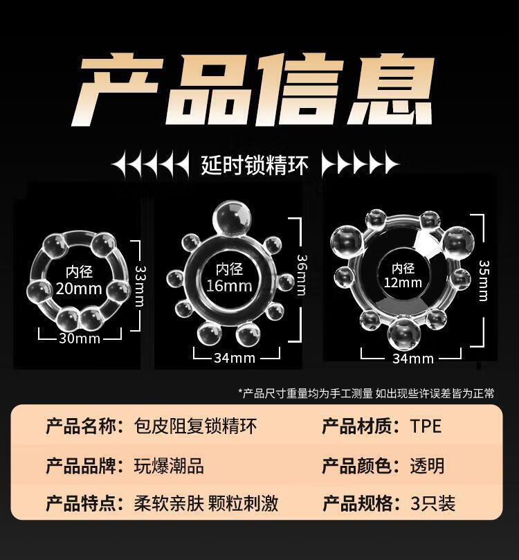 杰士邦(JISSBON)入珠套高潮锁精环安全套男用品狼牙带刺大颗粒情趣变态 口套 [湿滑激情]锁精包皮环3只装+润