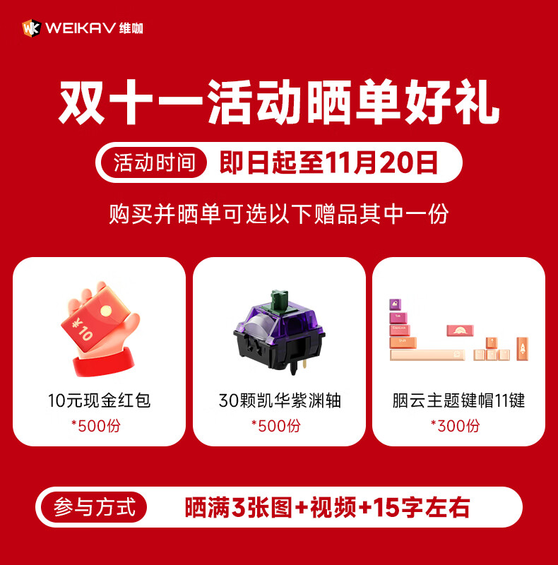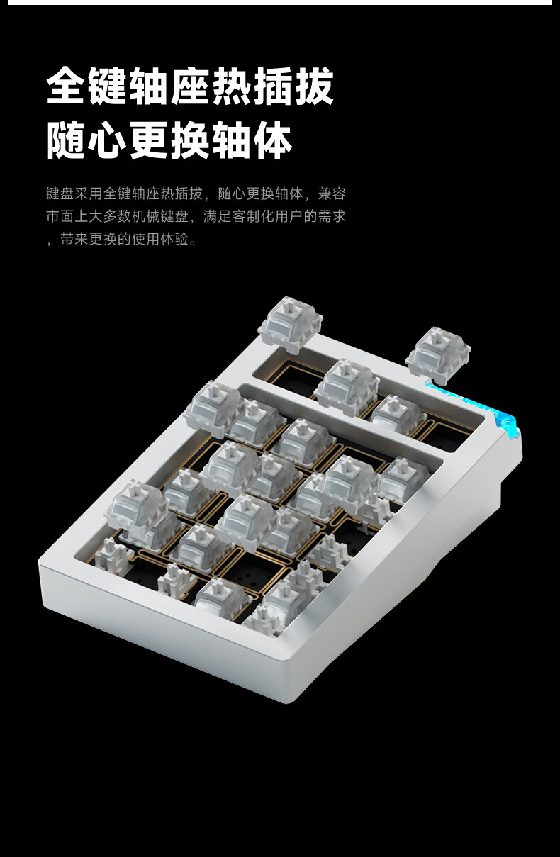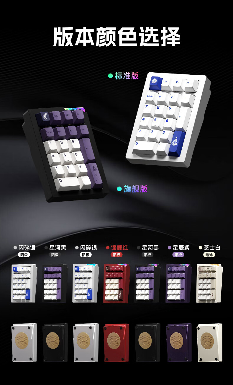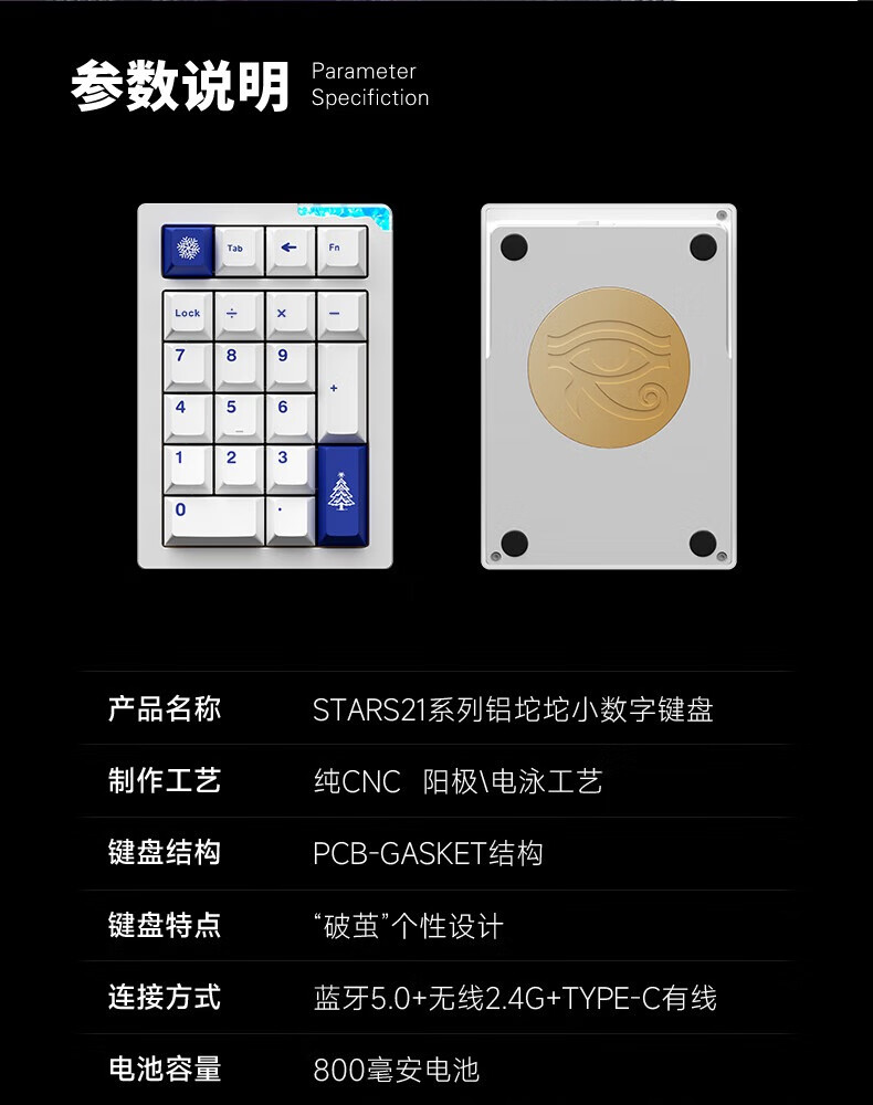 维咖(weikav)Stars21客制化机械键盘金属CNC铝坨坨三模蓝牙无线有线Gasket结构全键热插拔轴PAD数字小键盘 【标准版】闪碎银-游戏-白玉轴
