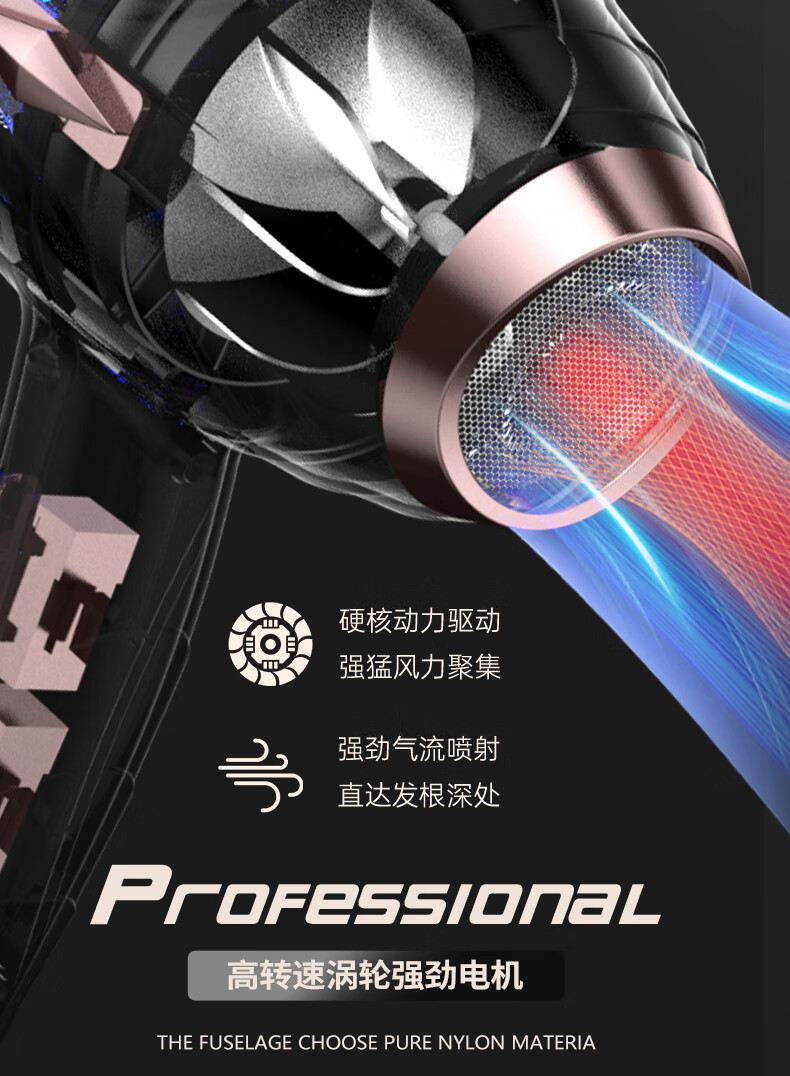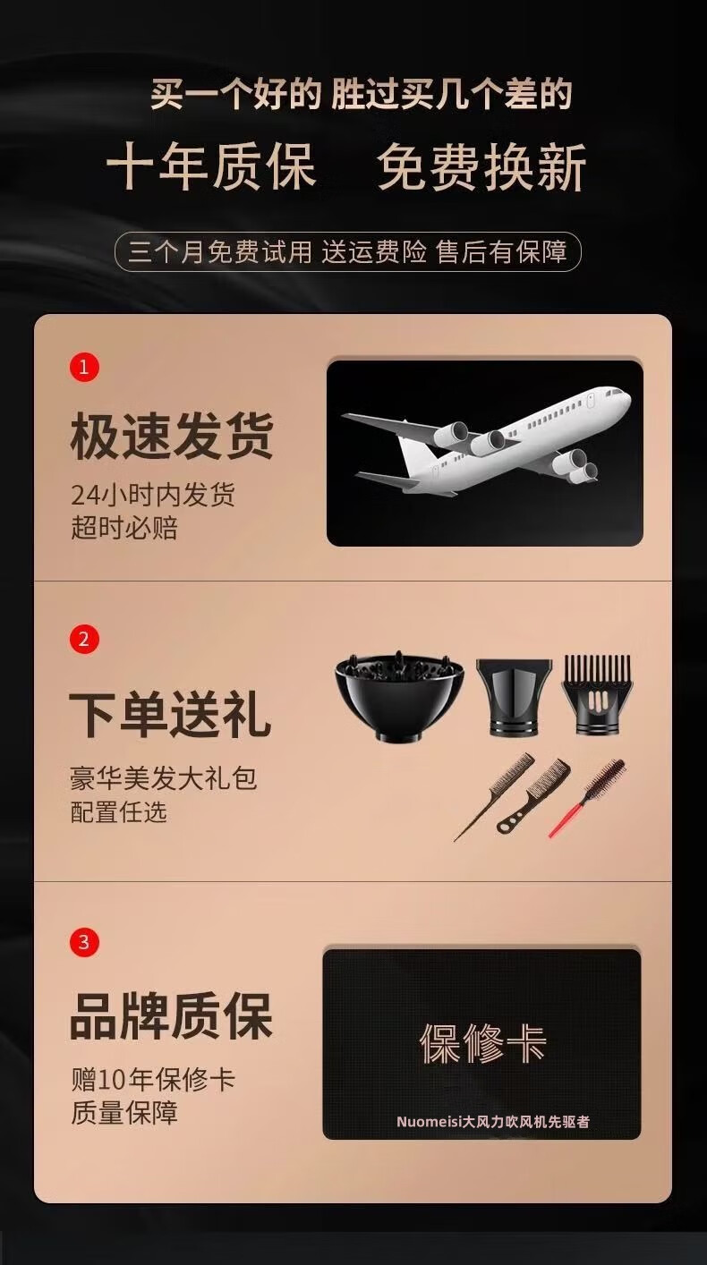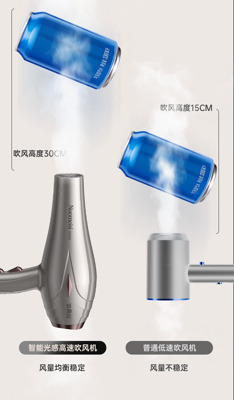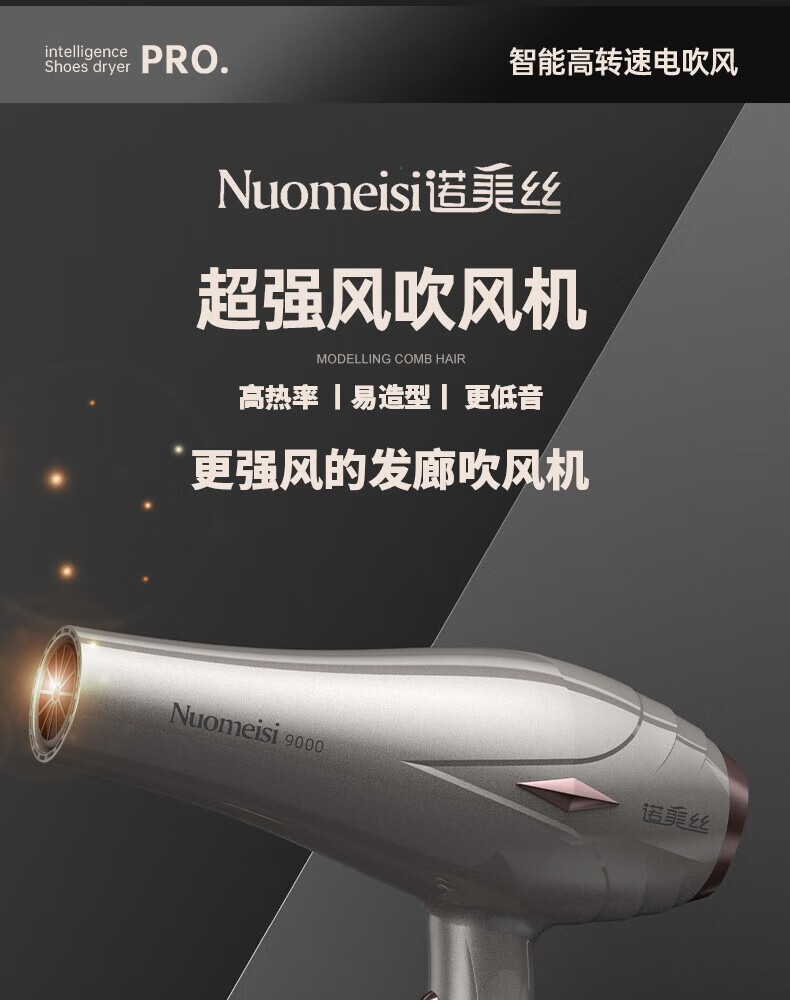 诺美丝电吹风机大功率负离子速干发廊理发店专用不伤发家用吹风筒护发 【灰金款9000大风力】3米线+6
