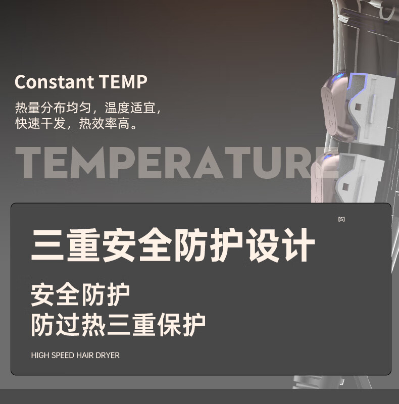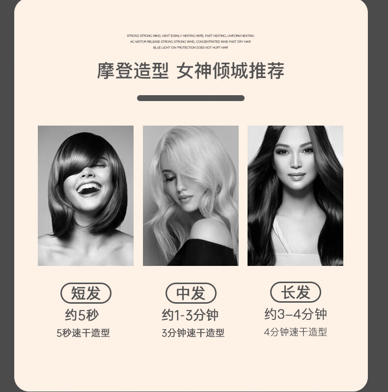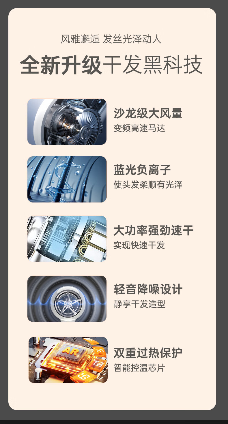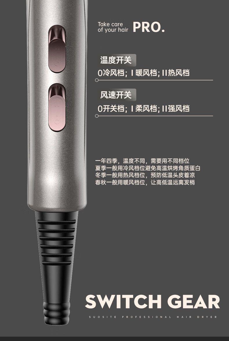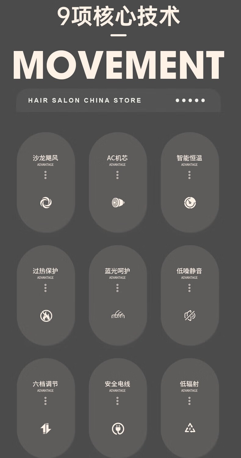 诺美丝电吹风机大功率负离子速干发廊理发店专用不伤发家用吹风筒护发 【灰金款9000大风力】3米线+6