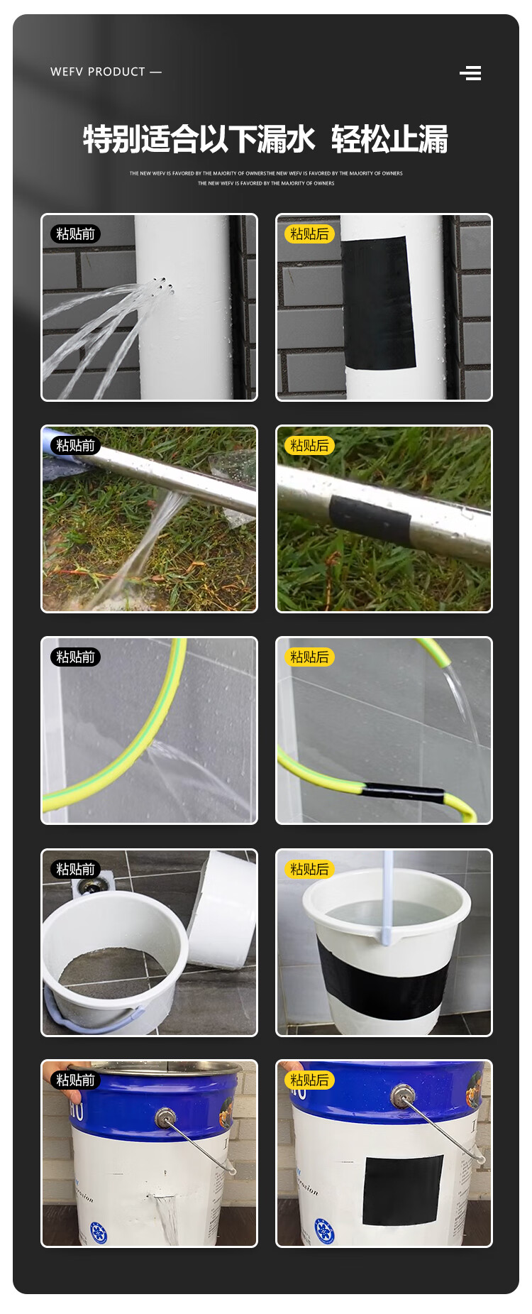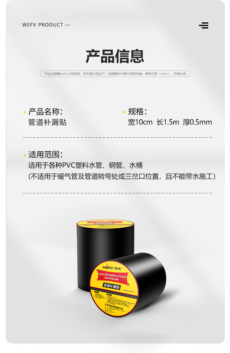 维芙WEFV管道防水贴强力补漏胶带 水管防漏水胶布下水管漏水堵漏神器