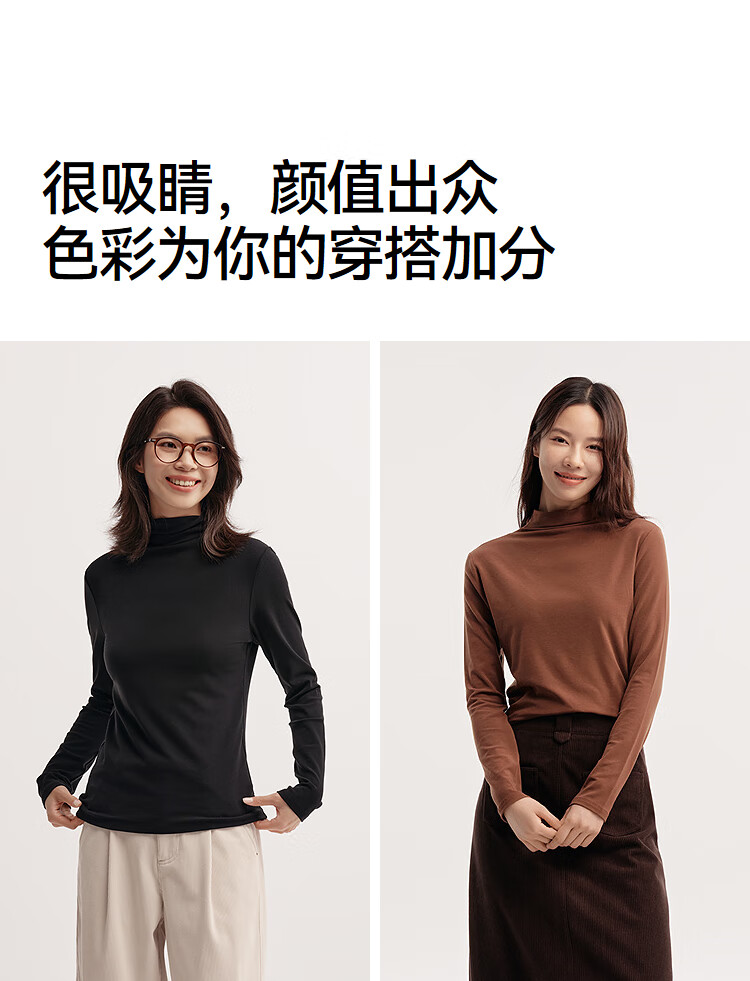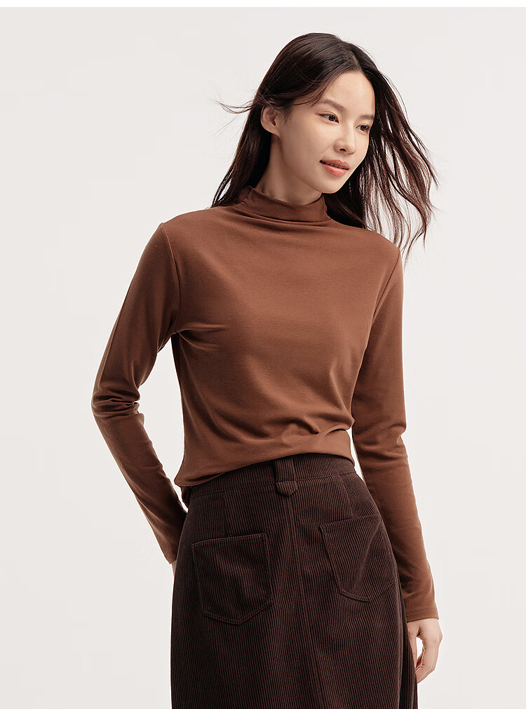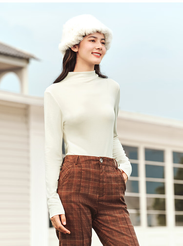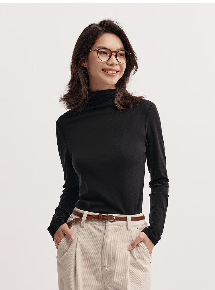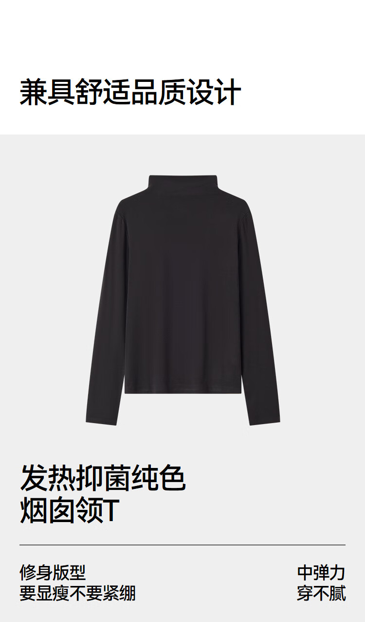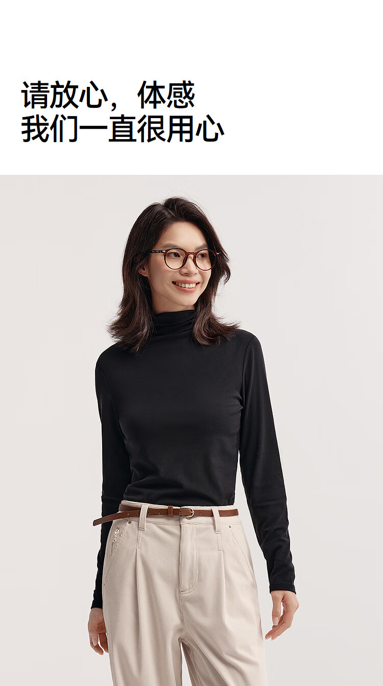 森马(Semir)长袖T恤女冬半高领发热抑菌纯色修身上衣显瘦打底衫101724101005