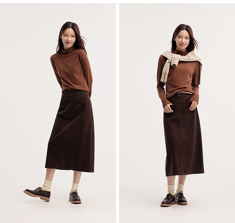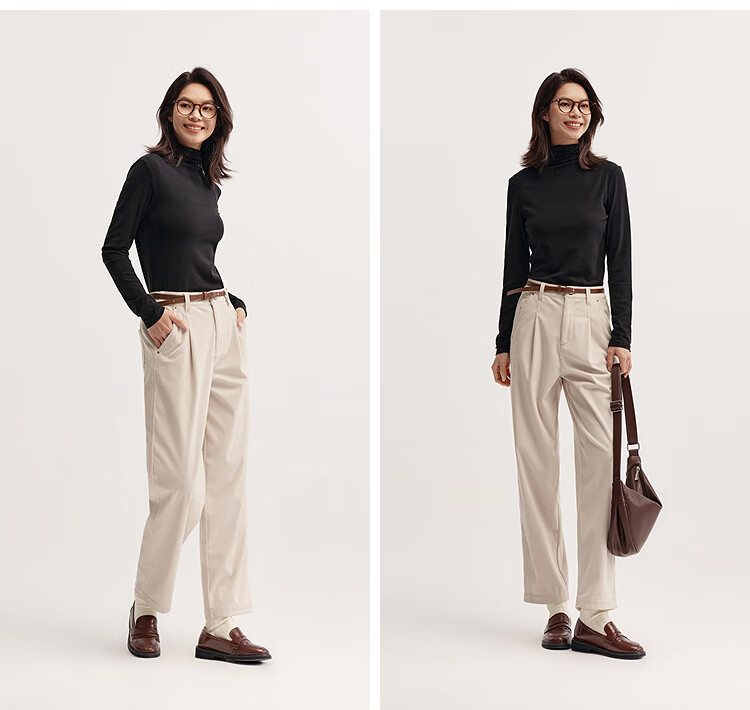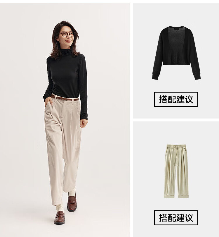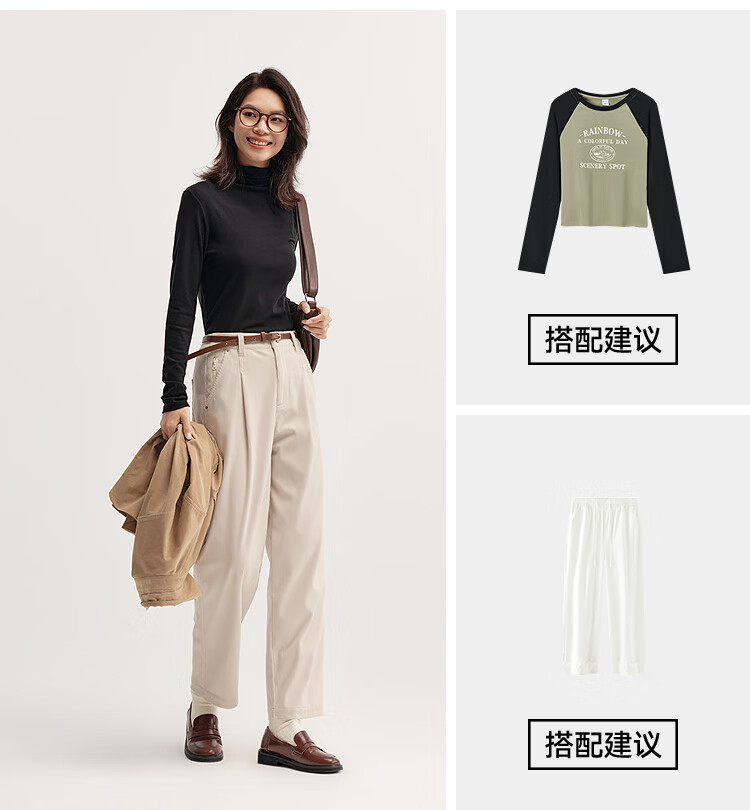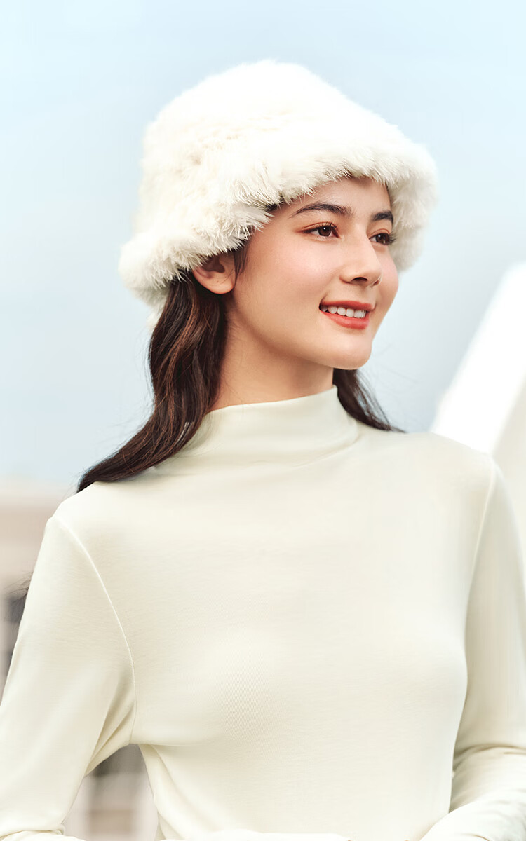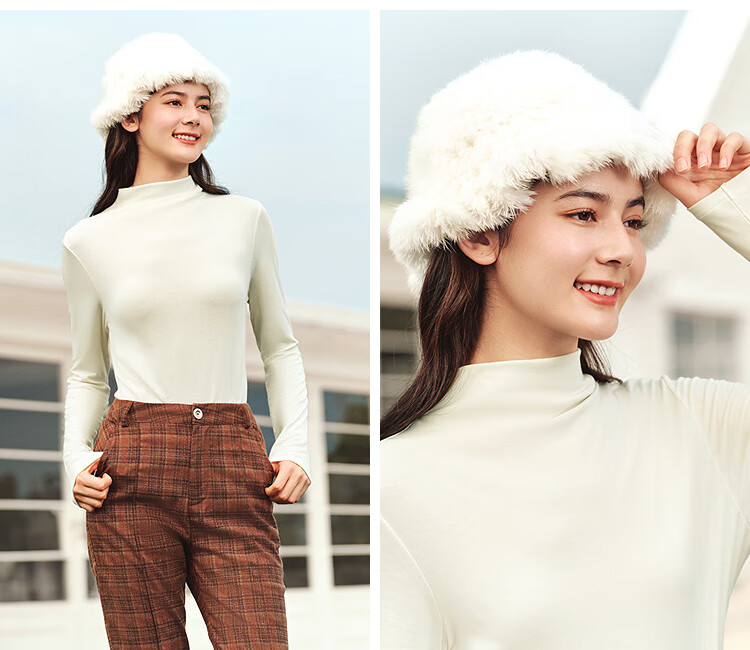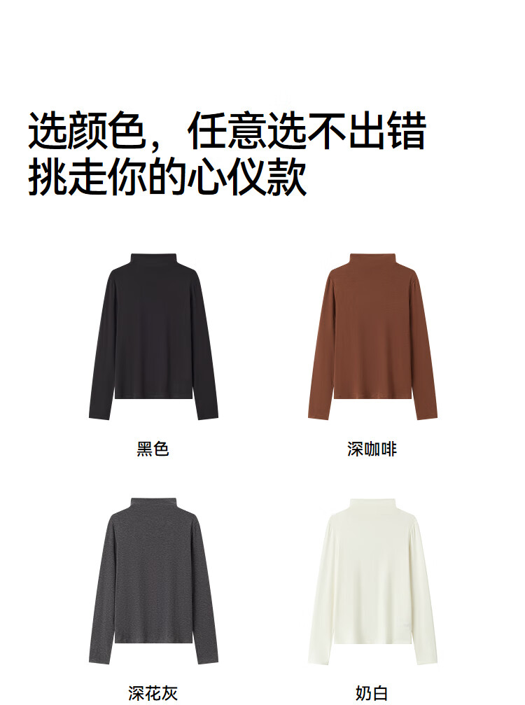 森马(Semir)长袖T恤女冬半高领发热抑菌纯色修身上衣显瘦打底衫101724101005