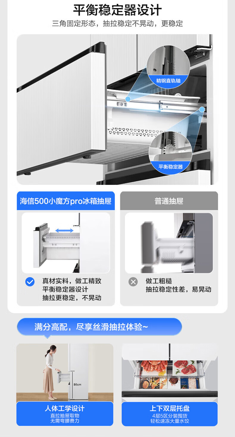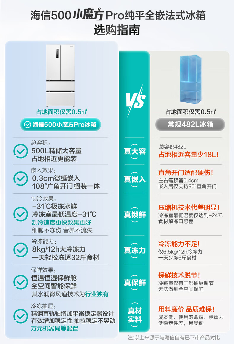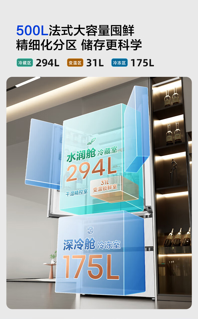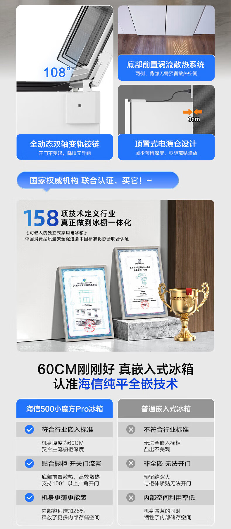 海信(Hisense)500小魔方Pro超薄零嵌入式冰箱法式一级能效风冷无霜家电国家补贴20%以旧换新BCD-500WNK1PUQ 白色