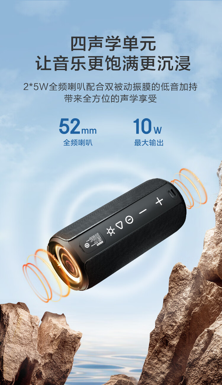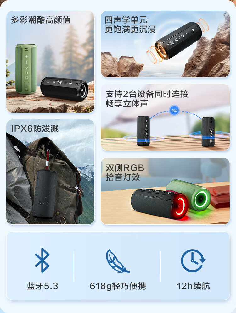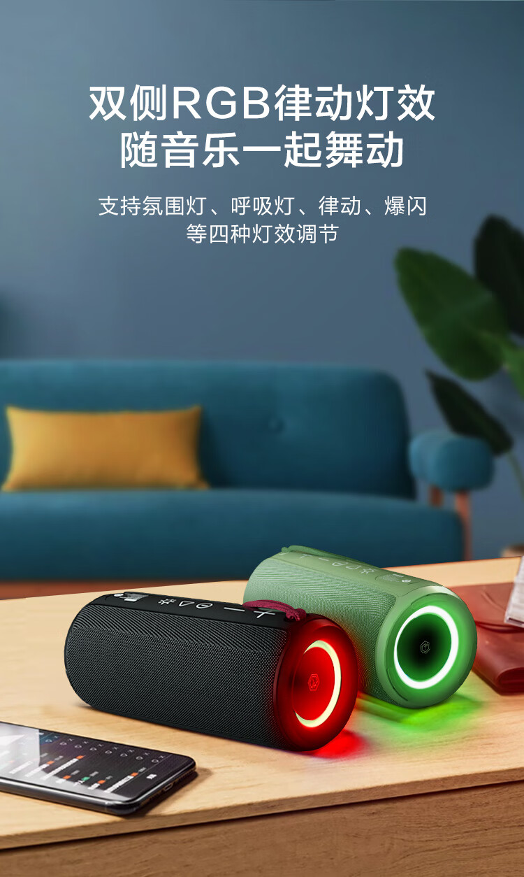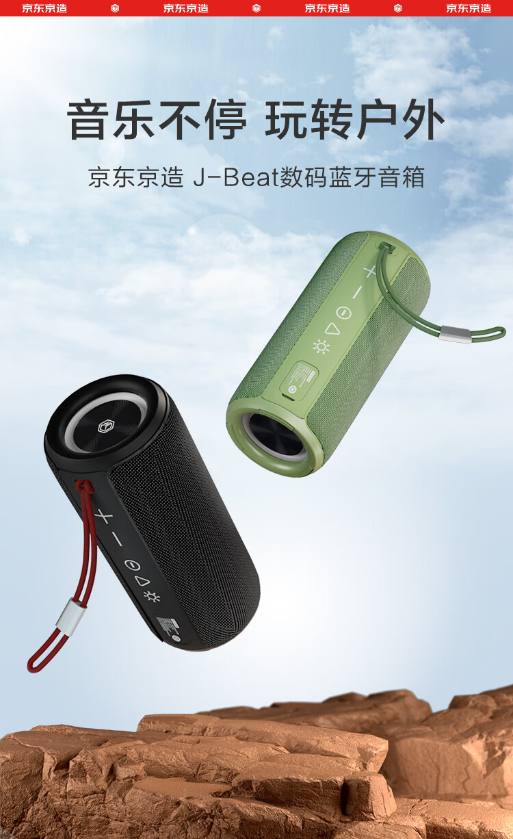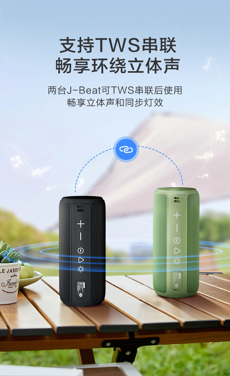 京东京造J-Beat 户外蓝牙音箱 便携式无线蓝牙音箱 蓝牙5.3 RGB炫彩灯 多台串联立体声 绿色款