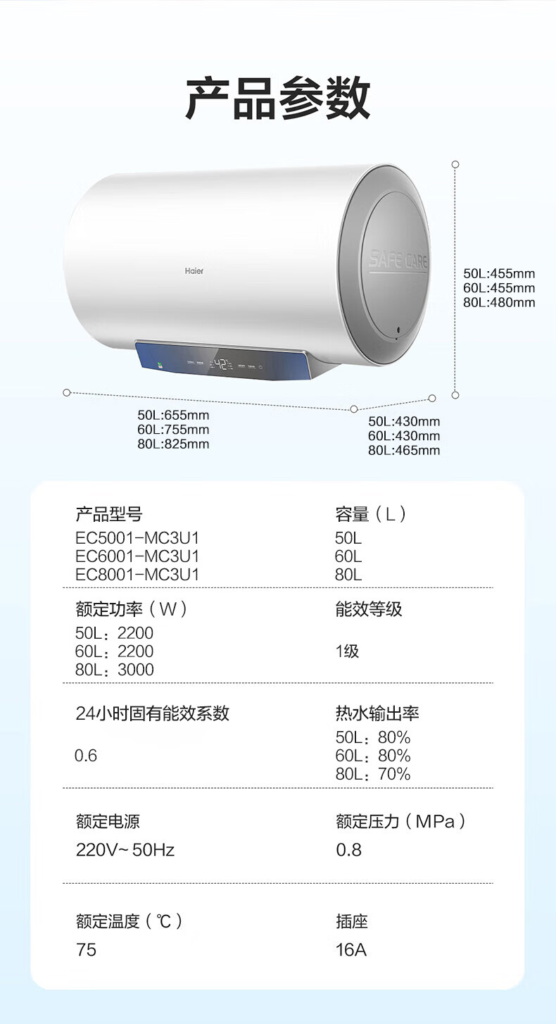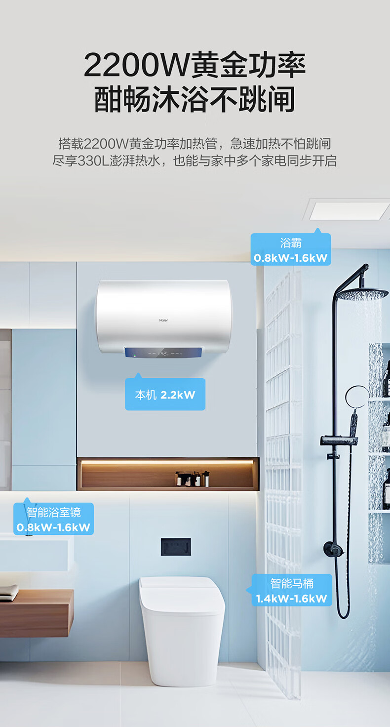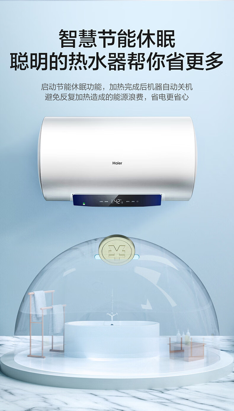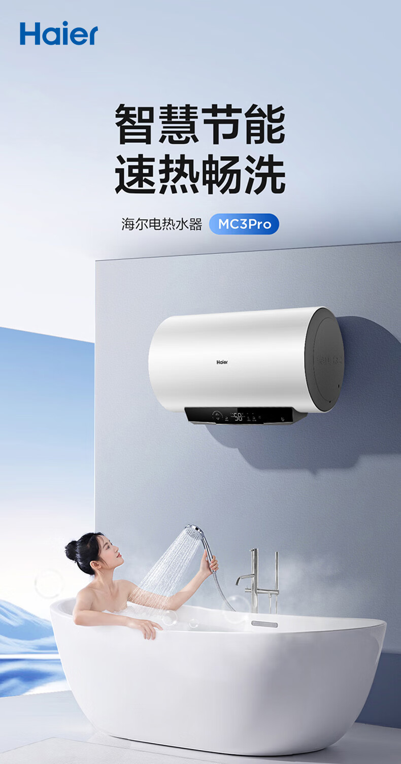 海尔(Haier)【下单立省20%】热水器家用储水式电热水器速热恒温超一级能效省电保温智能镁棒免更换抑菌MC3 60L 2200W 长效保温【MC3咨询享补贴】
