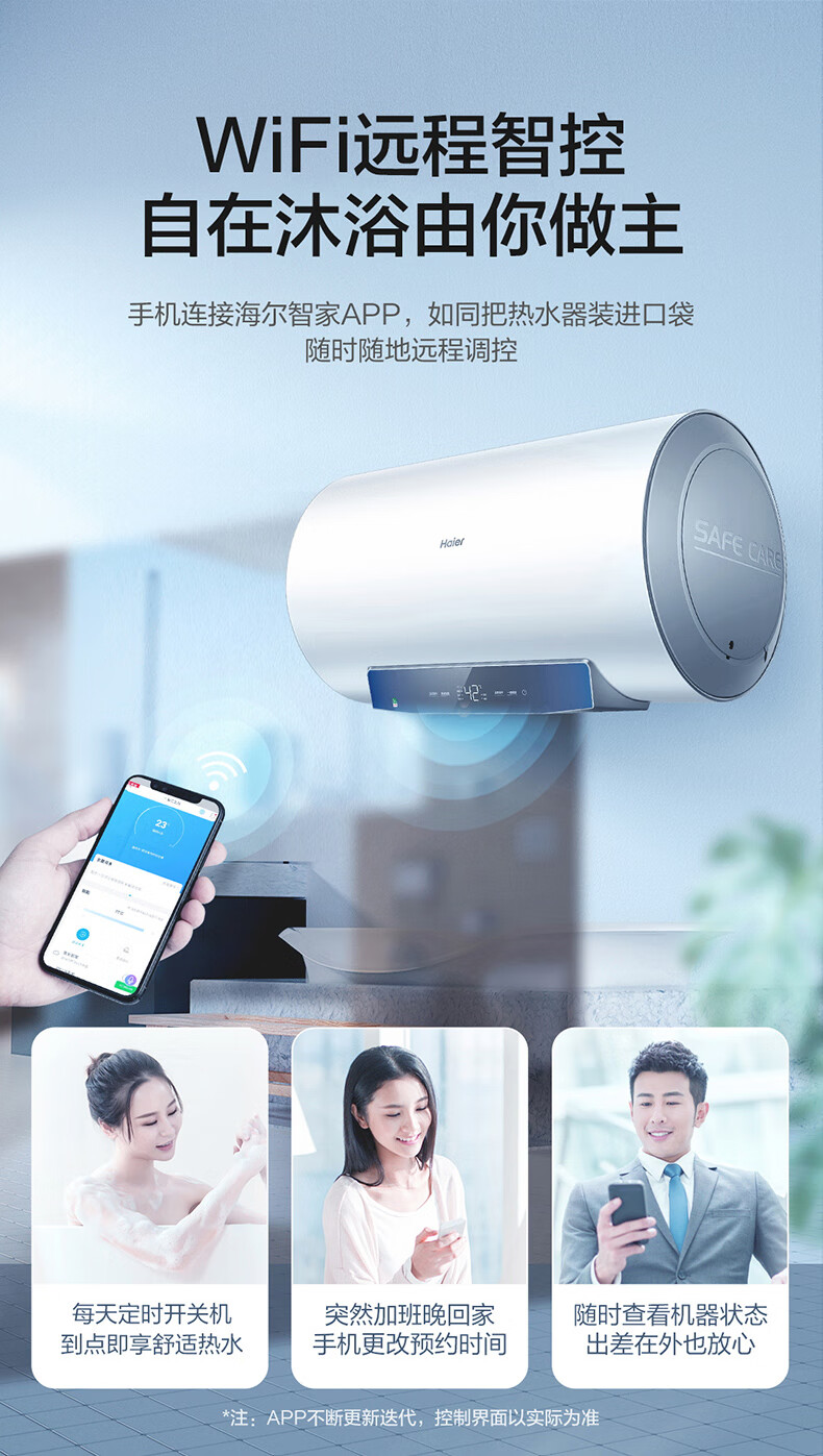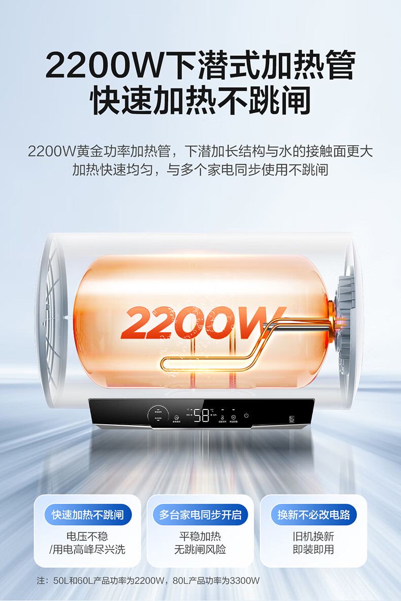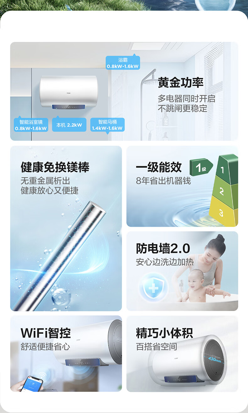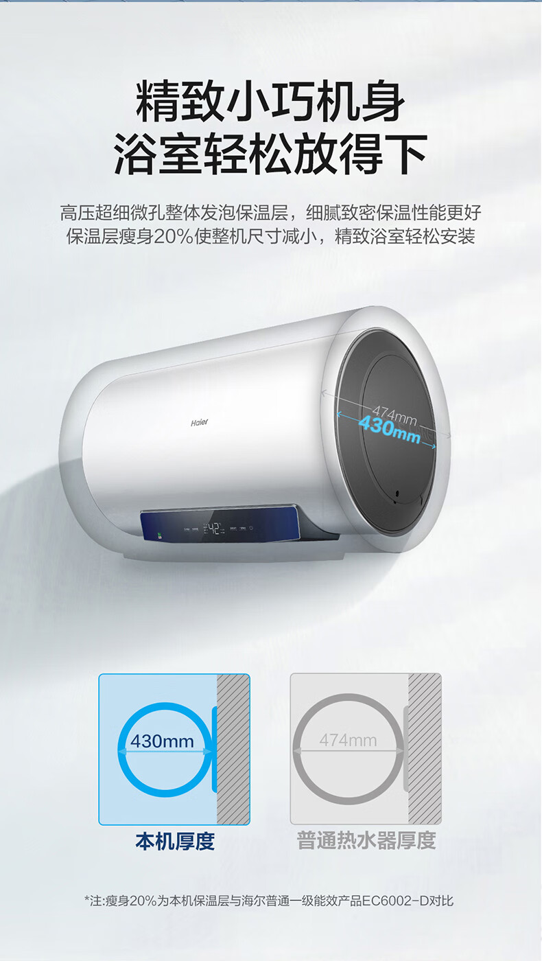 海尔(Haier)【下单立省20%】热水器家用储水式电热水器速热恒温超一级能效省电保温智能镁棒免更换抑菌MC3 60L 2200W 长效保温【MC3咨询享补贴】