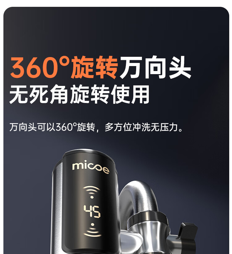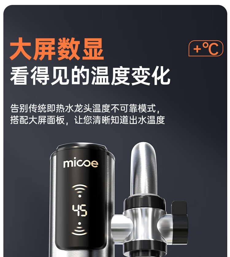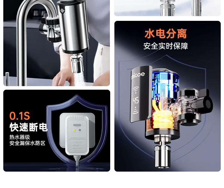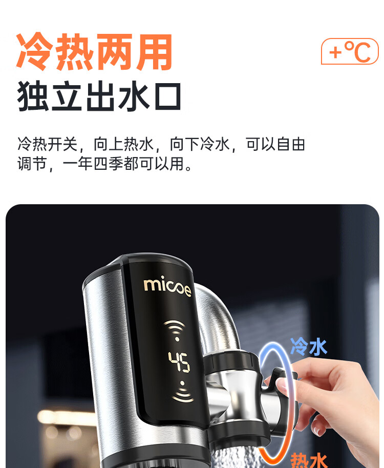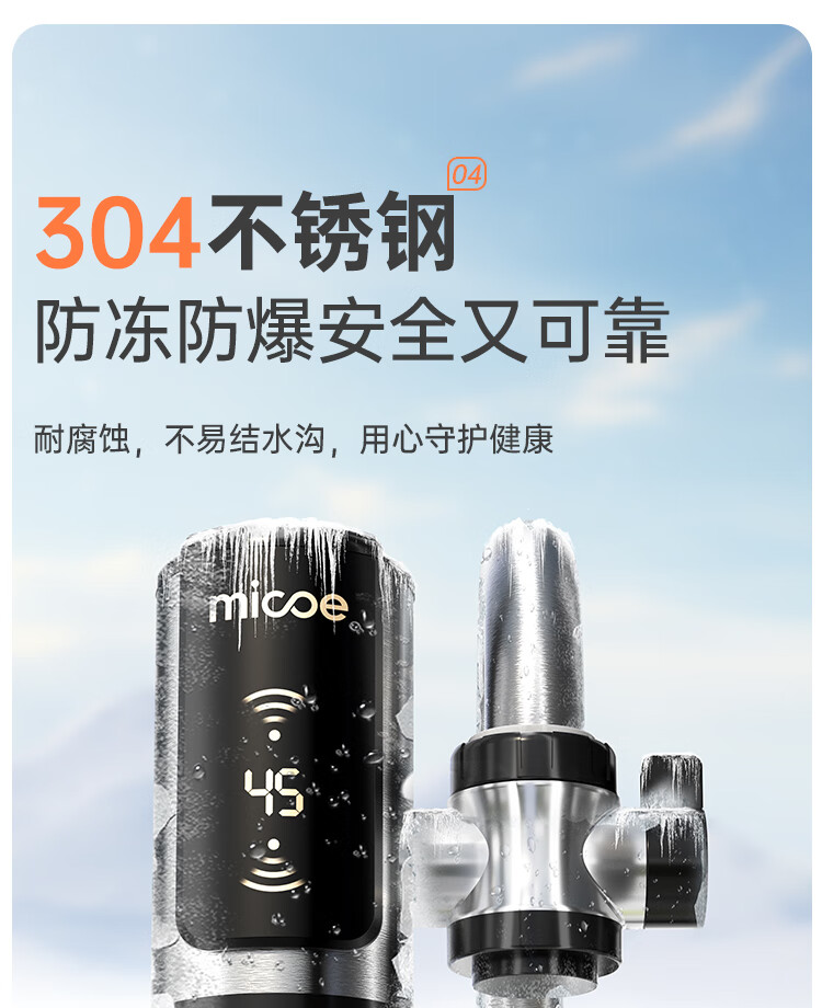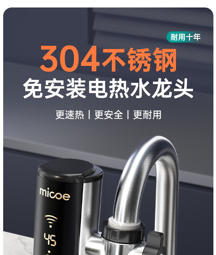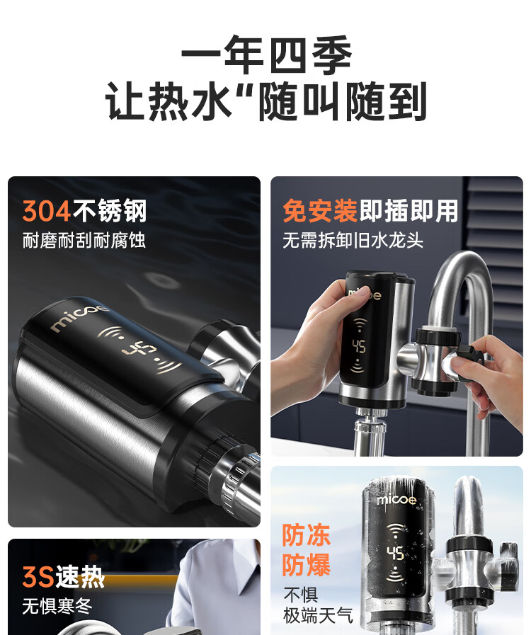 四季沐歌(MICOE)【3秒速热丨无需拆卸】电热水龙头热水器即热式免安装变频恒温热水龙头厨房卫生间快速加热器 【免安装耐用款】不锈钢+漏保+送万向头