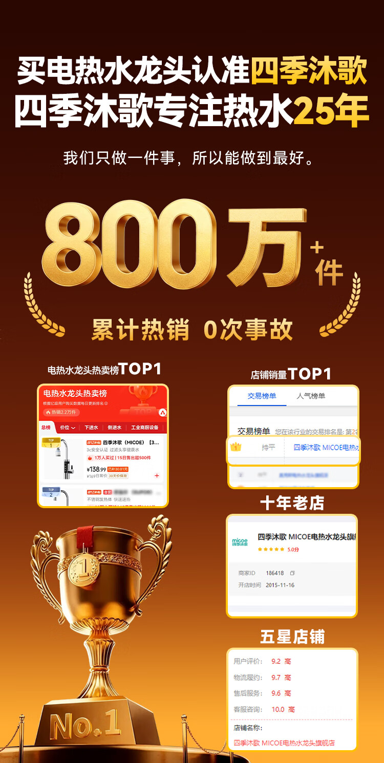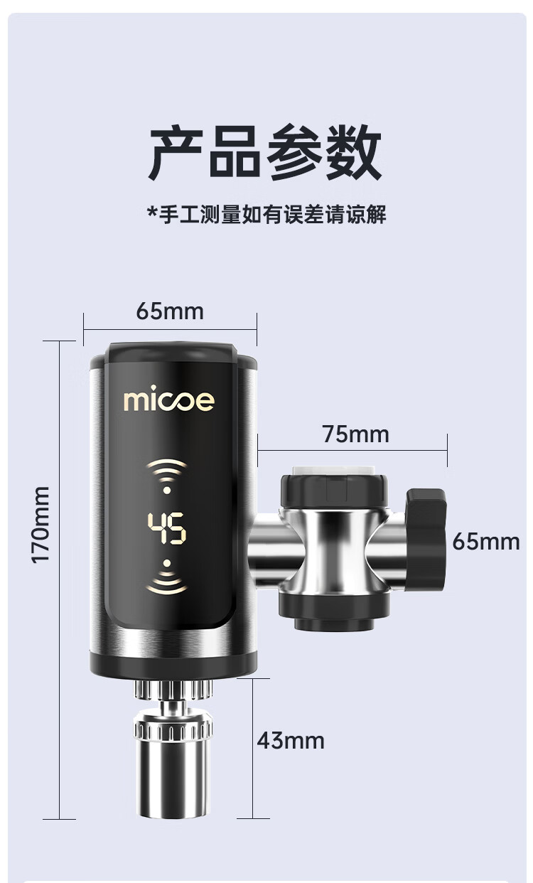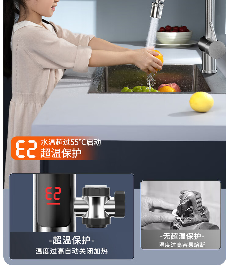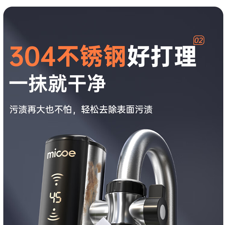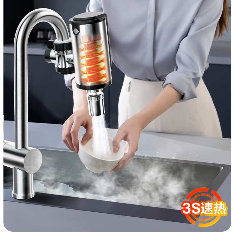 四季沐歌(MICOE)【3秒速热丨无需拆卸】电热水龙头热水器即热式免安装变频恒温热水龙头厨房卫生间快速加热器 【免安装耐用款】不锈钢+漏保+送万向头