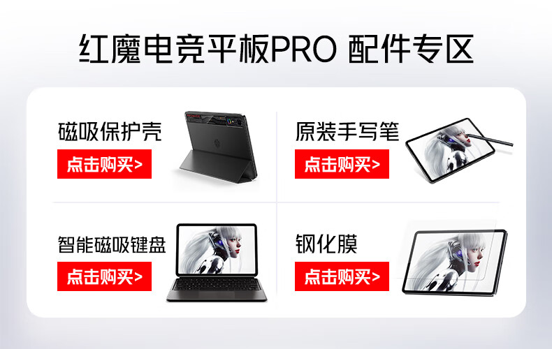 努比亚红魔电竞平板Pro 国家补贴15% 骁龙8Gen3领先版2.8K 144Hz 10100mAh 120W 12G+256G银翼 游戏平板电脑