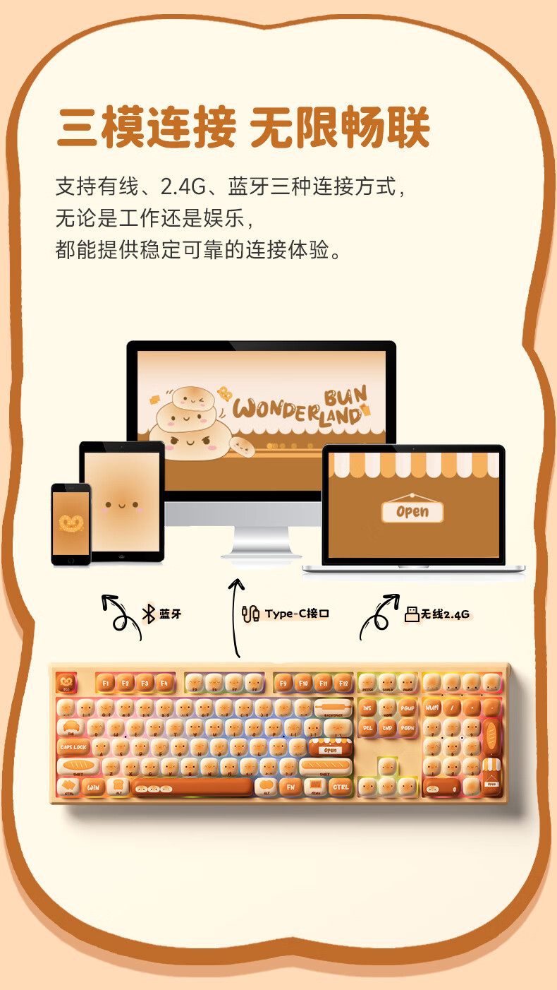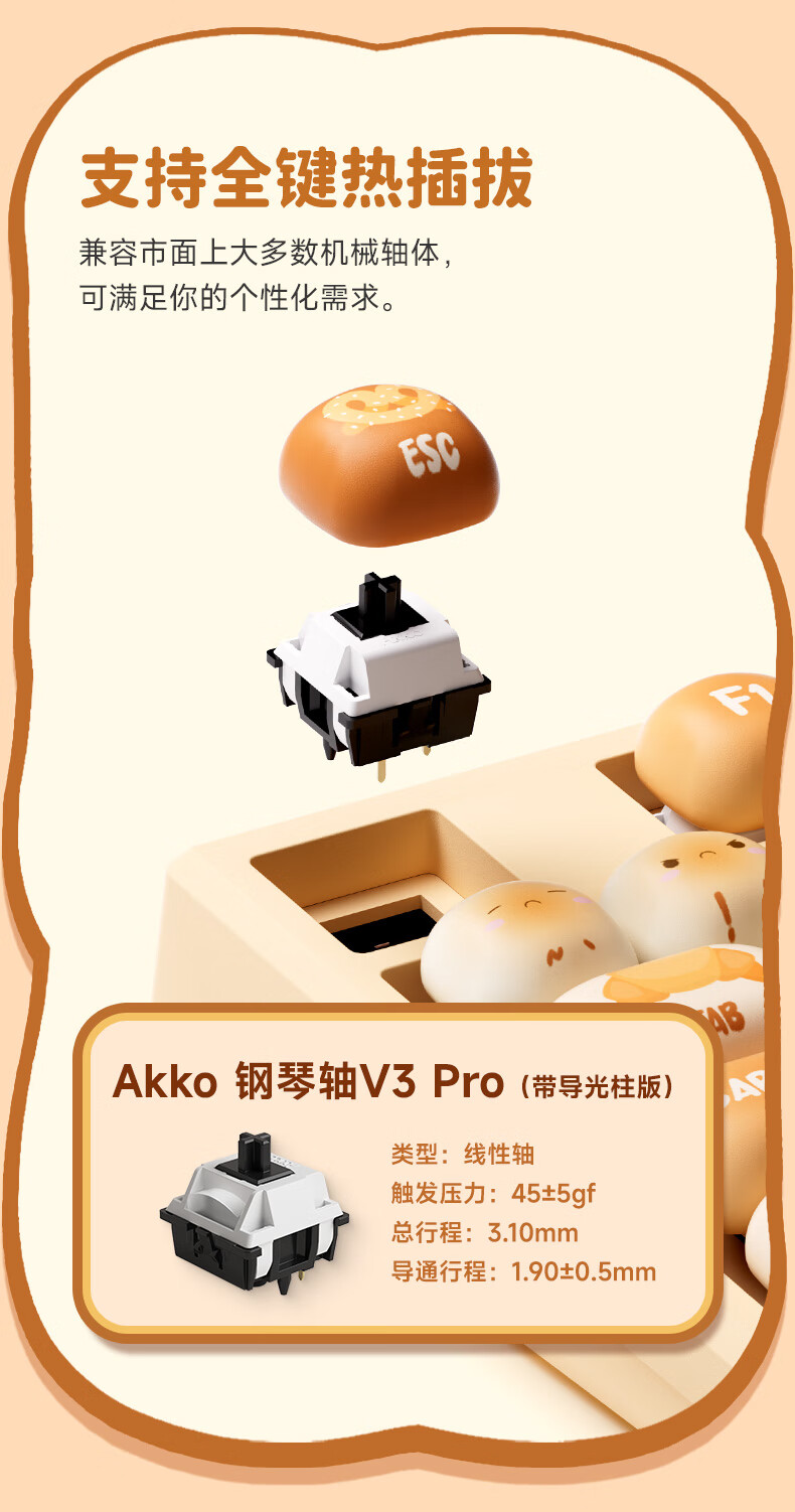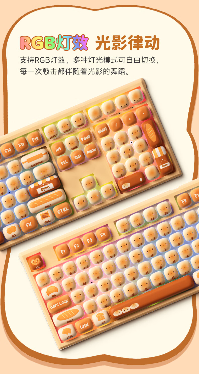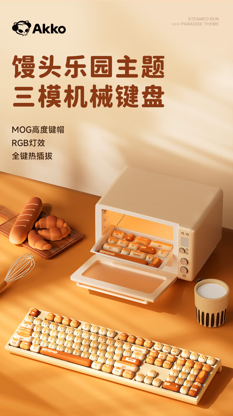 AKKO馒头乐园MG108B 可爱键帽机械键盘三模RGB热插拔电脑笔记本客制化键盘 七夕情人节礼物送女友