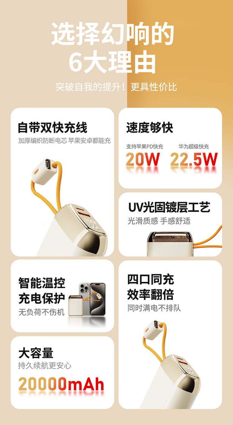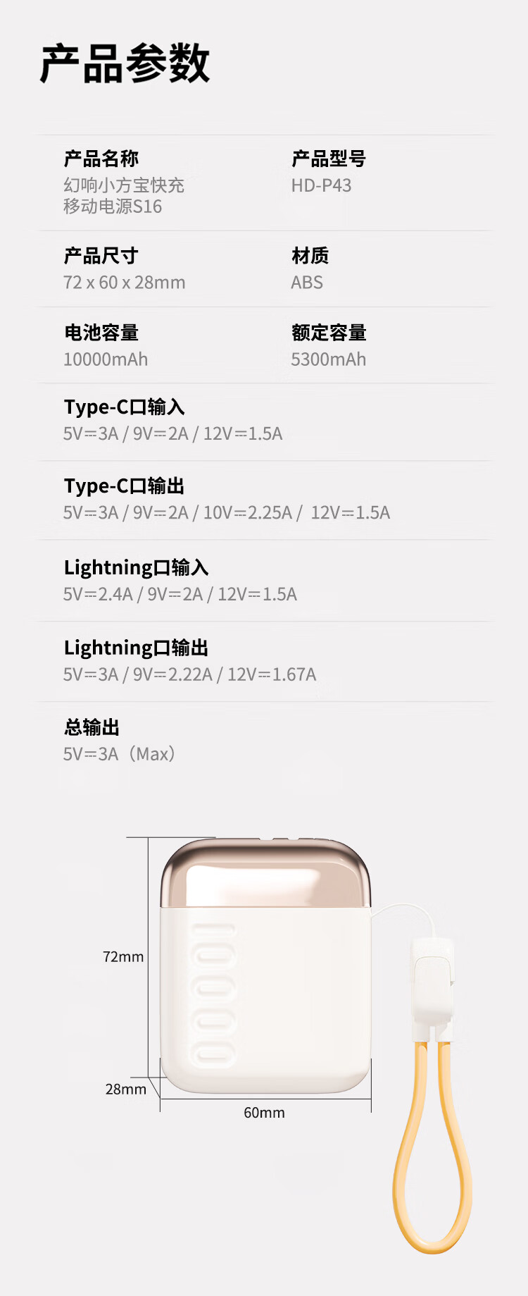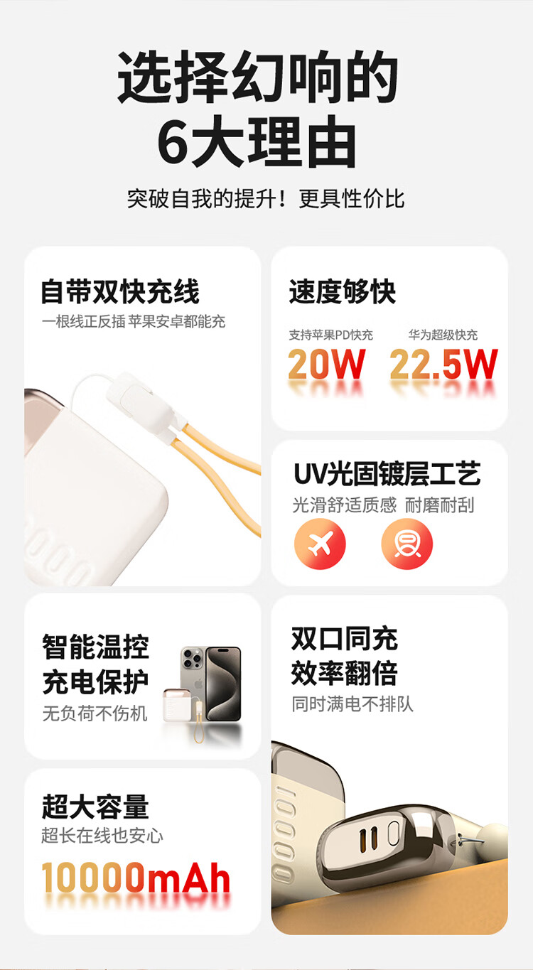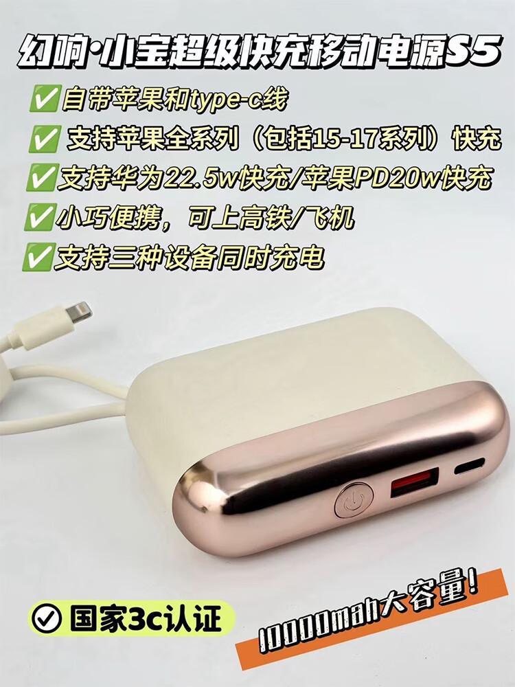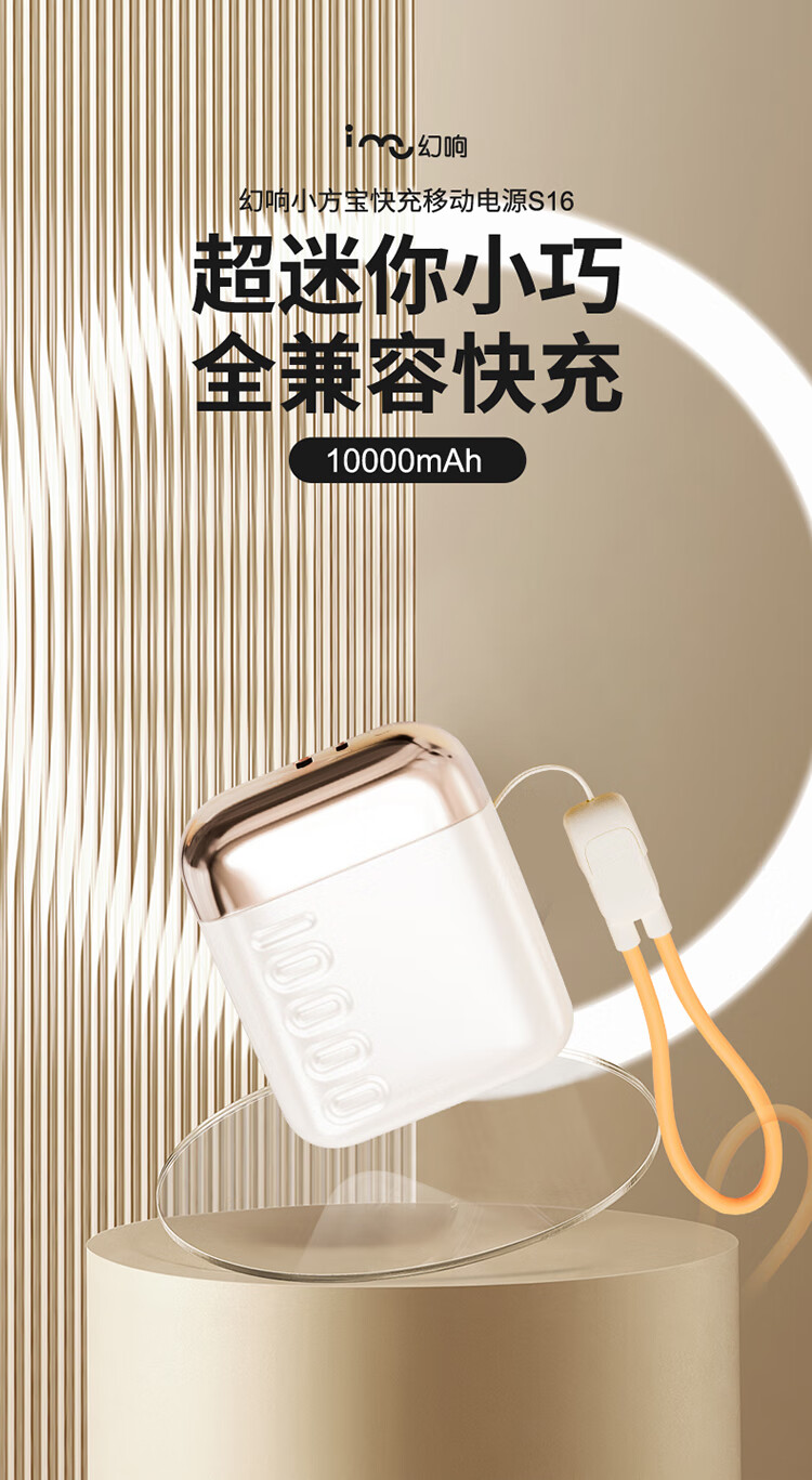 幻响(i-mu)小宝小方宝移动电源S5充电宝10000mAh支持超级快充一万毫安S16适用苹果华为安卓等 小方宝S16(新品)1万毫安 超级快充
