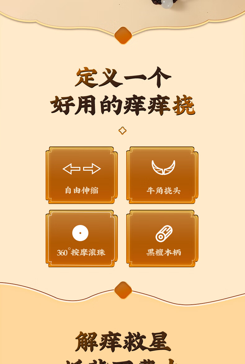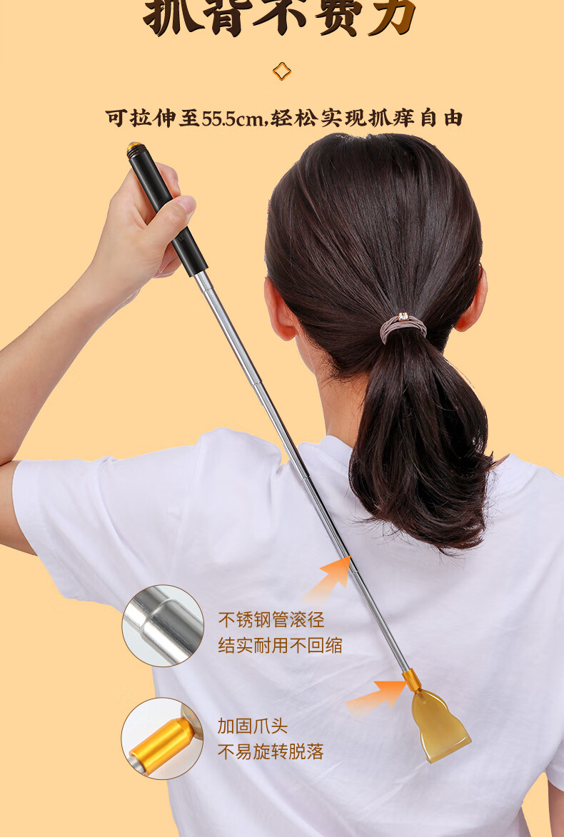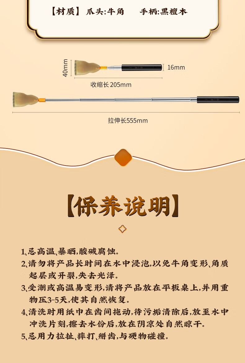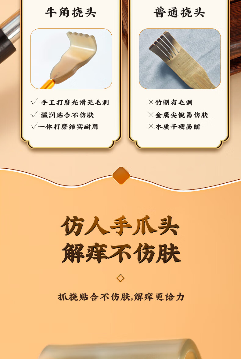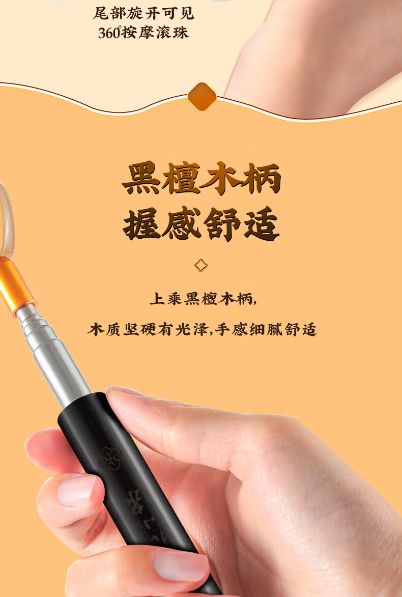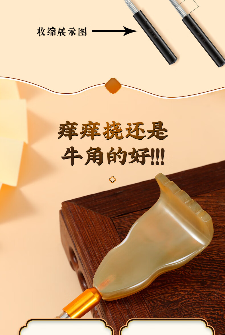 张小泉黑檀木牛角不求人可伸缩痒痒挠按摩挠痒抓背老头乐H50500100