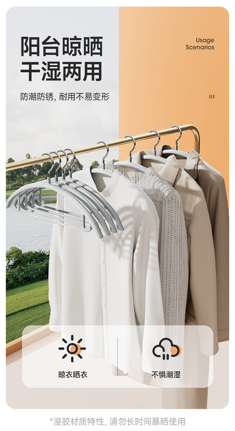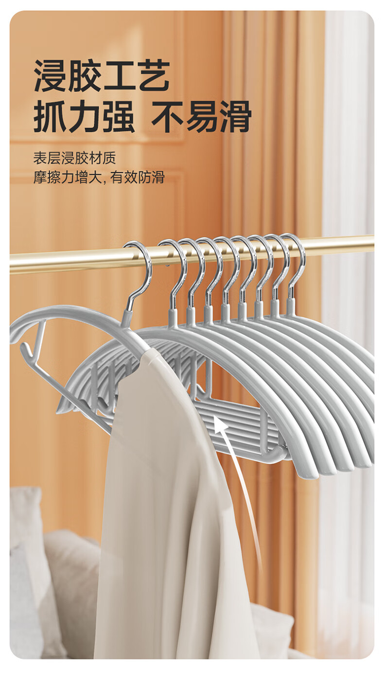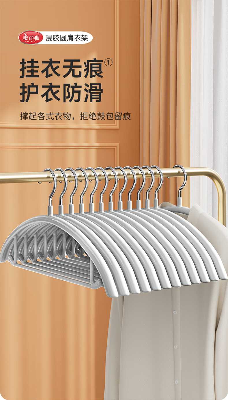 美丽雅衣架 无痕防滑晾衣架子加粗成人挂衣架浸胶简易阳台卧室内外衣撑