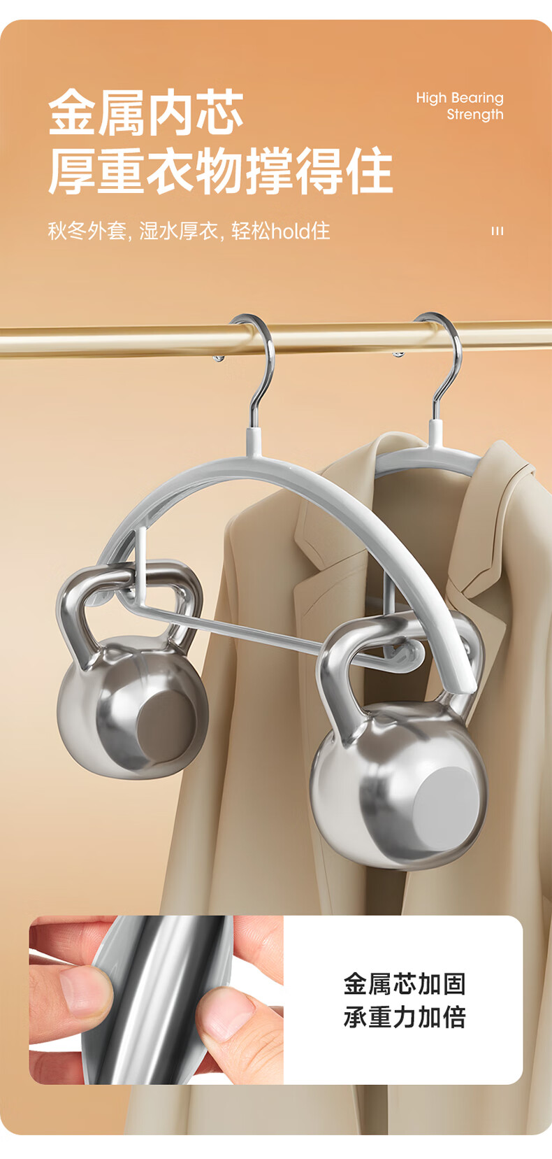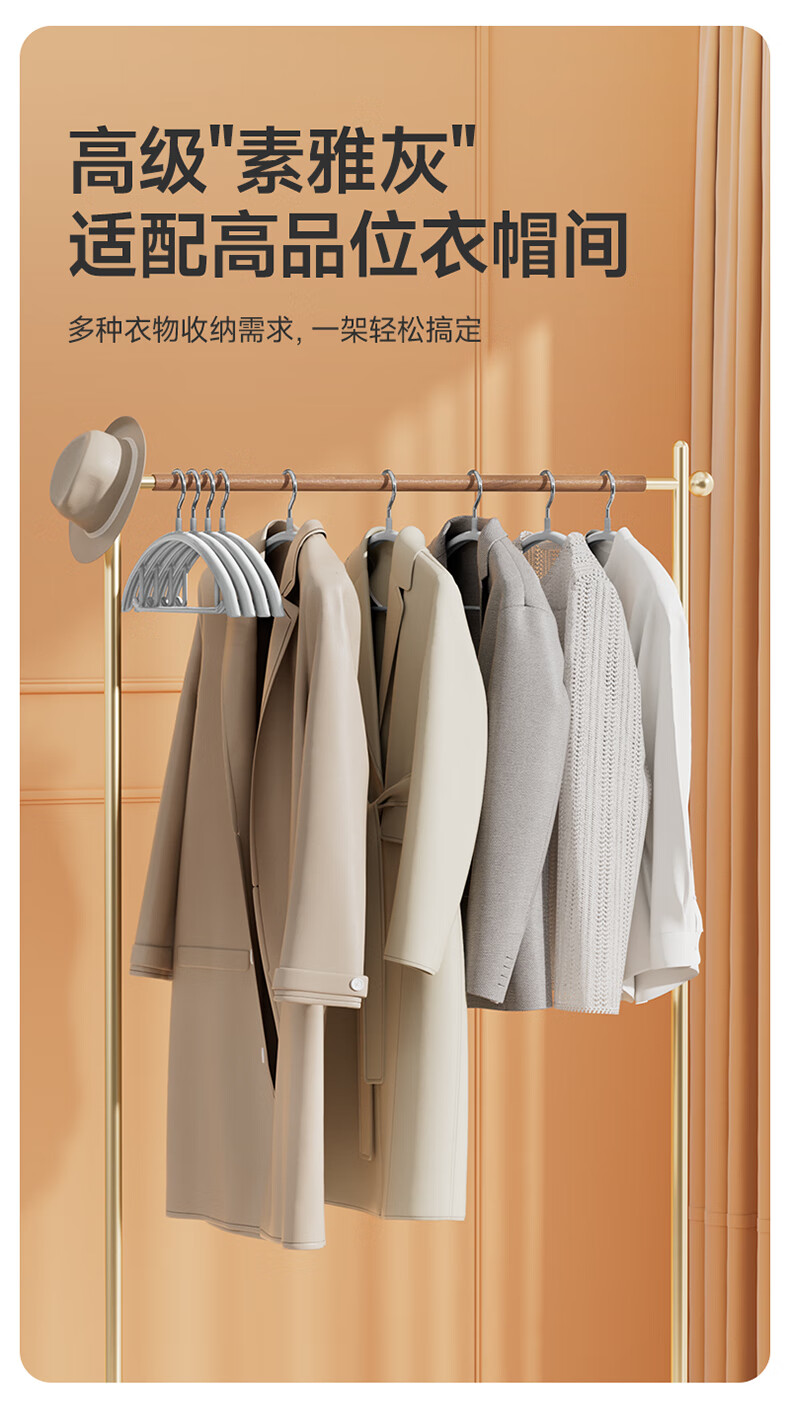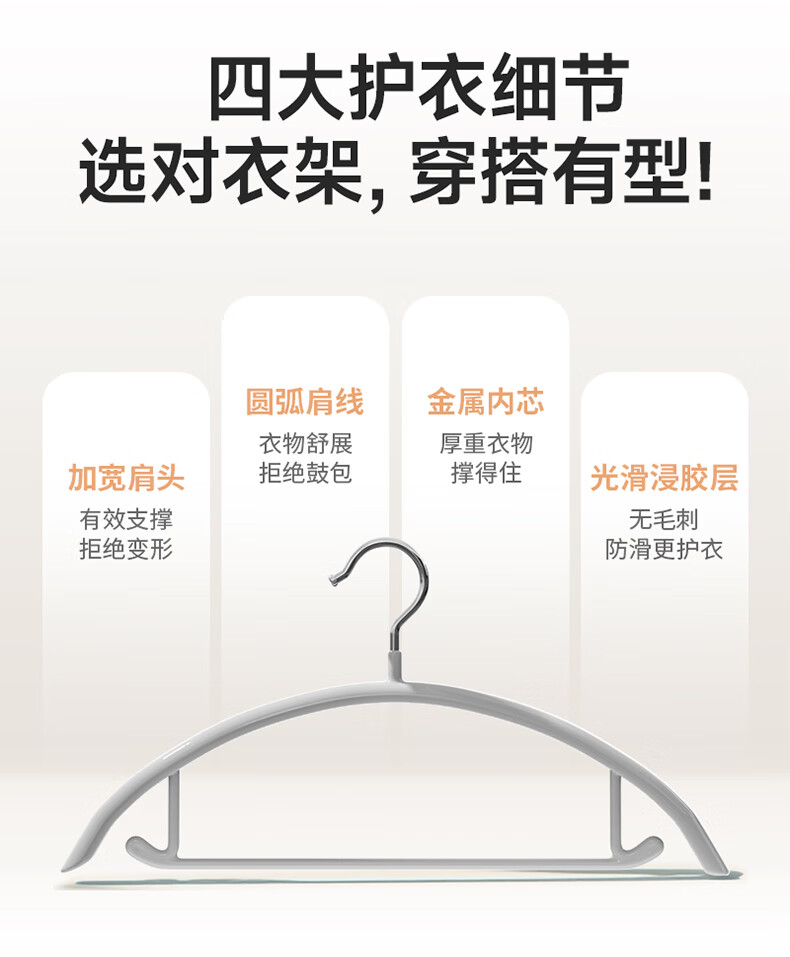 美丽雅衣架 无痕防滑晾衣架子加粗成人挂衣架浸胶简易阳台卧室内外衣撑