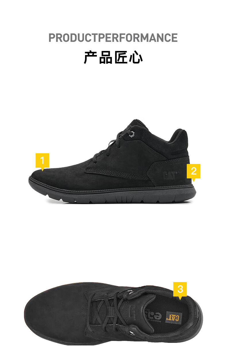 CAT卡特25秋冬新款男士舒适真皮时尚工装靴休闲低靴 黑色 41