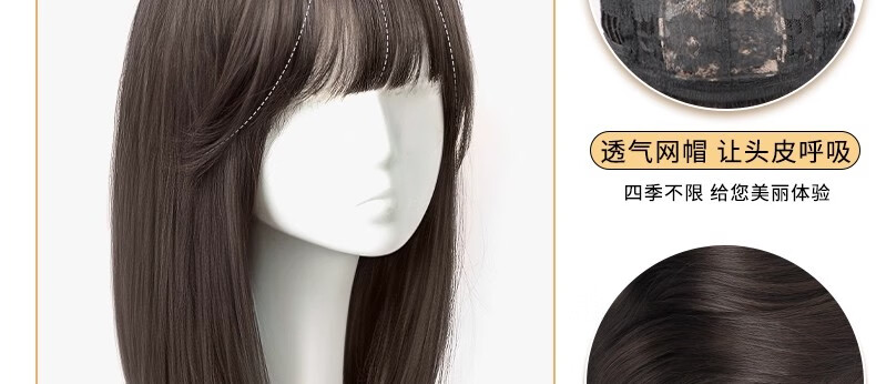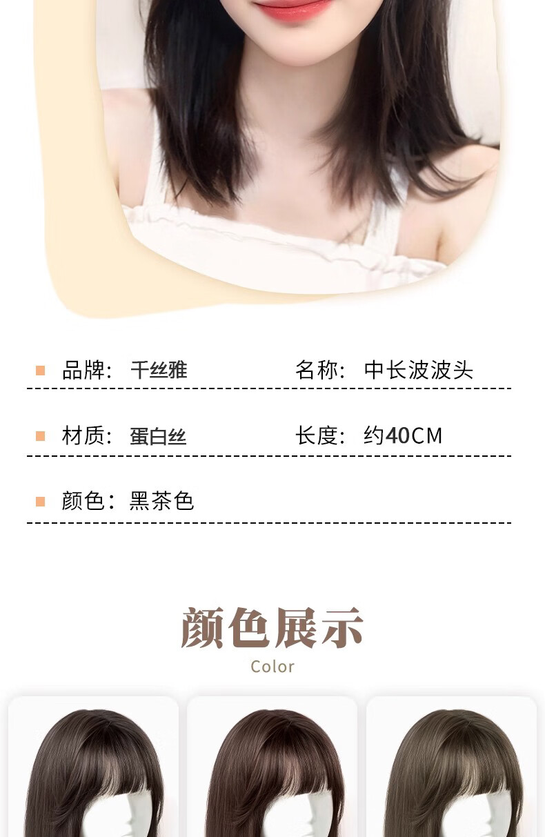千丝雅假发全头套女轻薄透气中长款自然一体式锁骨仿真整顶假发全头套女 【活力清纯不做作】 黑茶 中发 40cm
