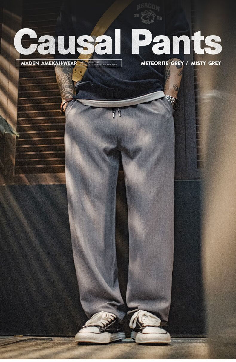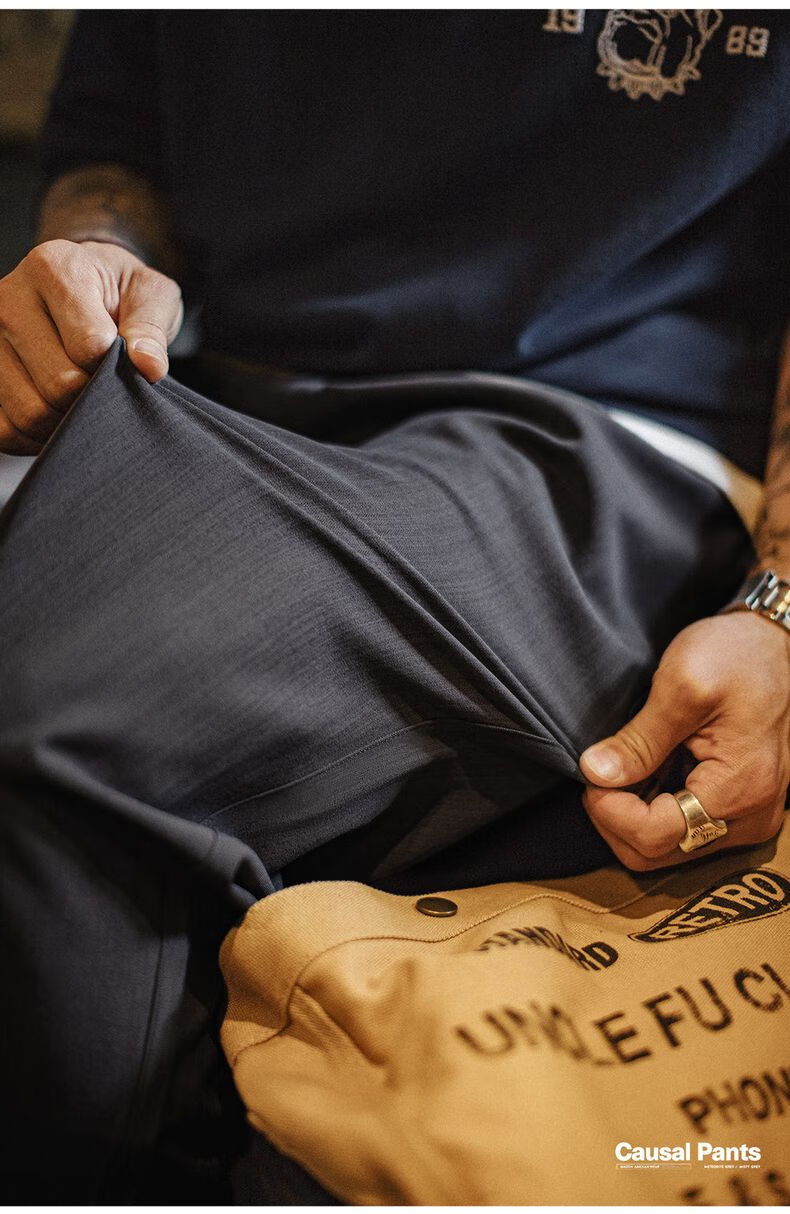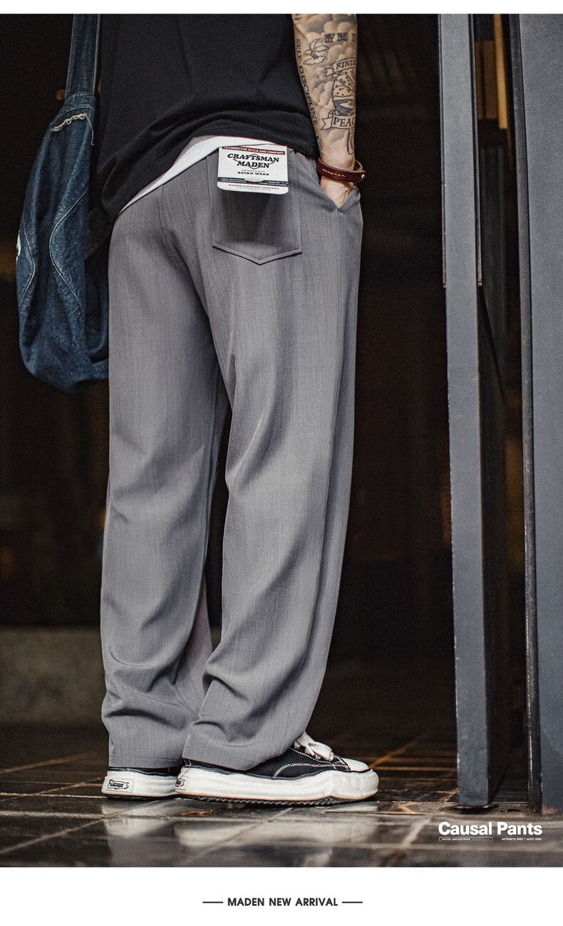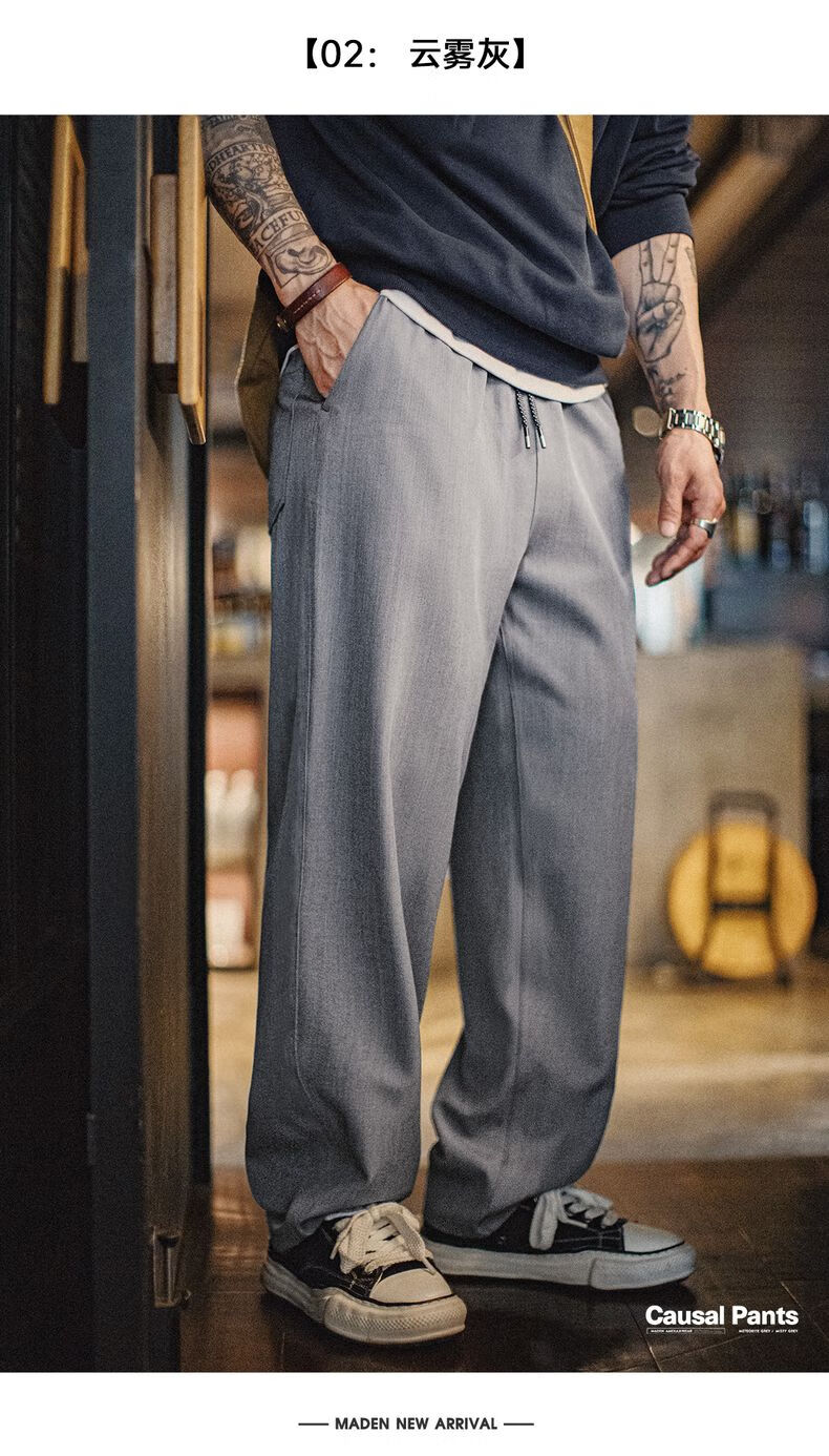 马登工装裤秋季男复古花纱薄款休闲裤垂感商务通勤西裤省心直筒长裤子 云雾灰 【灰色/男裤轻奢高级感】 2XL